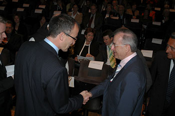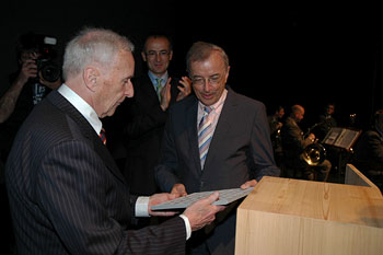 Landesmuseumsdirektor Tobias G. Natter begrüßt Landeshauptmann Herbert Sausgruber