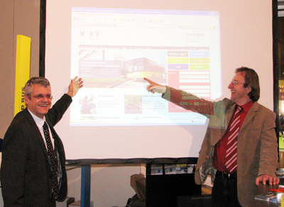 Inhaltlich passend zum diesjährigen Messeschwerpunkt – Energiezukunft Vorarlberg – präsentierten VVV-Geschäftsführer Österle (l.) und Vorarlberg-MOBIL-Projektleiter Scheuermaier die Neuerungen auf der Internetseite www.vmobil.at