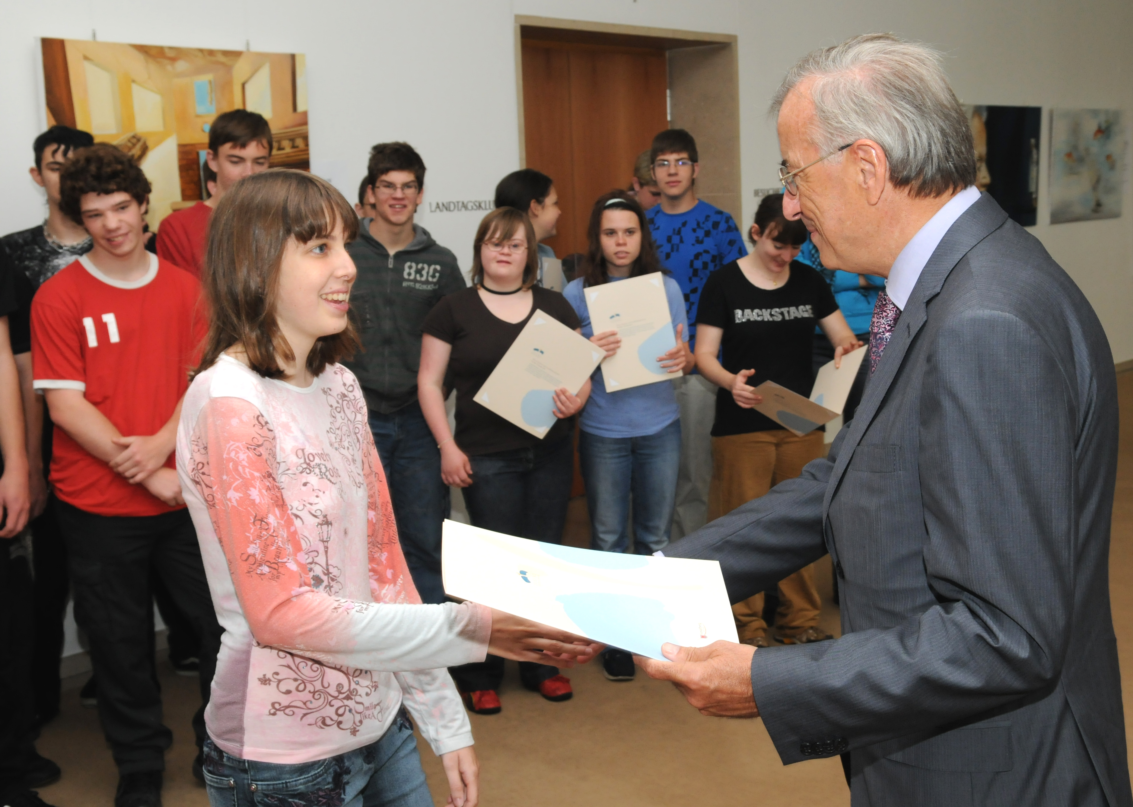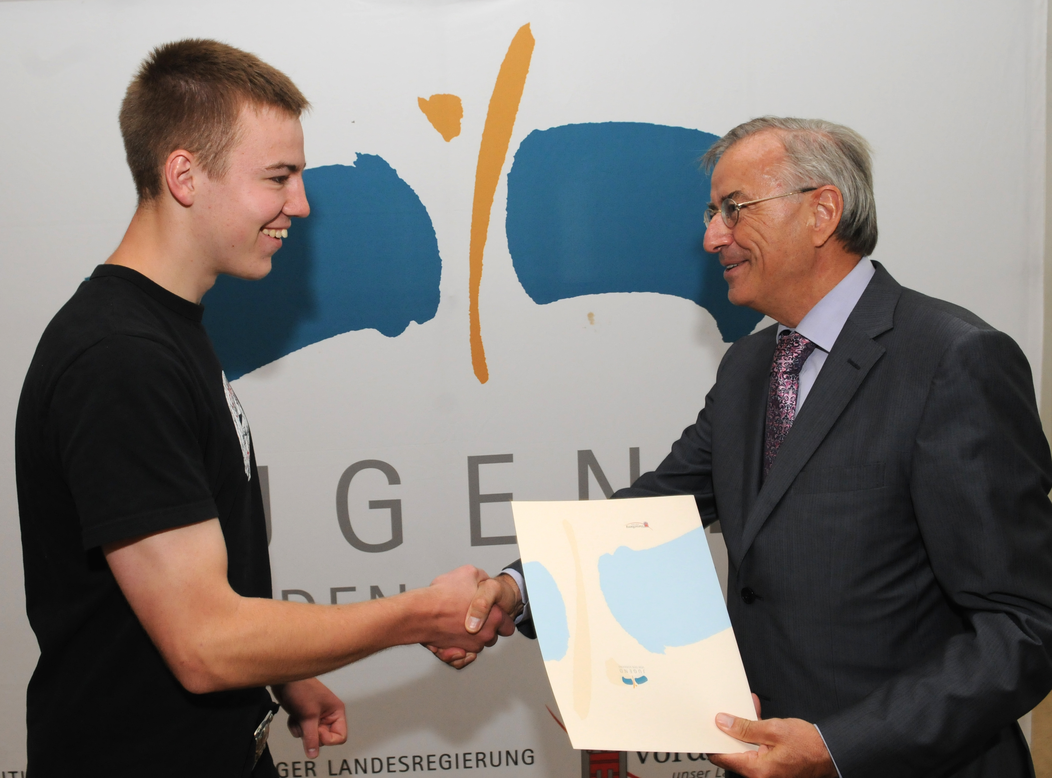 Im Landhaus in Bregenz überreichte LH Sausgruber Urkunden an die jungen Projektteilnehmer