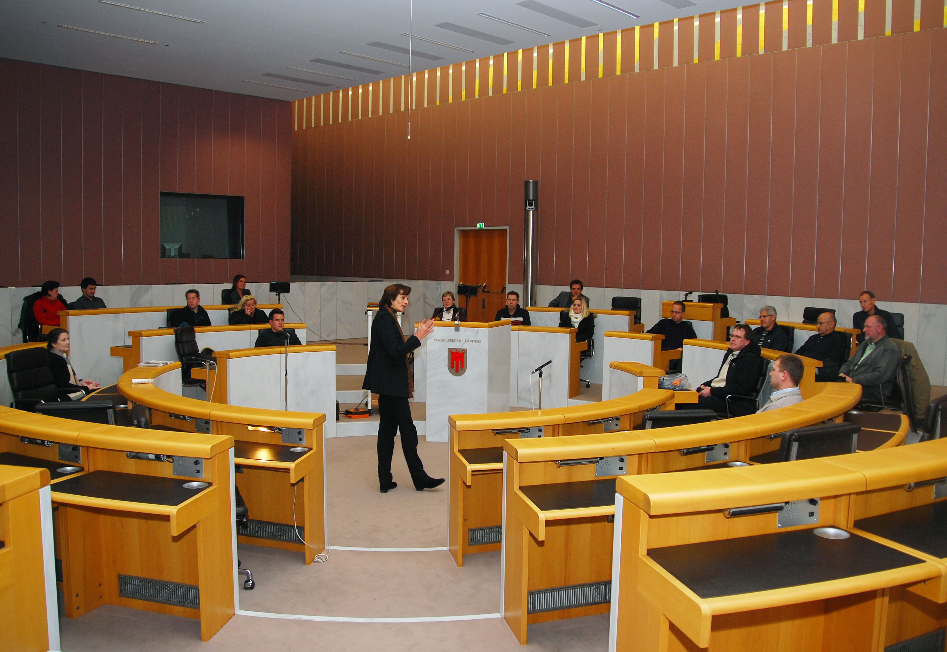 Bregenz (VLK) – Die Landesberufsschule Bregenz 2 ist derzeit Ausbildungsstätte für Jugendliche aus Schweden, Dänemark, dem Baskenland und Deutschland. Sie nehmen im Rahmen des EU-Projektes "Leonardo da Vinci" an Paintwork@Europe teil, um internationale Aspekte in der Berufsausbildung kennenzulernen. Im Landhaus begrüßte Landtagspräsidentin Bernadette Mennel kürzlich eine Gruppe von Pädagoginnen und Pädagogen aus den Partnerländern der LBS Bregenz 2.