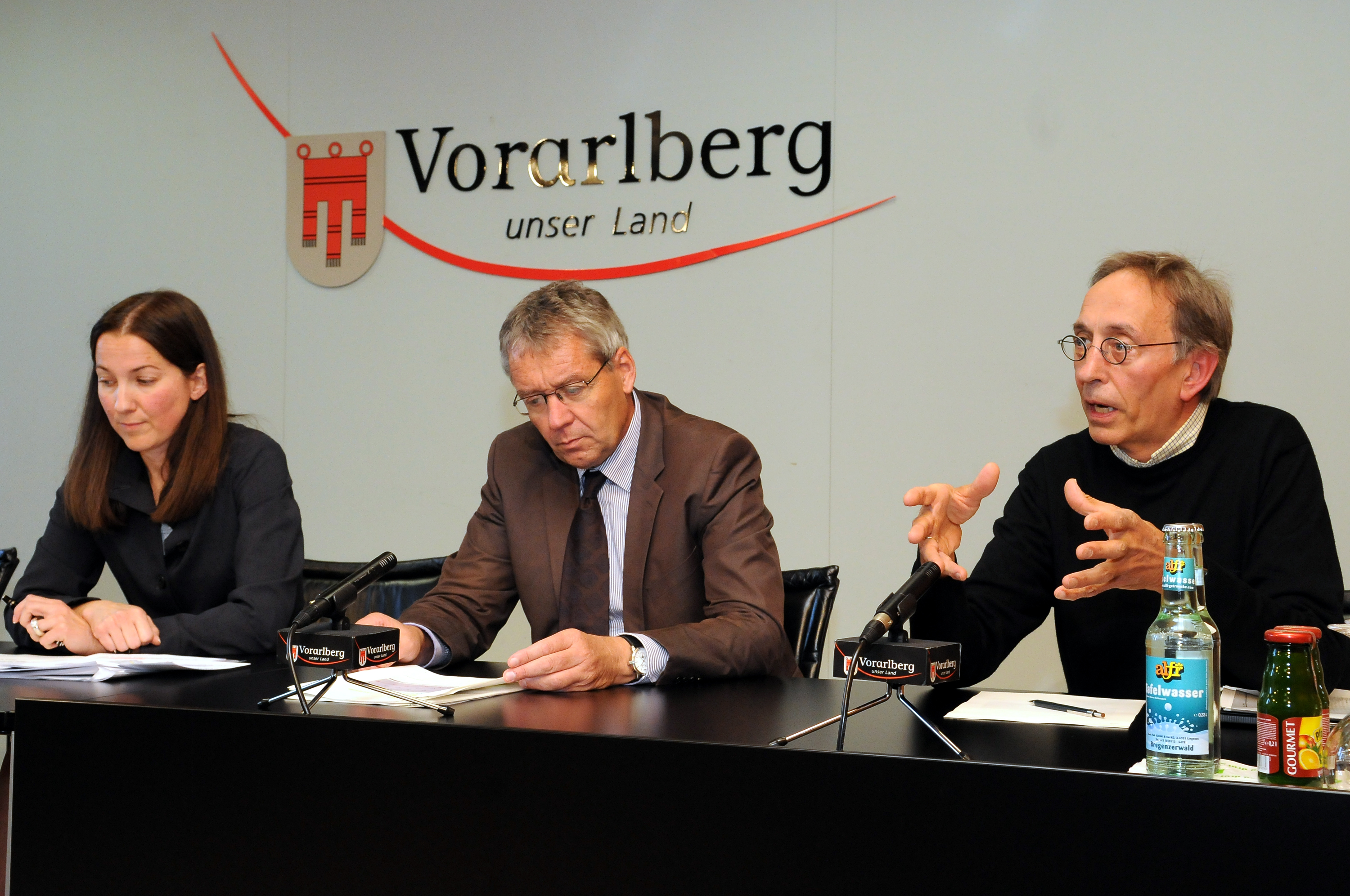 ÖBB-Personenverkehrschefin Birgit Wagner, Landesrat Karlheinz Rüdisser und Verkehrsexperte Franz Schwerzler im Pressegespräch