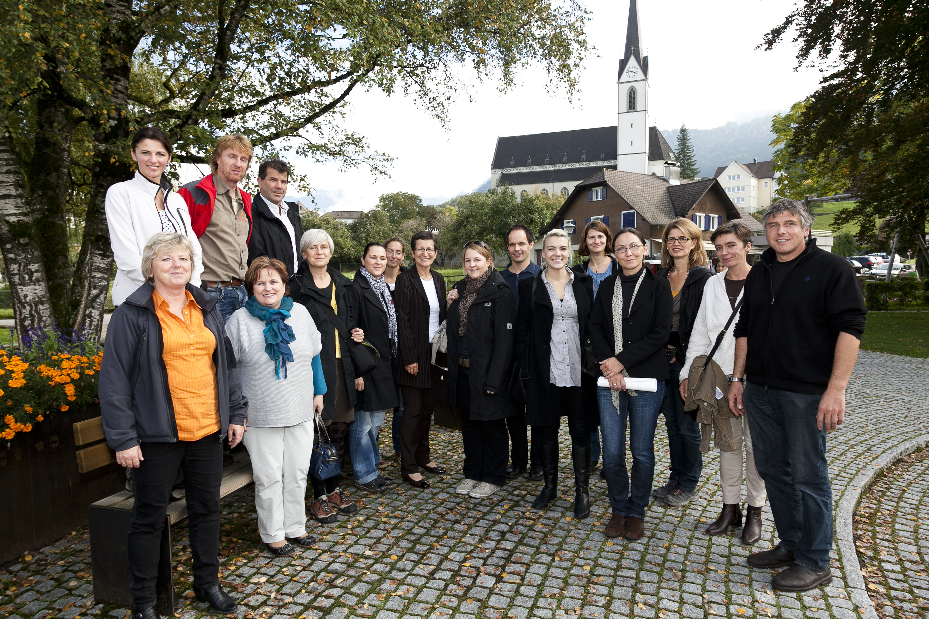 Rankweil: Im Blickpunkt dieser Exkursion standen das urbane Spielen mit hohem Gestaltungsniveau am Marktplatz und die Weiterentwicklung des zentral gelegenen St.-Peter-Bühels zu einem beliebten, naturnahen Freiraum mit sehr guter Spiel- und Erlebnisqualität.