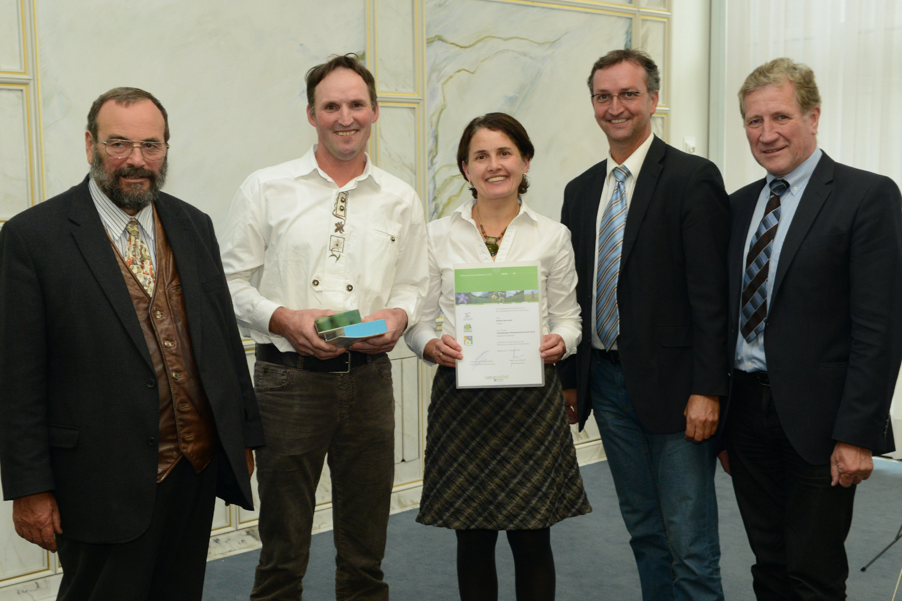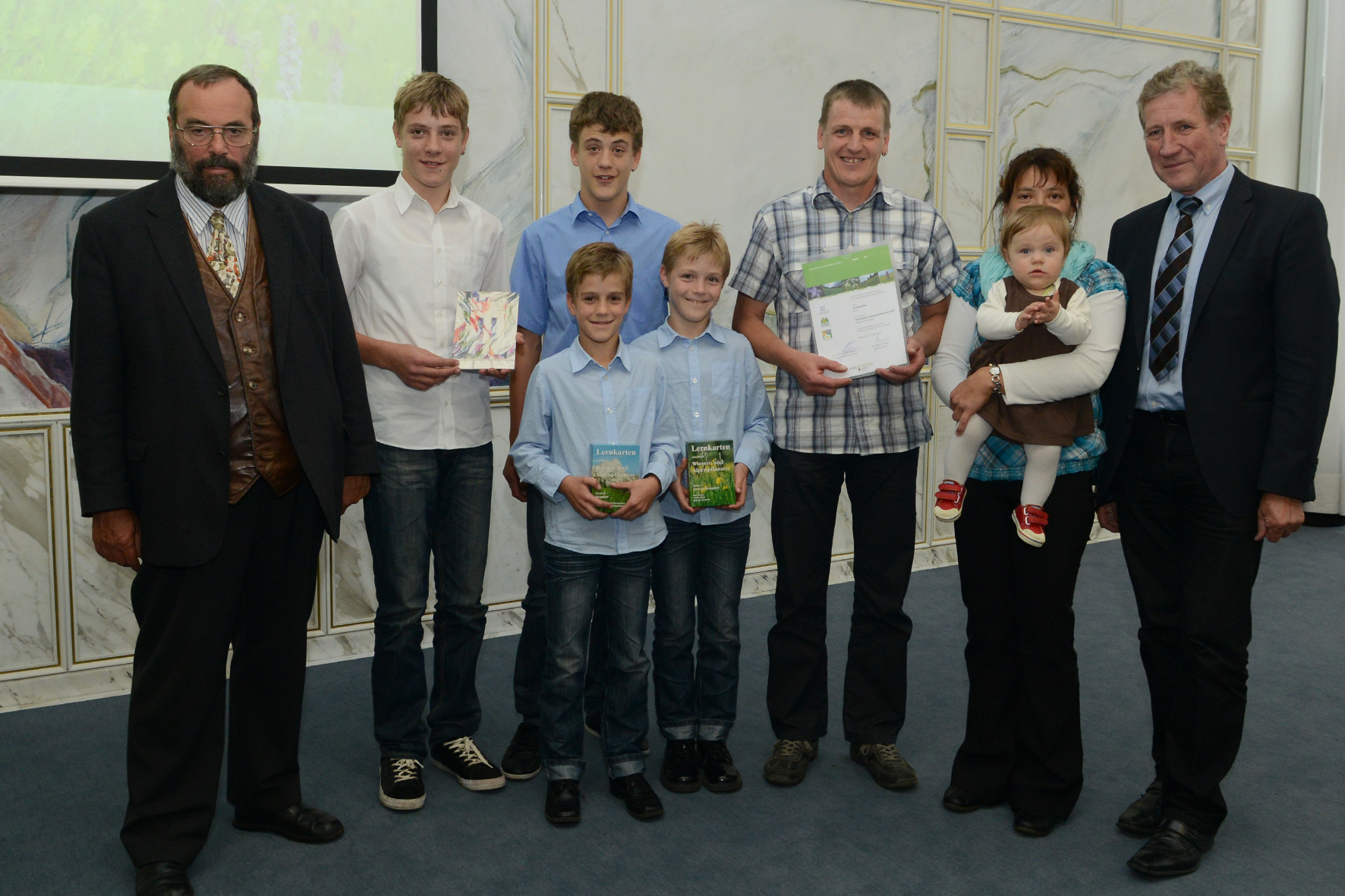 Insgesamt 19 bäuerliche Betriebe wurden im Rahmen der Vorarlberger Wiesenmeisterschaft 2013 ausgezeichnet. Agrarlandesrat Erich Schwärzler und Naturschutzrats-Vorsitzender Professor Georg Grabherr gratulierten am Montag im Landhaus.