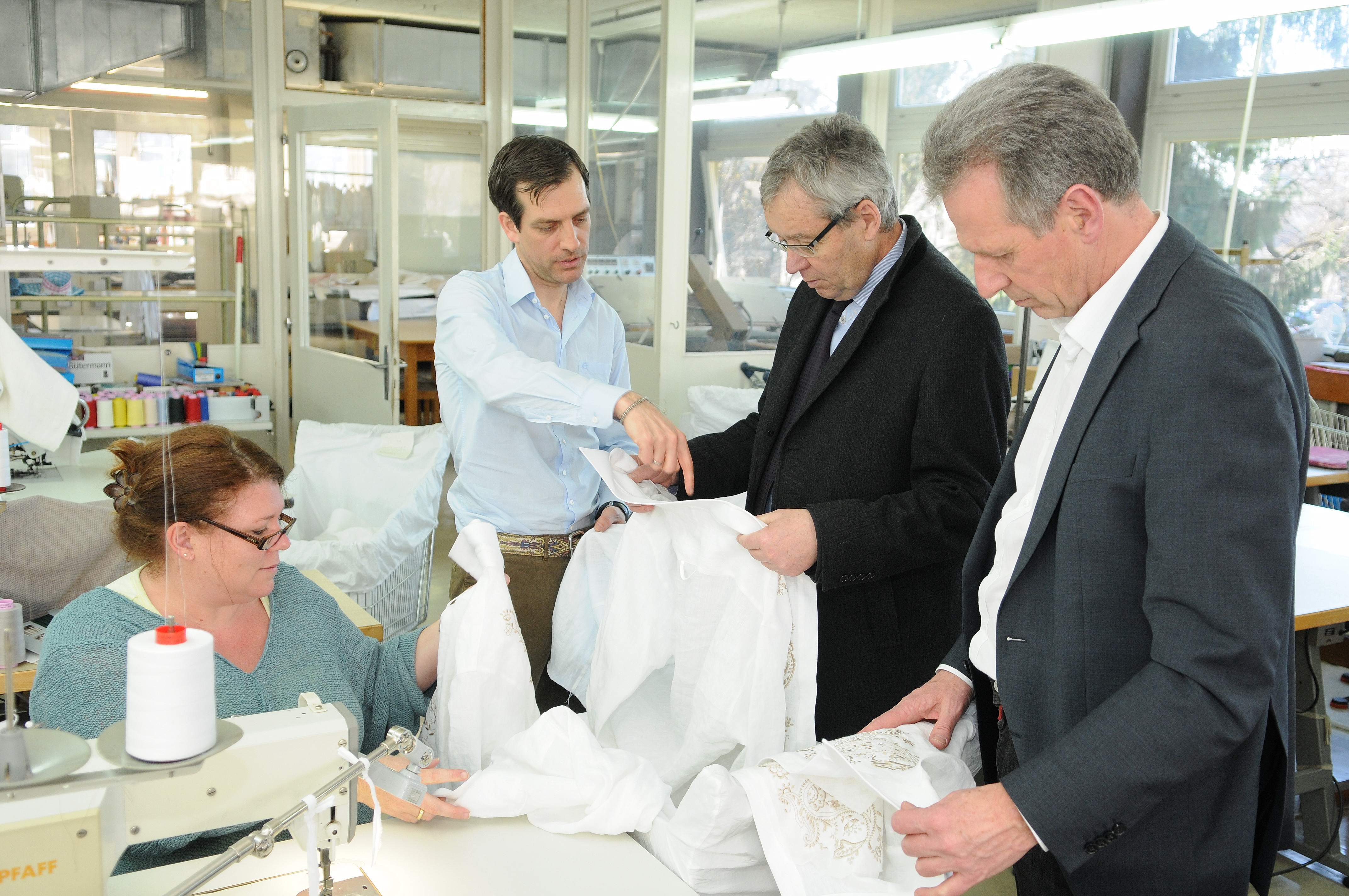 Die erste Station des Besichtigungsprogramms führte den Landesstatthalter nach Hohenems: Unter dem Titel "Tradition und Mode" produziert die Firma Wallmann mit insgesamt 25 Beschäftigten hauptsächlich exklusive Blusen, aber auch Hemden, Schals und Jacken. Dem Standort Hohenems ist man seit der Firmengründung 1957 treu geblieben. Das hohe handwerkliche Niveau bei der Fertigung und die ausgeprägte Liebe zum Detail garantieren einen hohen Qualitätsstandard. Entworfen und produziert wird in Hohenems, "das sorgt für eine hohe Wertschöpfung", sagte Landesstatthalter Rüdisser. Mittlerweile wird in fast die ganze Welt geliefert. www.wallmann-textil.at
