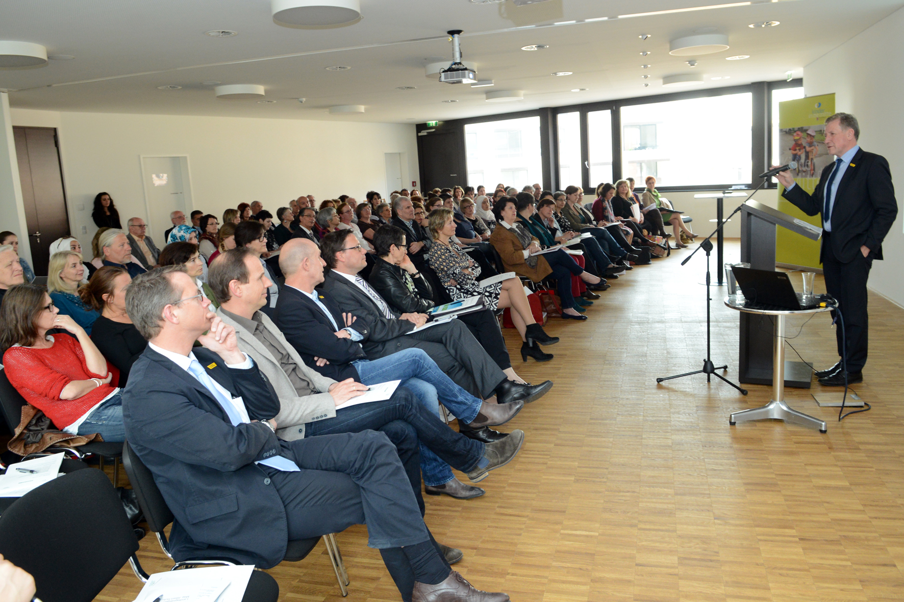 Götzis (VLK) – Die 11. Integrationskonferenz des Landes Vorarlberg beschäftigte sich mit der Rolle und Verantwortung der Eltern im Bildungs- und Erziehungsprozess ihrer Kinder in Zusammenarbeit mit Einrichtungen und Institutionen. Wie können Eltern und Institutionen mehrsprachige Kinder in ihrer Entwicklung und beim Start ihrer Bildungsbiographie bestmöglich unterstützen? Wie kann verantwortungsvolle Elternarbeit die Zukunft der Kinder sichern? Zu diesen und anderen Fragen, zu bereits gesetzten Integrationsmaßnahmen und weiterführenden Handlungsansätzen diskutierten die rund 100 Teilnehmenden bei der 11. Integrationskonferenz am Dienstag, 18. März 2014 in der Volkshochschule Götzis.
