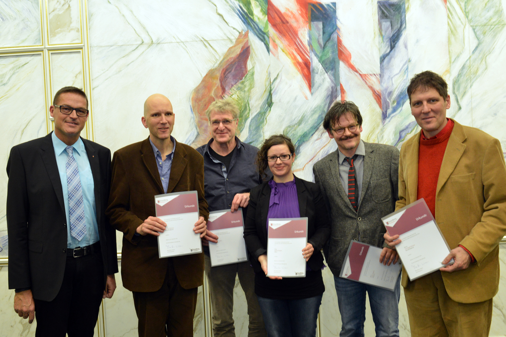 Kulturlandesrat Christian Bernhard überreichte am Dienstag (2. Dezember) im Landhaus die Ehren- und Fördergaben für Kunst 2014. Insgesamt fünf Kunst- und Kulturschaffende wurden ausgezeichnet.