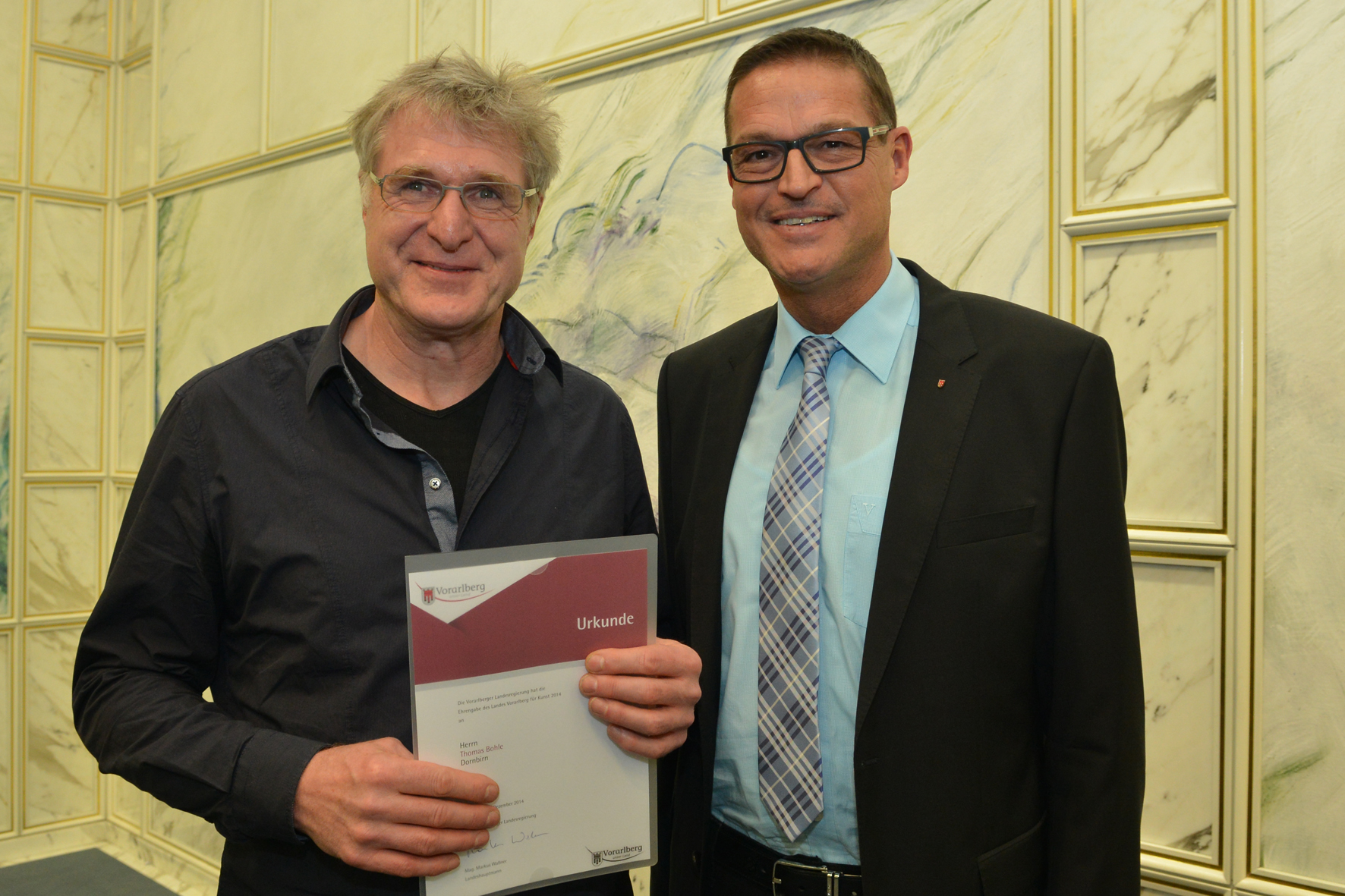 Medieninformation Dienstag, 02.12.2014, 18:30 Landesrat Bernhard überreichte Ehren- und Fördergaben für Kunst 2014 "Ausdruck der Wertschätzung für die vielfältige und qualitativ hochwertige Vorarlberger Kunst- und Kulturszene"