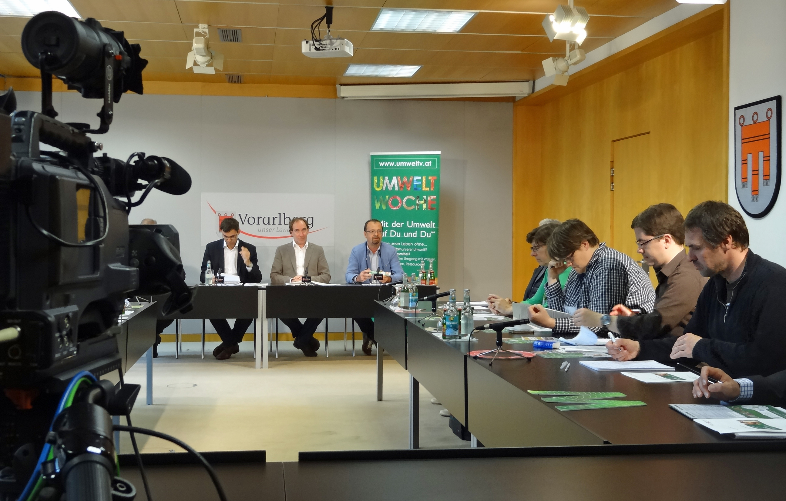 Landeshauptmann Markus Wallner, Umweltlandesrat Johannes Rauch und Umweltverbandsobmann Rainer Siegele stellten, das umfangreiche Informations- und Veranstaltungsprogramm vor