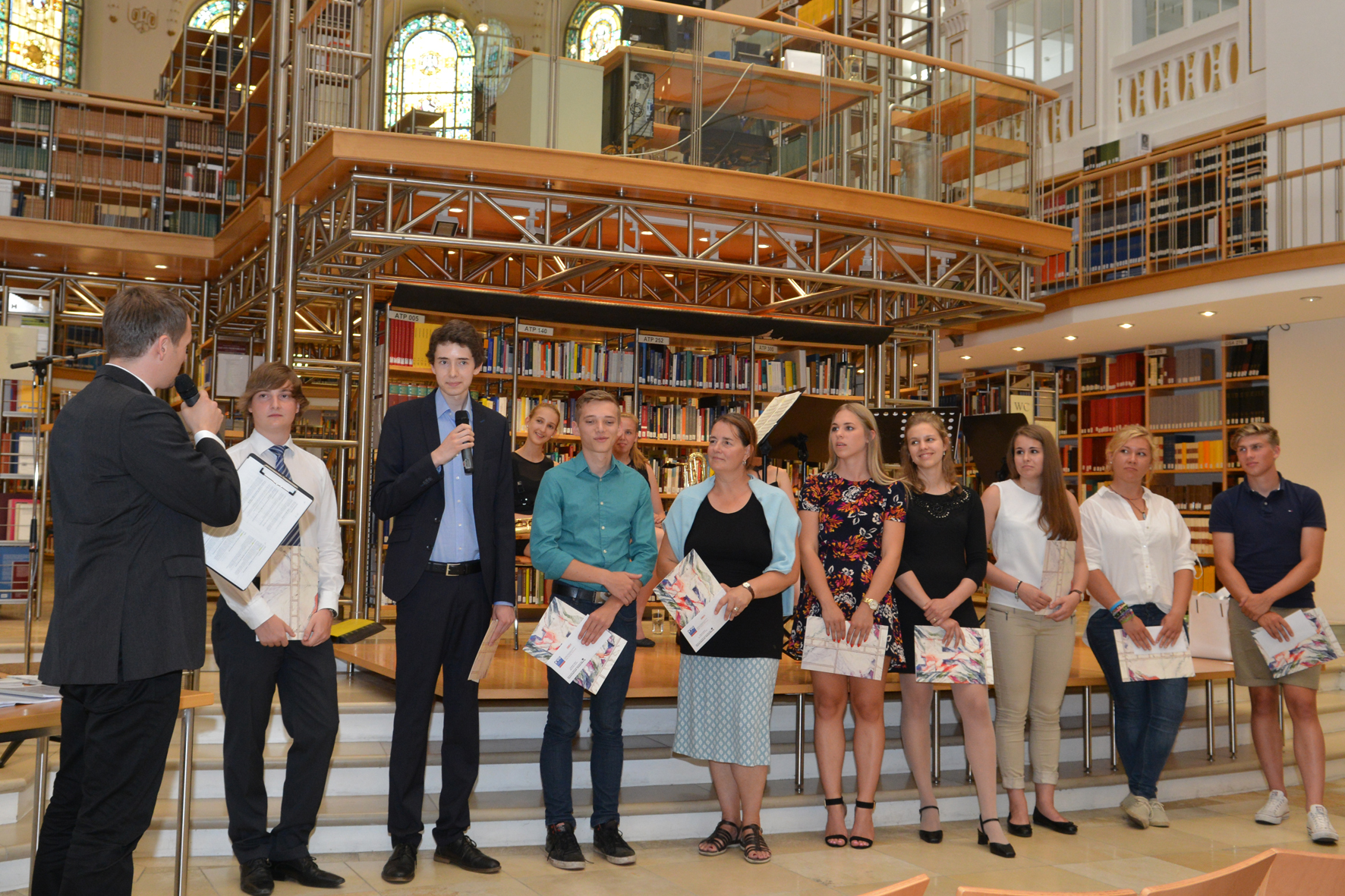 Bregenz (VLK) – Erstmals wurden am Dienstag, 7. Juli 2015, neun Maturantinnen und Maturanten für ihre "Vorwissenschaftliche Arbeit" ausgezeichnet. Bei der Feier im Kuppelsaal der Vorarlberger Landesbibliothek in Bregenz lobte Schullandesrätin Bernadette Mennel die hohe Qualität der Arbeiten: "Ich gratuliere den Preisträgerinnen und Preisträgern sehr herzlich zu dieser herausragenden Leistung und wünsche ihnen auf ihrem weiteren Weg viel Erfolg."