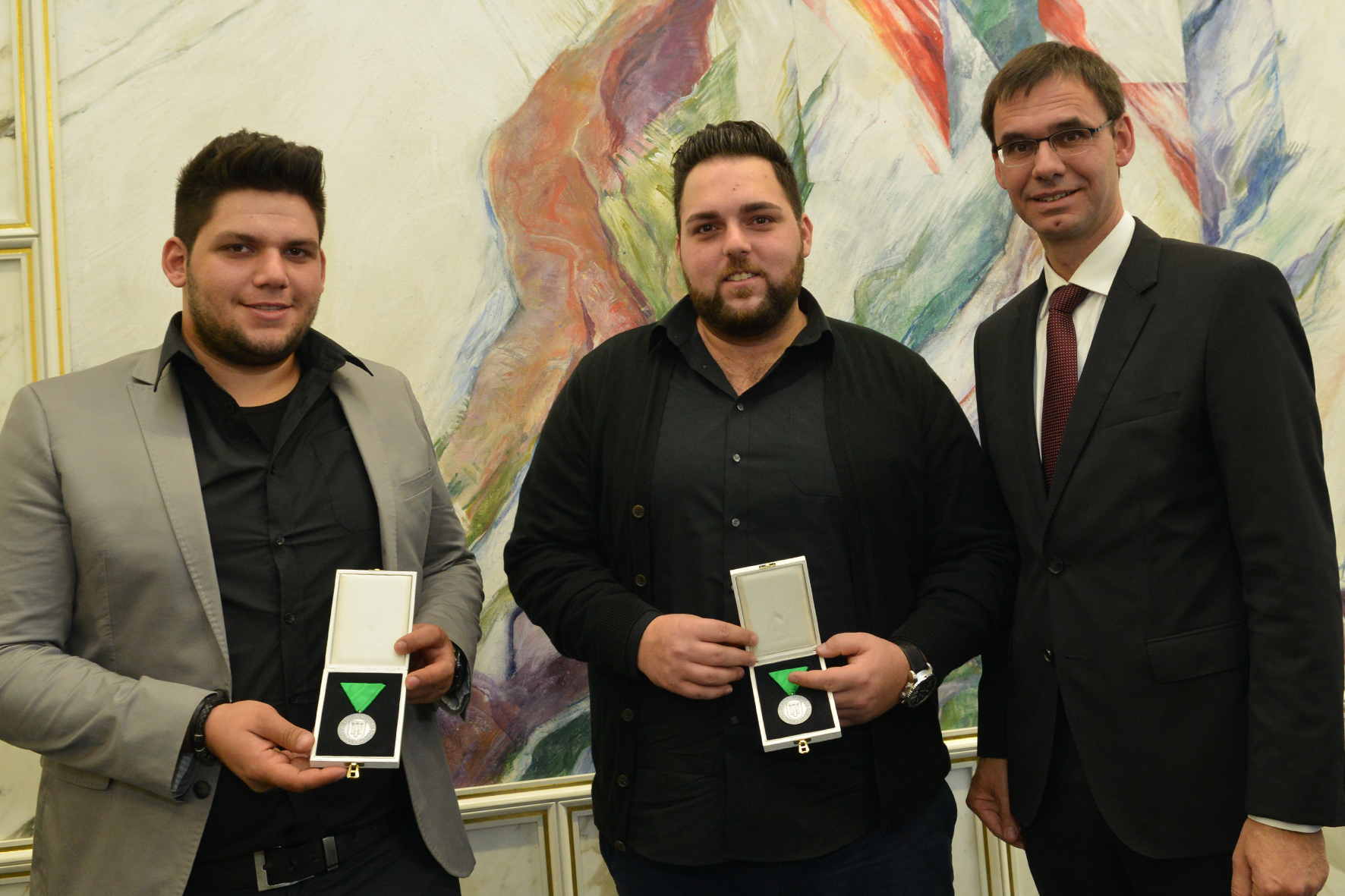 Unter Einsatz ihres eigenen Lebens haben Ikram Muslu und Cem Önder im Juni 2015 in Weiler ein Ehepaar, das im Obergeschoß eines brennenden Hauses gefangen war, mit vereinten Kräften gerettet. Auf sich allein gestellt hätten sich die beiden Eheleute, die auch noch sehr schlecht zu Fuß waren, vermutlich nicht aus dem Gebäude befreien können. "Für den Mut und die Entschlossenheit, die Sie an den Tag gelegt haben, bedanke ich mich bei Ihnen beiden im Namen des Landes ganz herzlich", sagte der Landeshauptmann bei der Überreichung der Rettungsmedaillen.