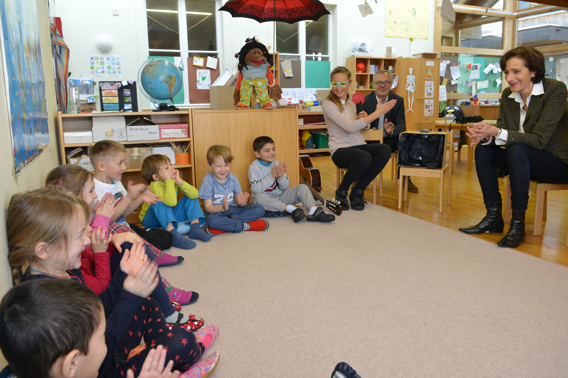 Integration von Flüchtlingskindern: Landesrätin Mennel zu Besuch im Kindergarten Bezau