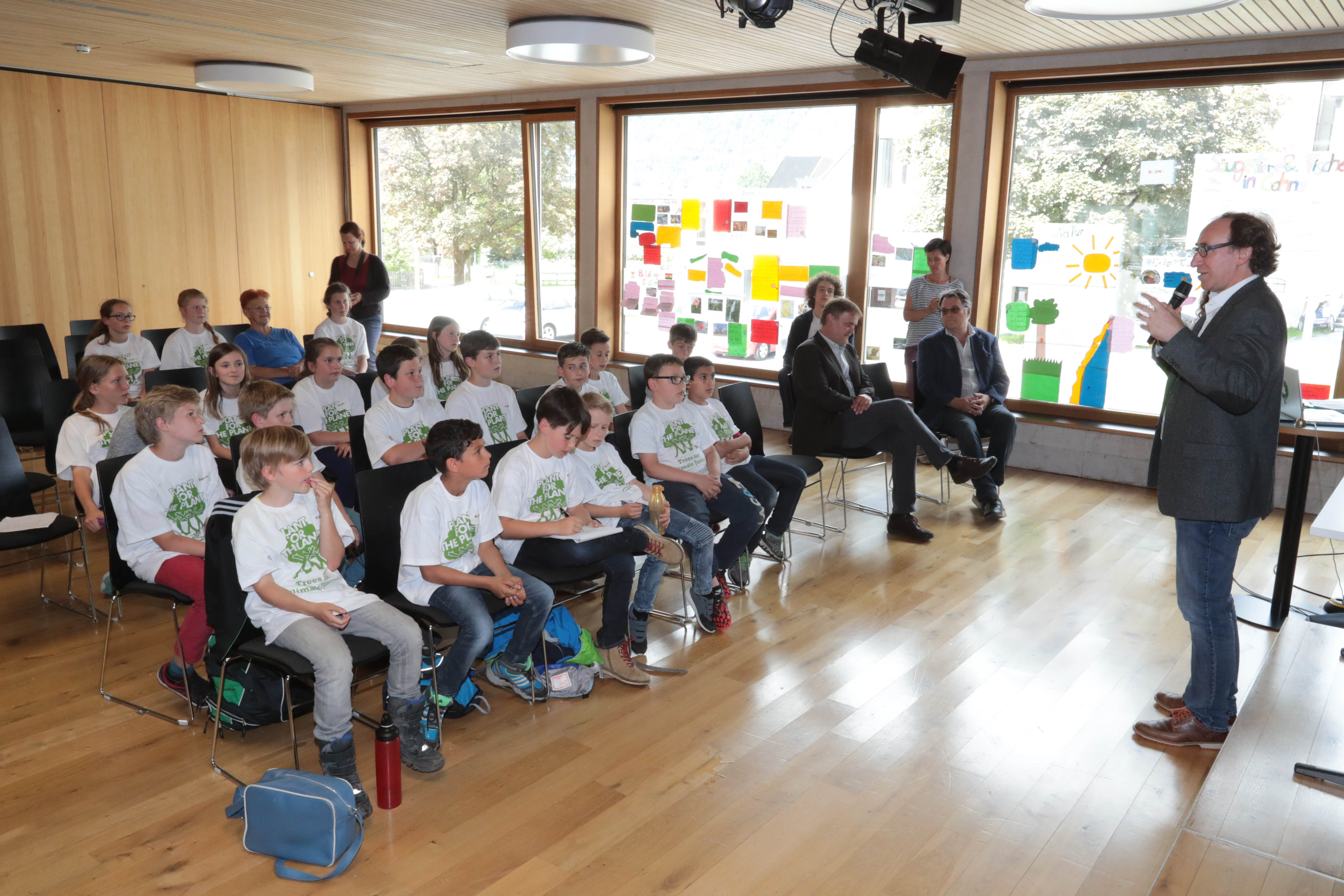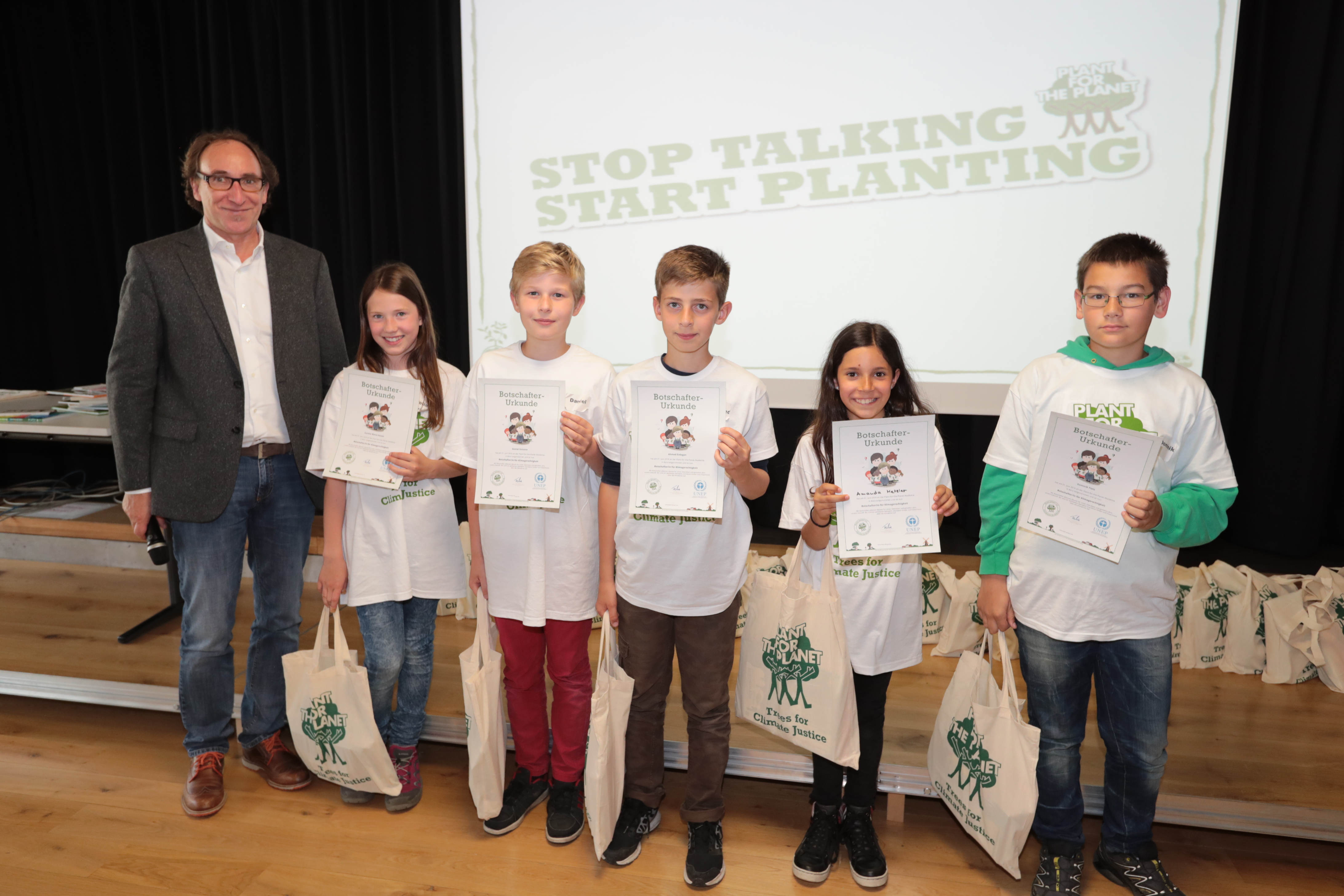 Bürs (VLK) – 50 Kinder und Jugendliche haben heute (Mittwoch, 1. Juni) an der diesjährigen plant-for-the-Planet Akademie an der Mittelschule Bürs teilgenommen. Kinder und Jugendliche pflanzen im rahmen einer Schülerinnen- und Schülerinitiative Bäume auf der ganzen Welt, um auf die Klimaproblematik hinzuweisen. Umweltlandesrat Johannes Rauch überreichte die Urkunden an die neuen Botschafterinnen und Botschafter für Klimagerechtigkeit.