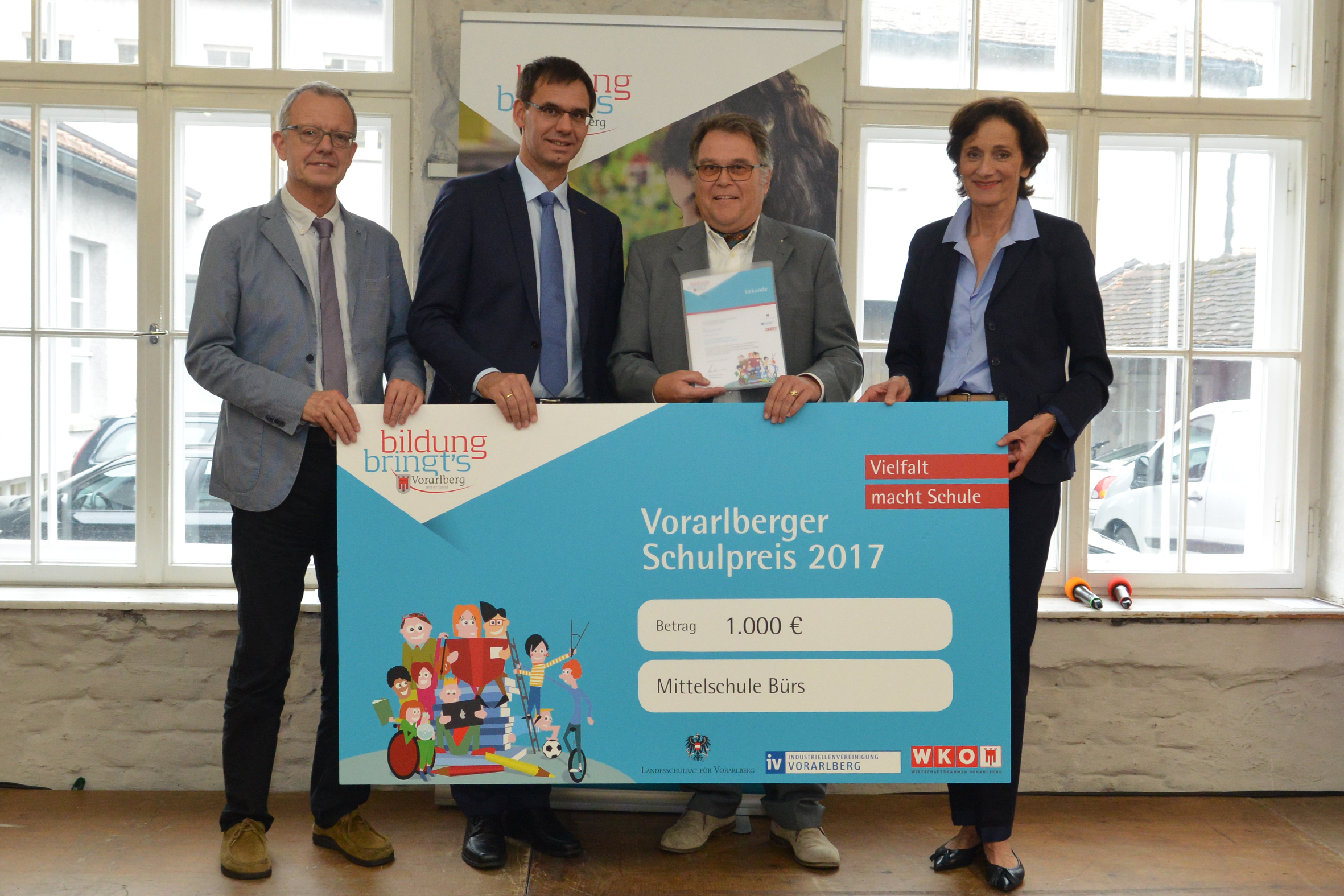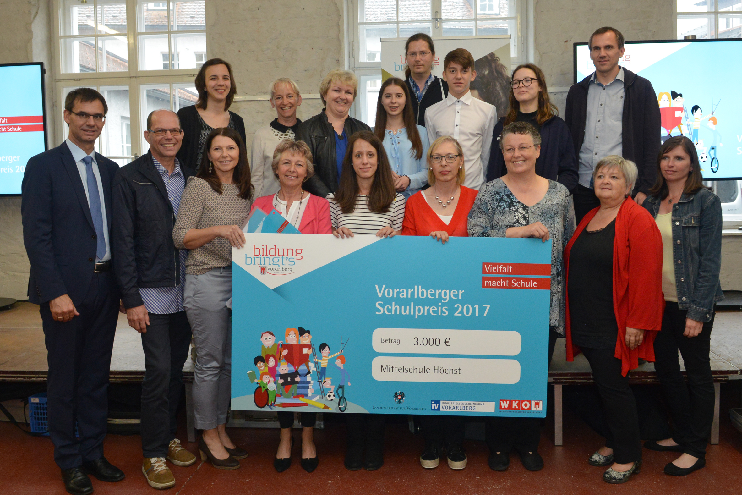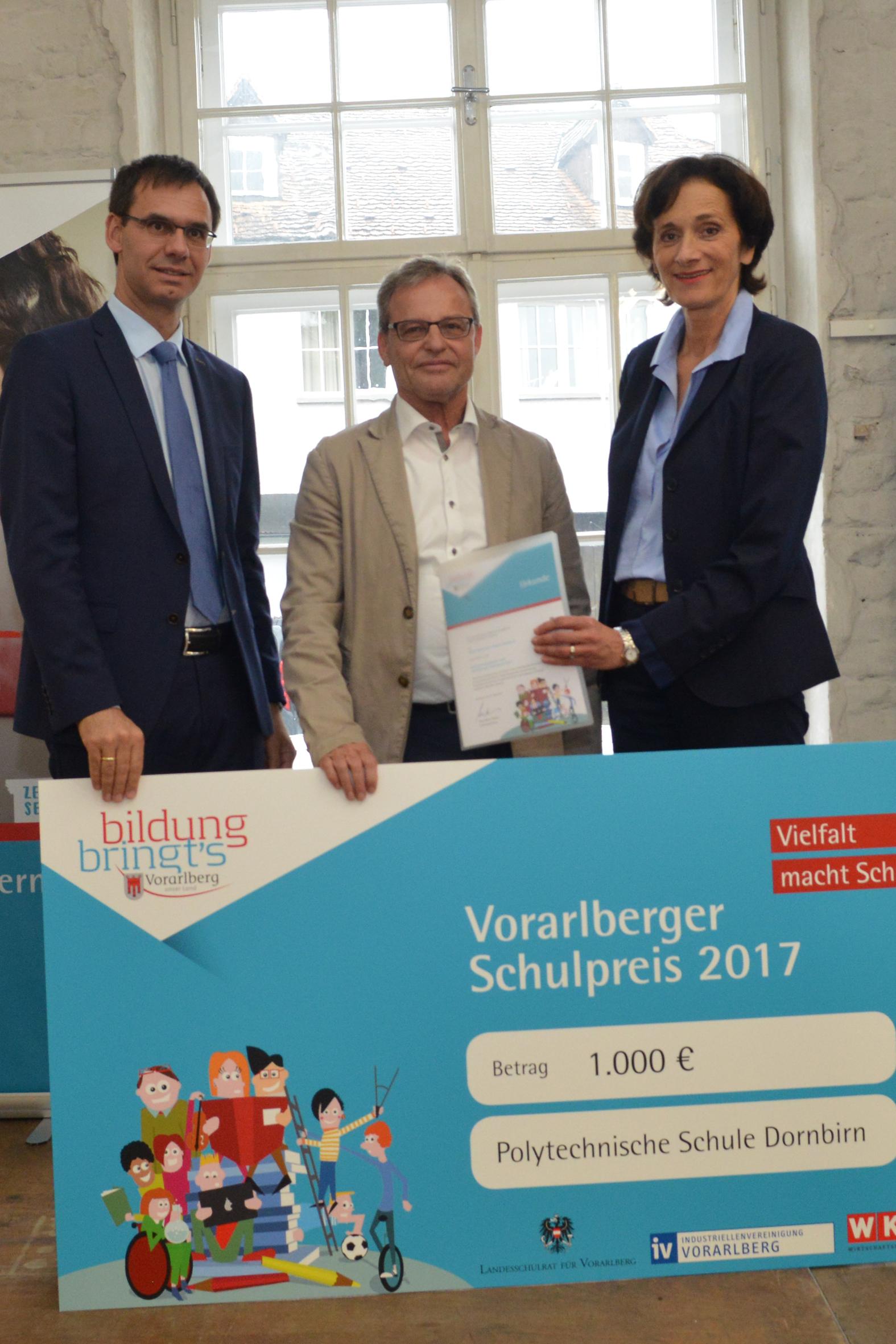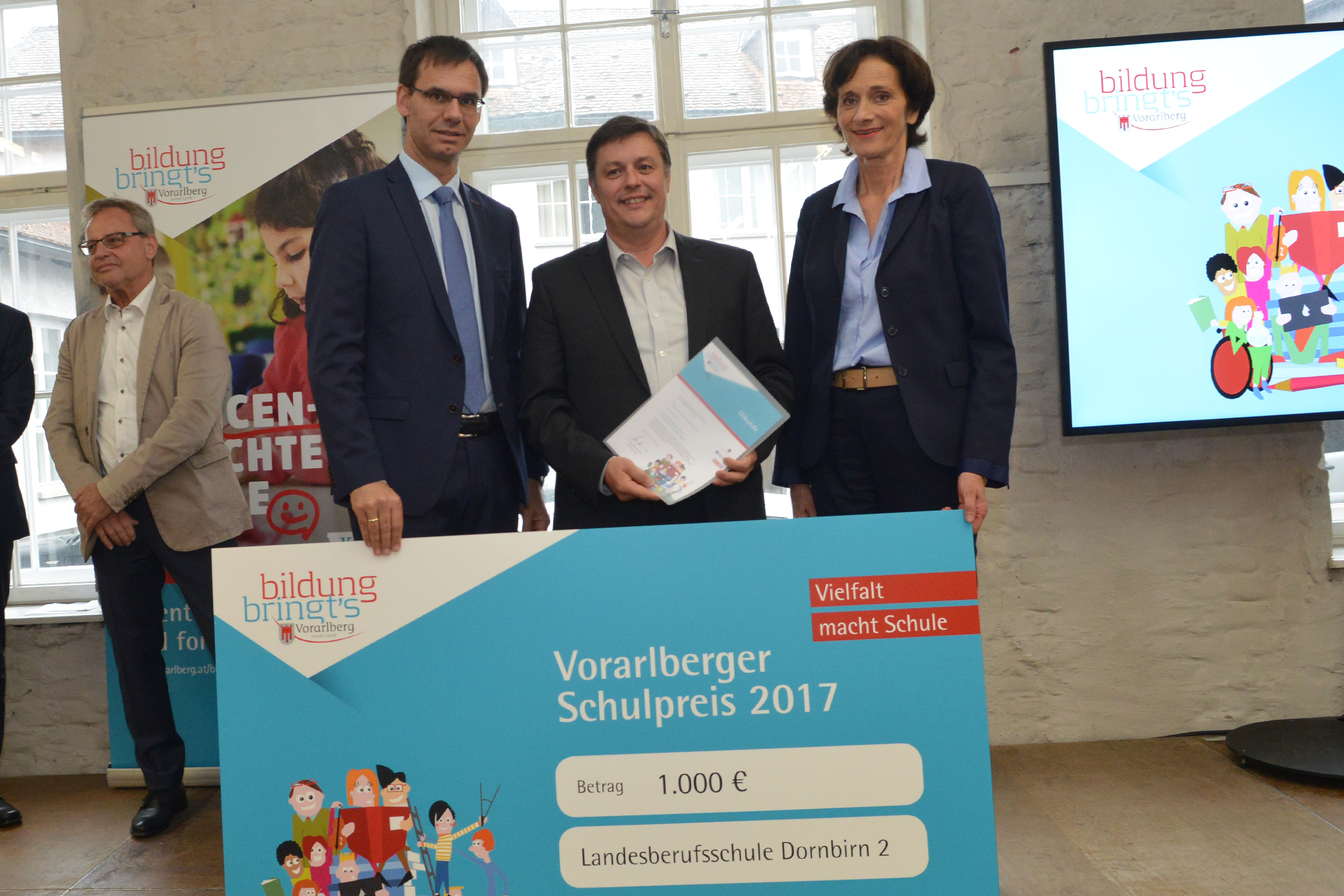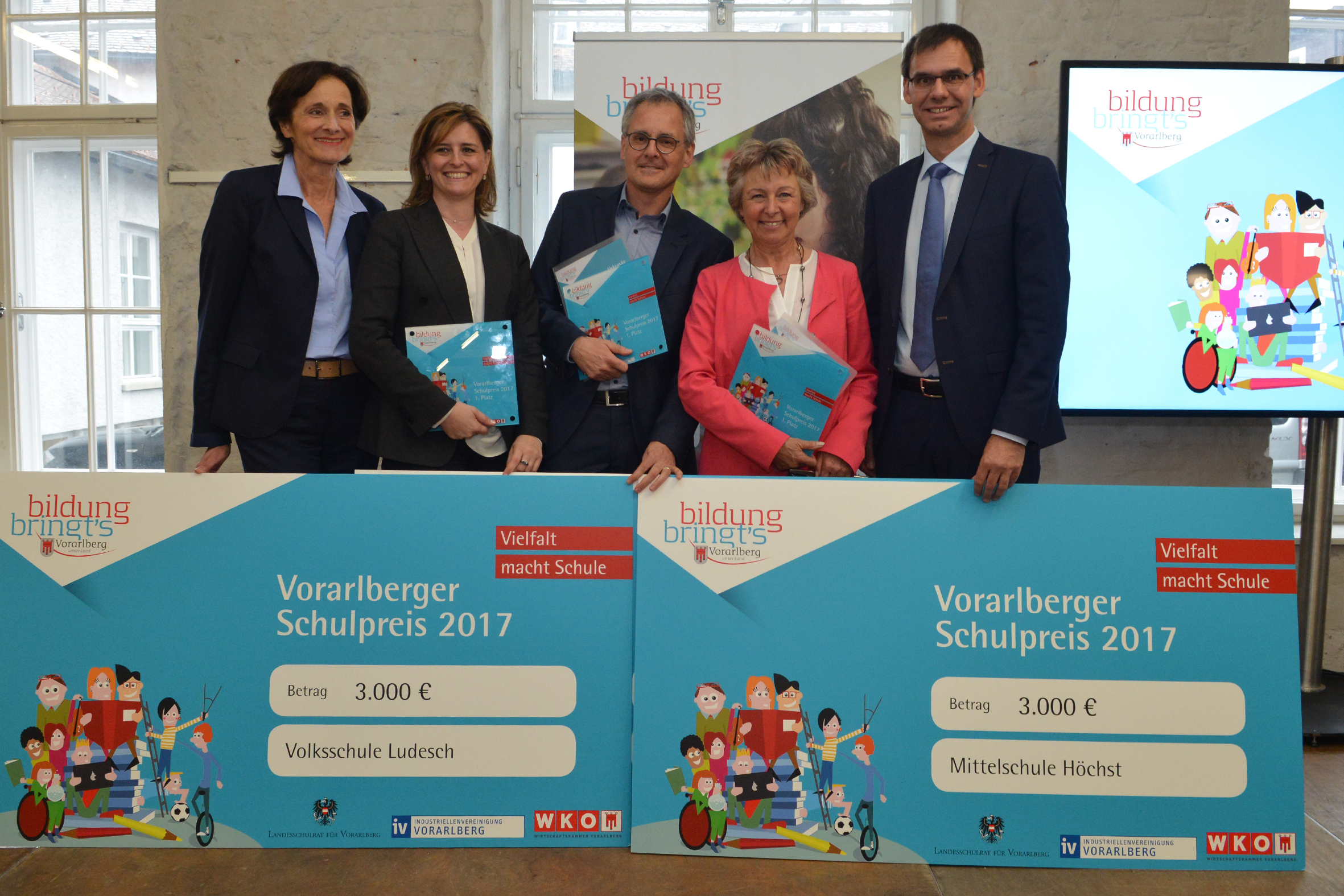Die mit jeweils 3.000 Euro dotierten Hauptpreise wurden in der Kategorie Grundstufe an die Volksschule Ludesch, in der Kategorie Sekundarstufe I an die Mittelschule Höchst und in der Kategorie Sekundarstufe II an die Handelsakademie/Handelsschule Lustenau verliehen. Sechs weitere Anerkennungspreise mit jeweils 1.000 Euro Preisgeld gingen an: