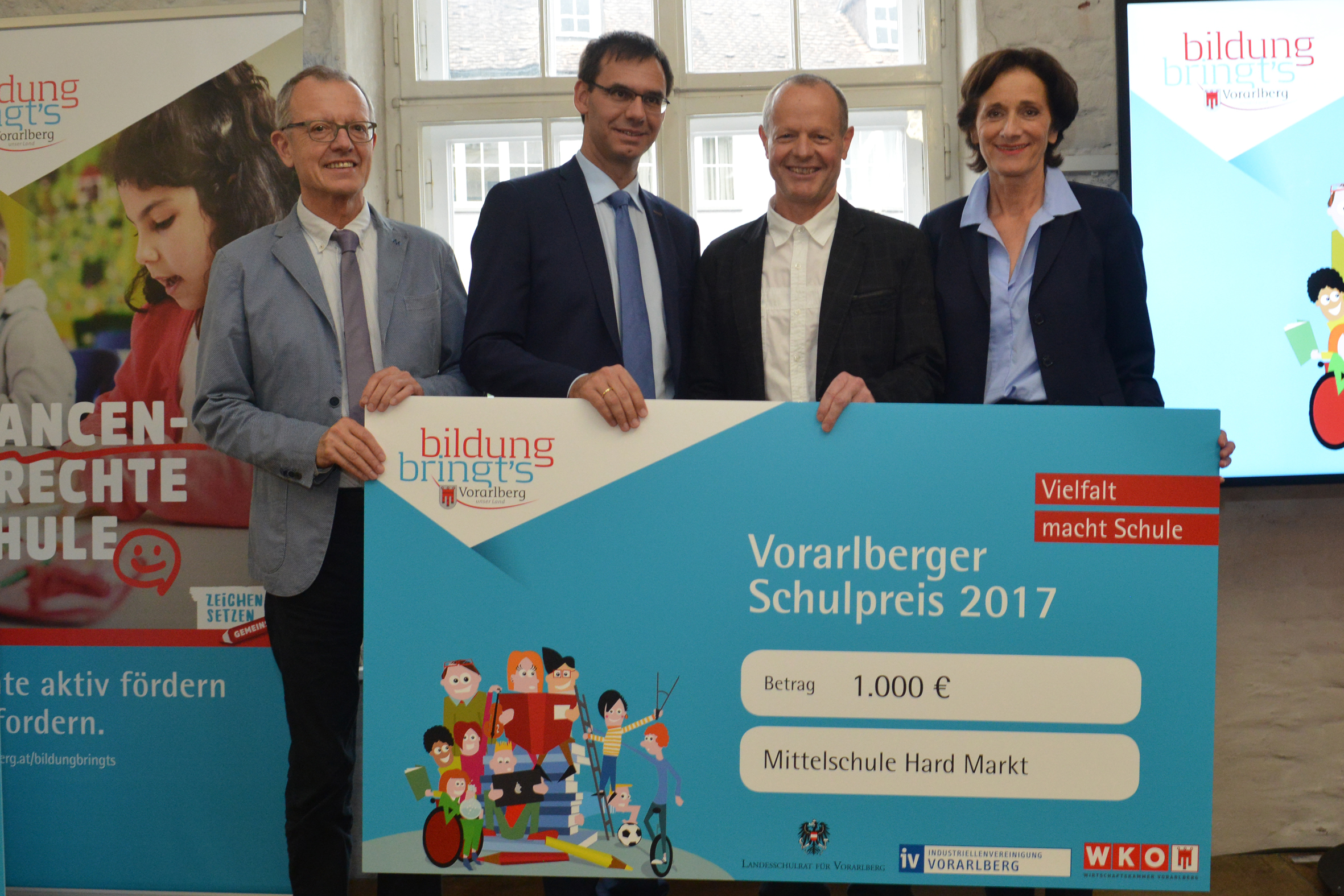 Der Vorarlberger Schulpreis wurde heuer zum ersten Mal von Land Vorarlberg und Landesschulrat in Zusammenarbeit mit der Wirtschaftskammer Vorarlberg und der Industriellenvereinigung Vorarlberg vergeben. „Unser Anliegen ist es, gute Schulen zu stärken und dafür zu sorgen, dass sich ihre Konzepte verbreiten und Schulen voneinander lernen können. Die Preisträgerschulen nehmen damit eine Leuchtturm-Funktion in der Vorarlberger Schullandschaft ein“, sagte Landesrätin Mennel.