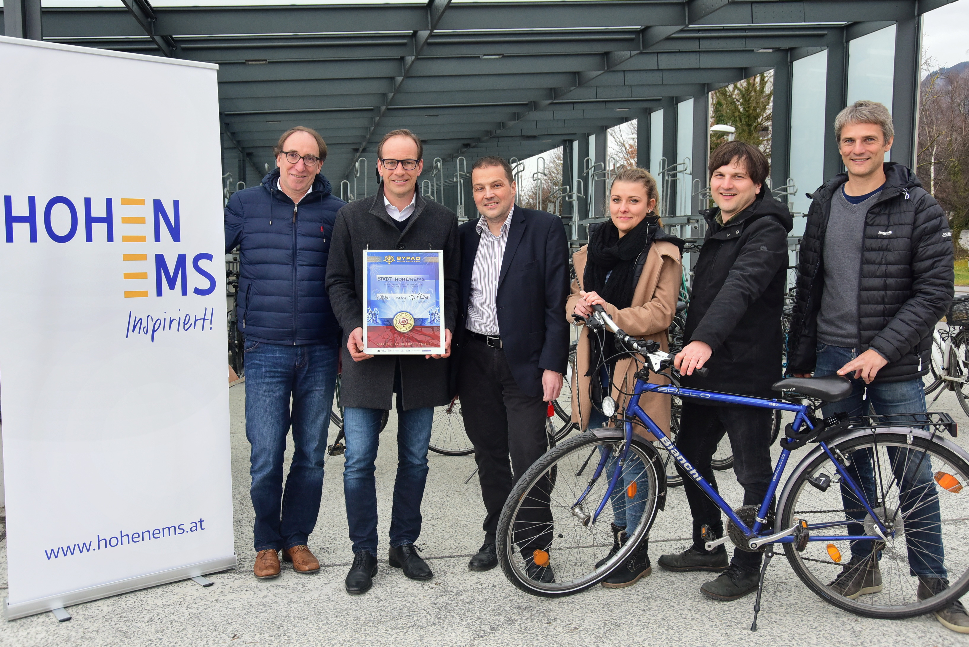 Um das gesunde und umweltfreundliche Verkehrsmittel in Hohenems noch weiter zu fördern, hat die Stadt im letzten Jahr ihre Radverkehrspolitik nach der Methode des europäischen Fahrrad-Audits „BYPAD“ (Bicycle Policy Audit) systematisch auf Stärken und Verbesserungsmöglichkeiten überprüfen lassen. Unter Anleitung von externen Fachpersonen beurteilte eine Gruppe aus Gemeindepolitik, Gemeindeverwaltung und engagierten Bürgerinnen und Bürgern den Status Quo der Radverkehrspolitik und identifizierte mögliche Verbesserungspotentiale. Aufbauend auf diesen Ergebnissen wurde ein Rad-Aktionsprogramm mit 22 konkreten Umsetzungsmaßnahmen erarbeitet, das am 27. Februar 2018 von der Stadtvertretung einstimmig beschlossen wurde.