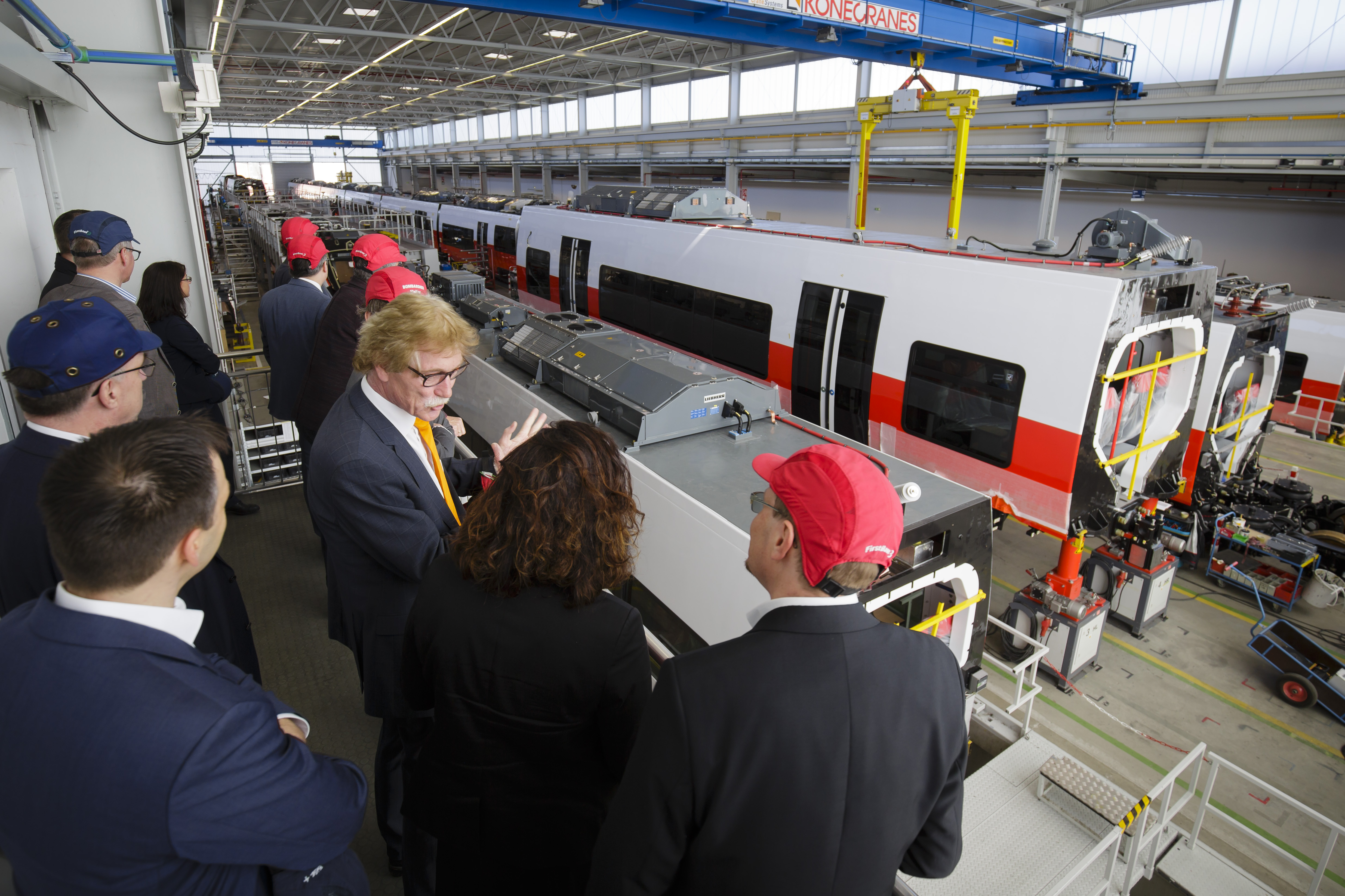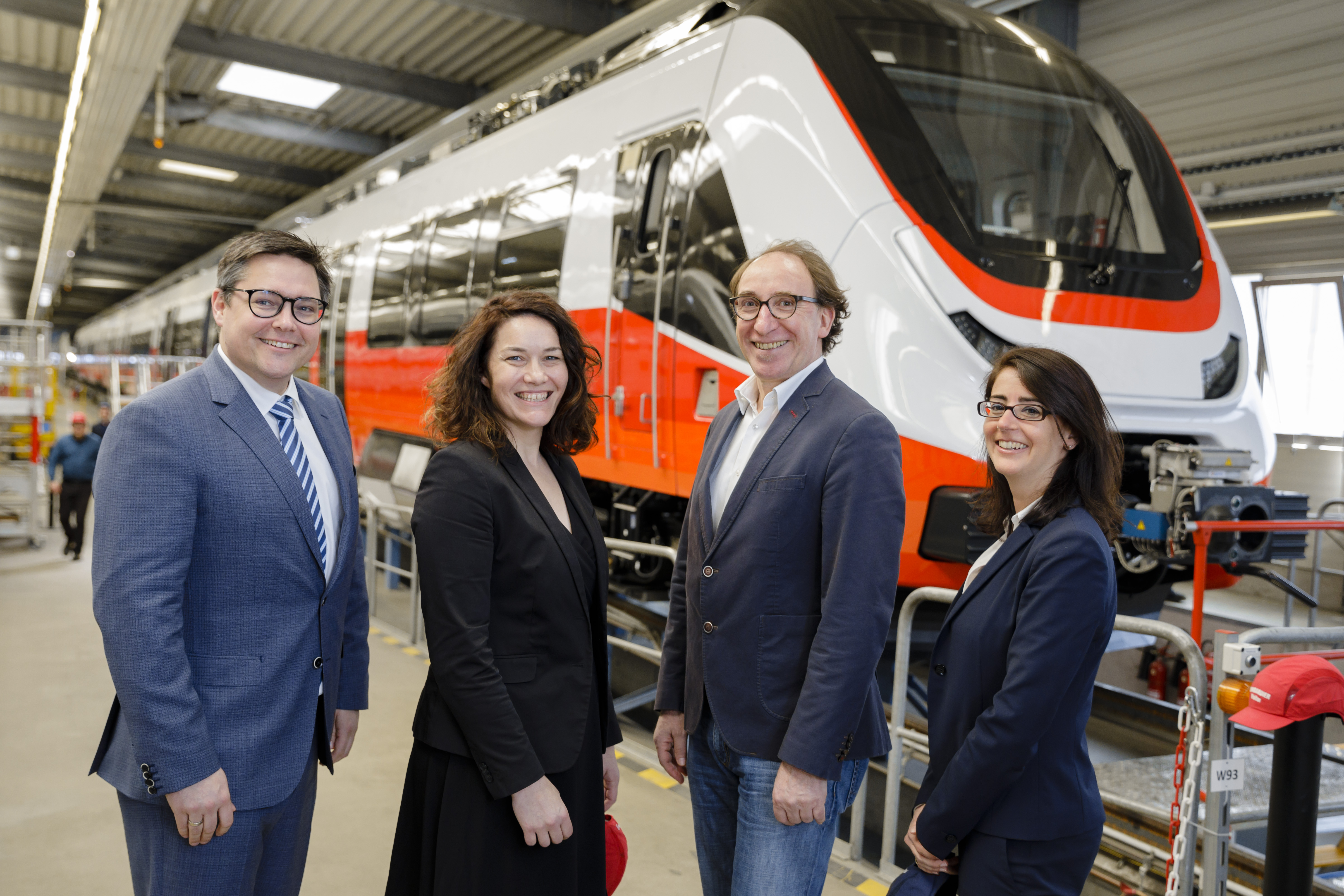 Medieninformation Freitag, 06.04.2018, 15:46 Besichtigung der ersten sechs S-Bahn-Garnituren für Vorarlberg LR Rauch machte sich in Berlin ein Bild über den Produktionsfortschritt