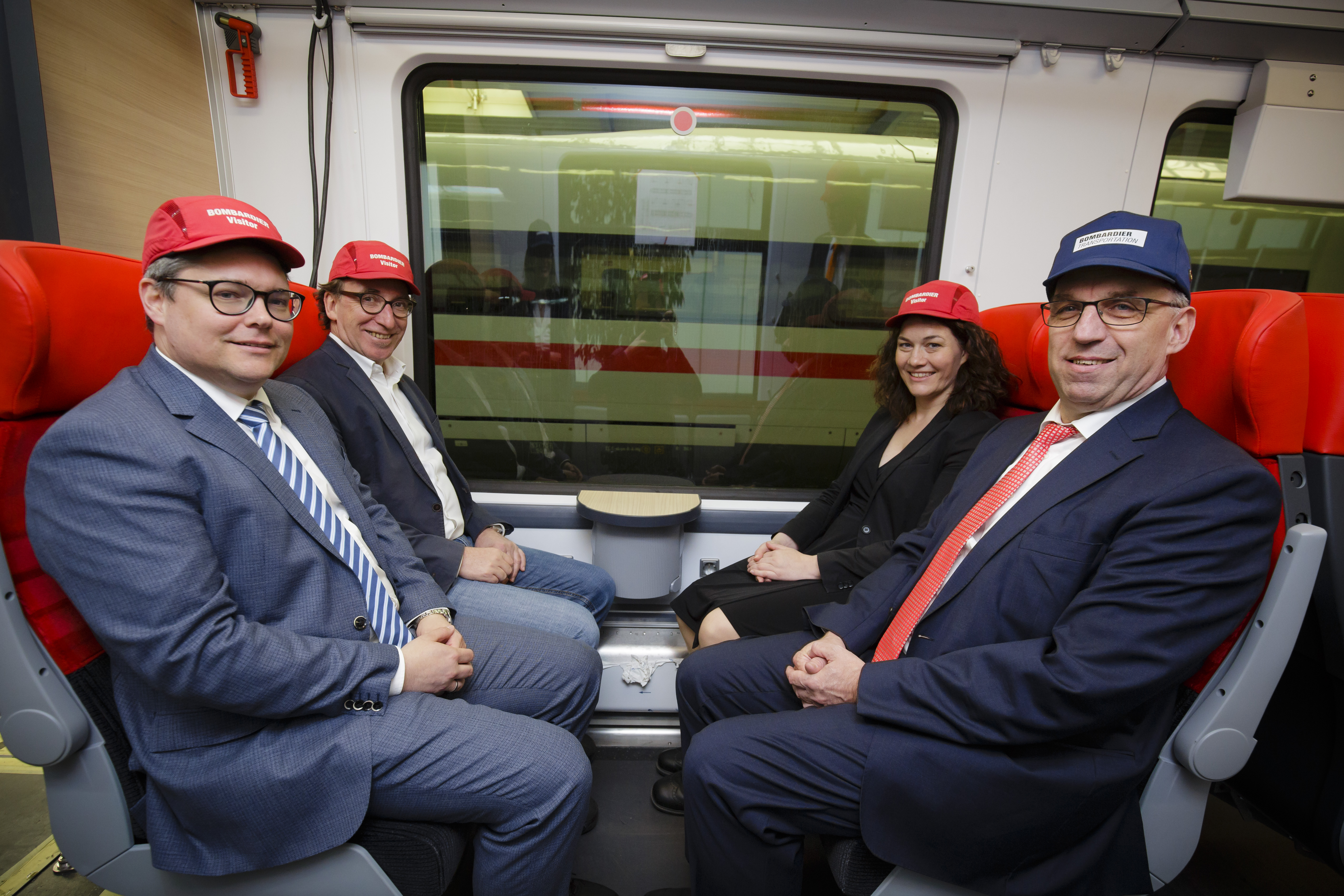 Die dann insgesamt 21 neuen „Talent 3“- Züge werden ab Frühjahr 2019 eine neue Ära im Öffentlichen Personenverkehr in Vorarlberg einleiten. Immer mehr Vorarlbergerinnen und Vorarlberger nutzen den Öffentlichen Verkehr und auch in Zukunft wird diese Zahl weiter ansteigen, deswegen sorgt das Land Vorarlberg vor: Die ab 2019 eingesetzten „Talent 3“-Garnituren werden auf rund 100 Metern Länge etwa 300 Sitzplätze bieten. Derzeit sind in Vorarlberg vor allem Elektrotriebzüge vom Typ „Talent 1“ im Einsatz, welche auf einer Länge von etwa 70 Metern rund 200 Sitzplätze bieten. Die Steigerung der Sitzplatzanzahl trägt einerseits dem Umstand Rechnung, dass die Nutzung des Öffentlichen Verkehrs in Vorarlberg stetig wächst und andererseits ist damit auch eine Steigerung im Komfort für die Fahrgäste verbunden: „Die neuen Zuggarnituren bieten nicht nur mehr Sitze, sondern auch mehr Beinfreiheit und Ablagemöglichkeiten. Ebenso gibt es mehr Platz für Rollstuhlfahrerinnen und –fahrer und sogar Wickeltische. Mir ist es wichtig, dass Kinderwägen und Fahrräder stressfrei und sicher im Zug abgestellt werden können“, so Landesrat Rauch. Dass dies in den neuen Zügen garantiert ist, davon hat sich Landesrat Rauch heute in einer Besichtigung vor Ort überzeugt. Die Zuggarnituren tragen somit auch zur besseren Verzahnung unterschiedlichster Mobilitätsformen bei, ergänzt Landesrat Rauch.