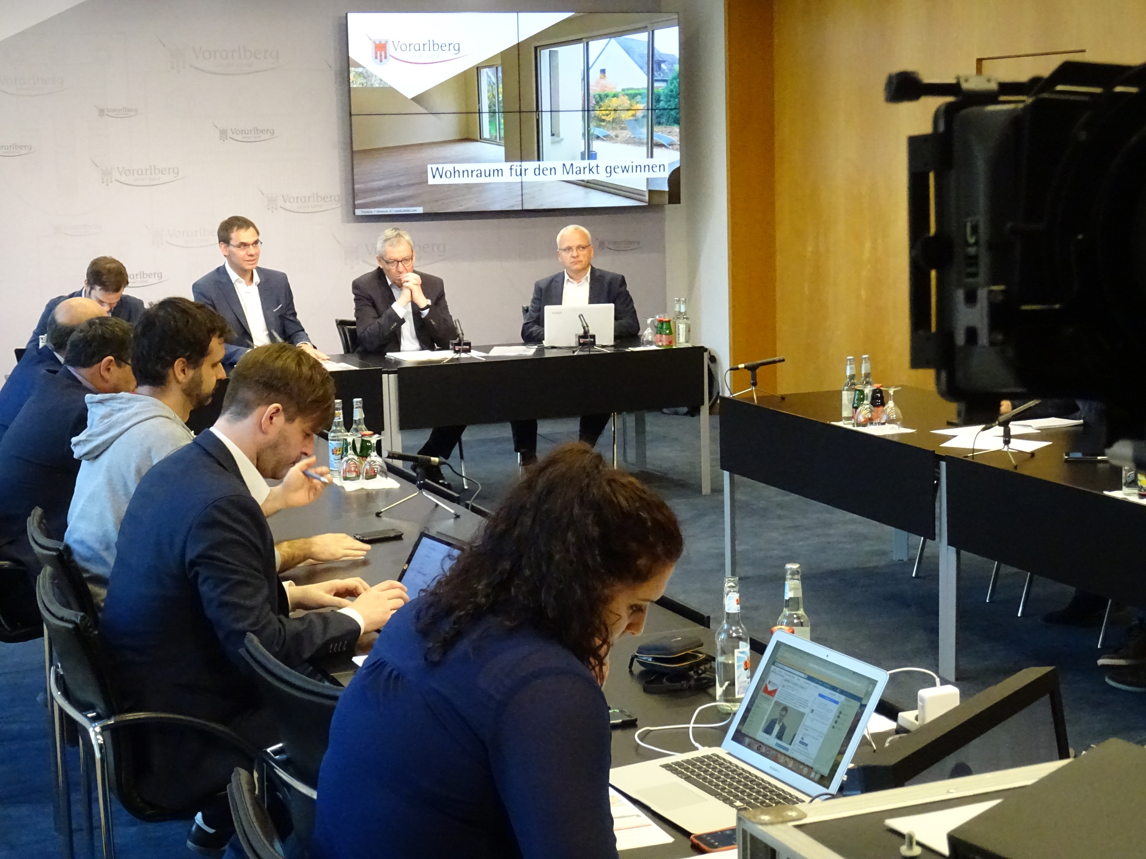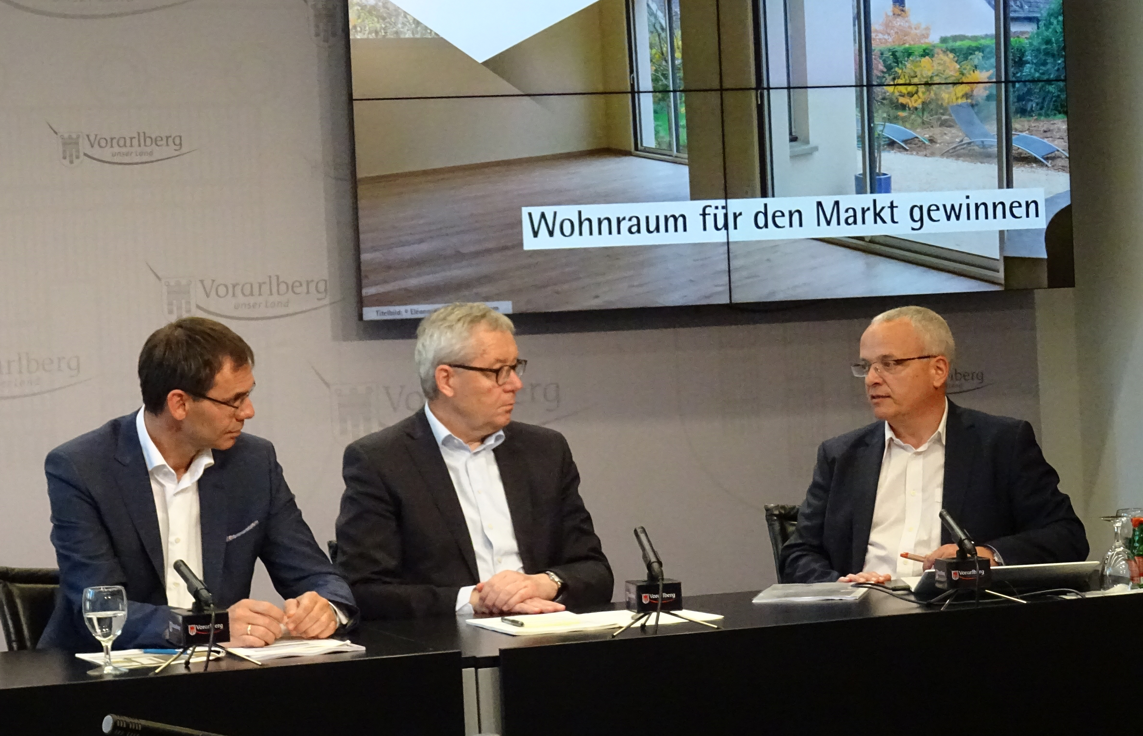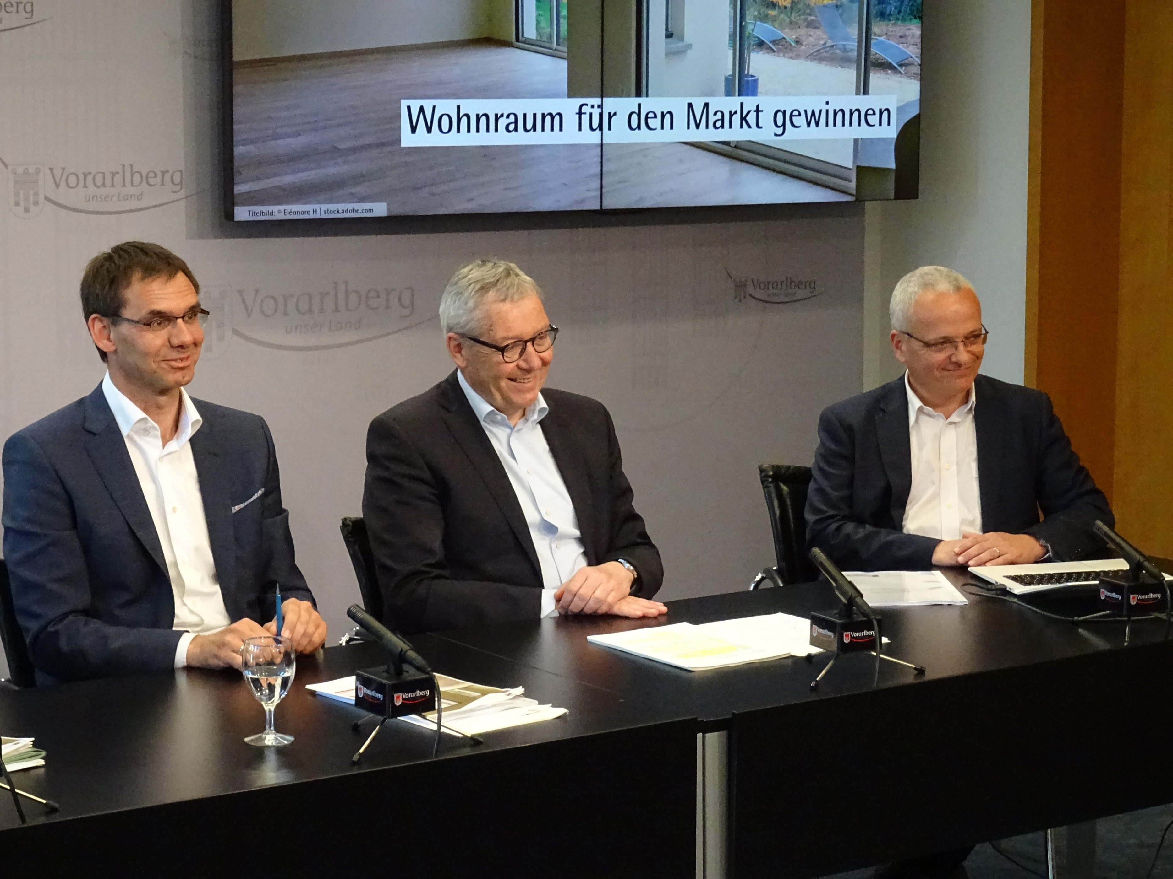 LH Wallner, LSth. Rüdisser und Studienautor Amman präsentierten die Ergebnisse der Untersuchung zum Wohnungsleerstand in Vorarlberg