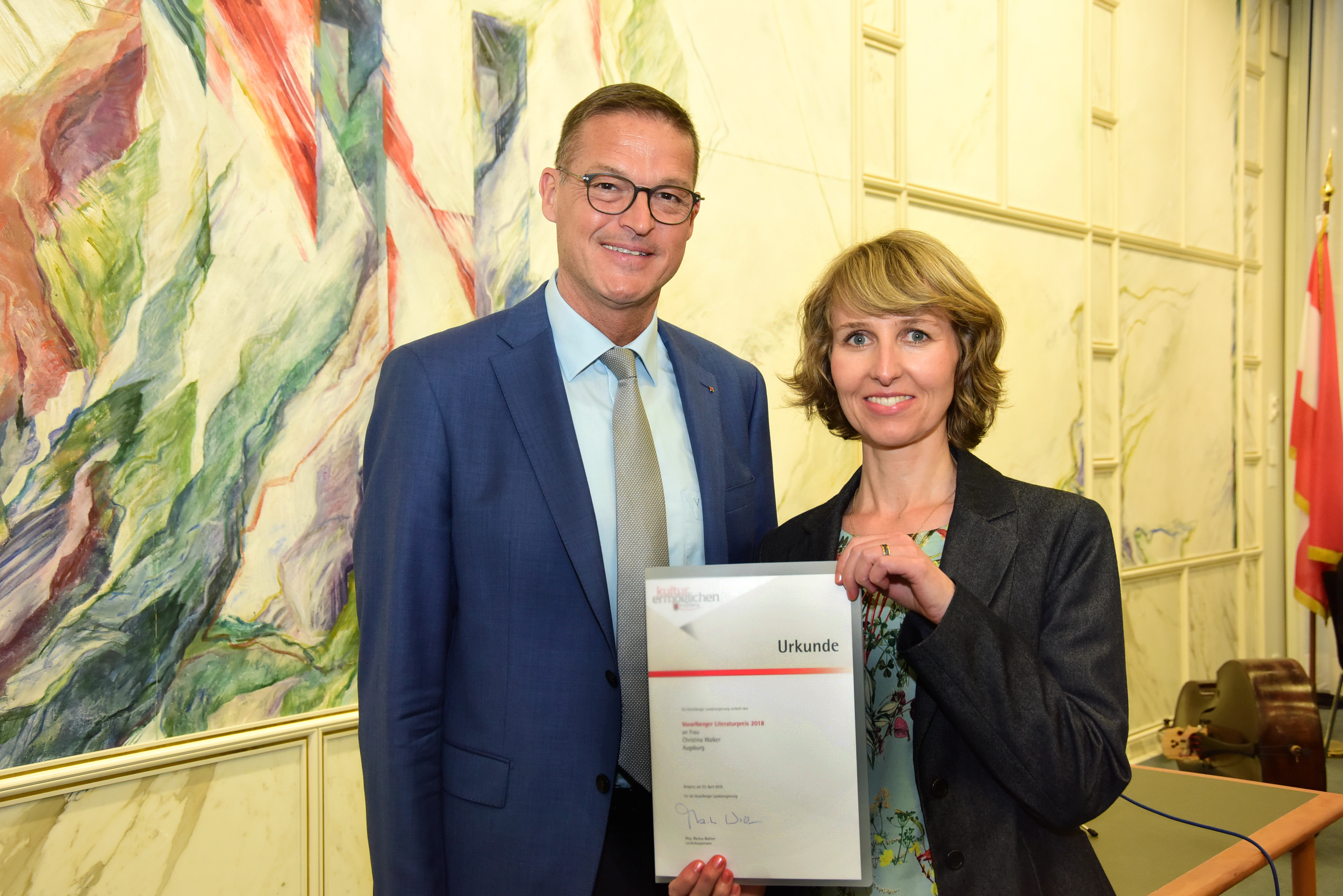 Mit ihren Texten haben sich die beiden Schriftstellerinnen heuer gegen 28 Einreichungen durchgesetzt. "Durch die große Zahl an Einreichungen ist klar erkennbar, welch großes Interesse und wie viel Anerkennung mit der Auszeichnung verbunden ist. Zudem wird der Literaturpreis im Land als Chance und Anreiz begriffen", hebte Landesrat Bernhard bei der feierlichen Veranstaltung in seinen Grußworten hervor. Besonders erfreut zeigte sich der Landesrat darüber, dass "sowohl arrivierte als auch junge, aufstrebende Autorinnen und Autoren ihre Texte eingereicht haben". Ebenso erfreulich findet Bernhard, dass sich die Jury im anonymen Verfahren in diesem Jahr für zwei weibliche Literaturschaffende entschieden hat. Auch der Leiter der Kulturabteilung des Landes, Winfried Nußbaummüller, lobte in seiner Laudatio das große Potential der beiden Autorinnen. Als Kennzeichen von Literaturpreisträgerin Christina Walker nannte er ihre "ausdrucksstarke, liebevolle Sprache", von der sich die Anwesenden bei der Lesung aus dem prämierten Text einen Eindruck verschaffen konnten. Der vom Land Vorarlberg ausgeschriebene Literaturpreis wird jedes Jahr in einem anonymisierten Verfahren an eine Schriftstellerin oder einen Schriftsteller verliehen. Mit seinen Aktivitäten unterstützt das Land unter anderem auch das Literaturfestival hardcover oder den Feldkircher Lyrikpreis.