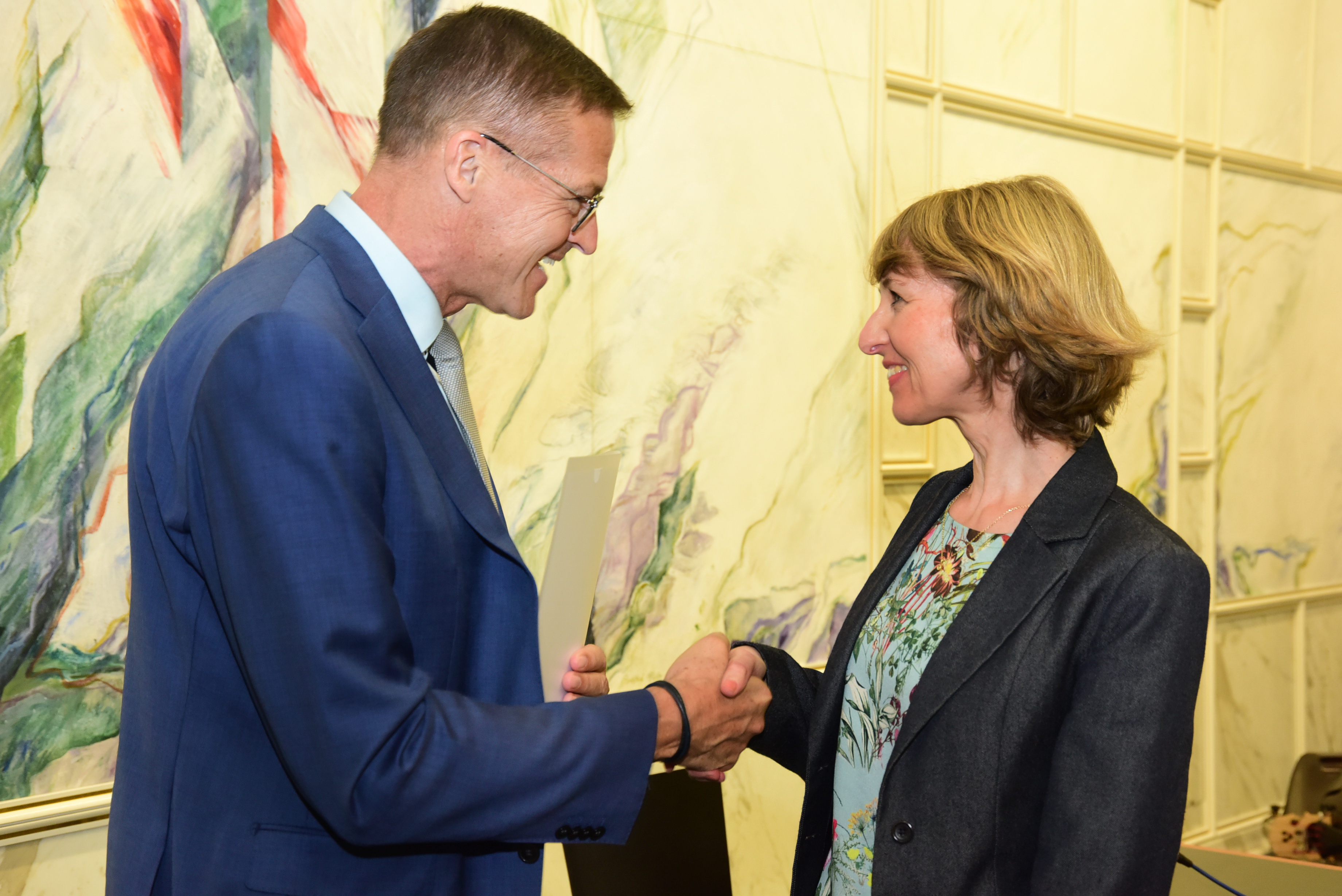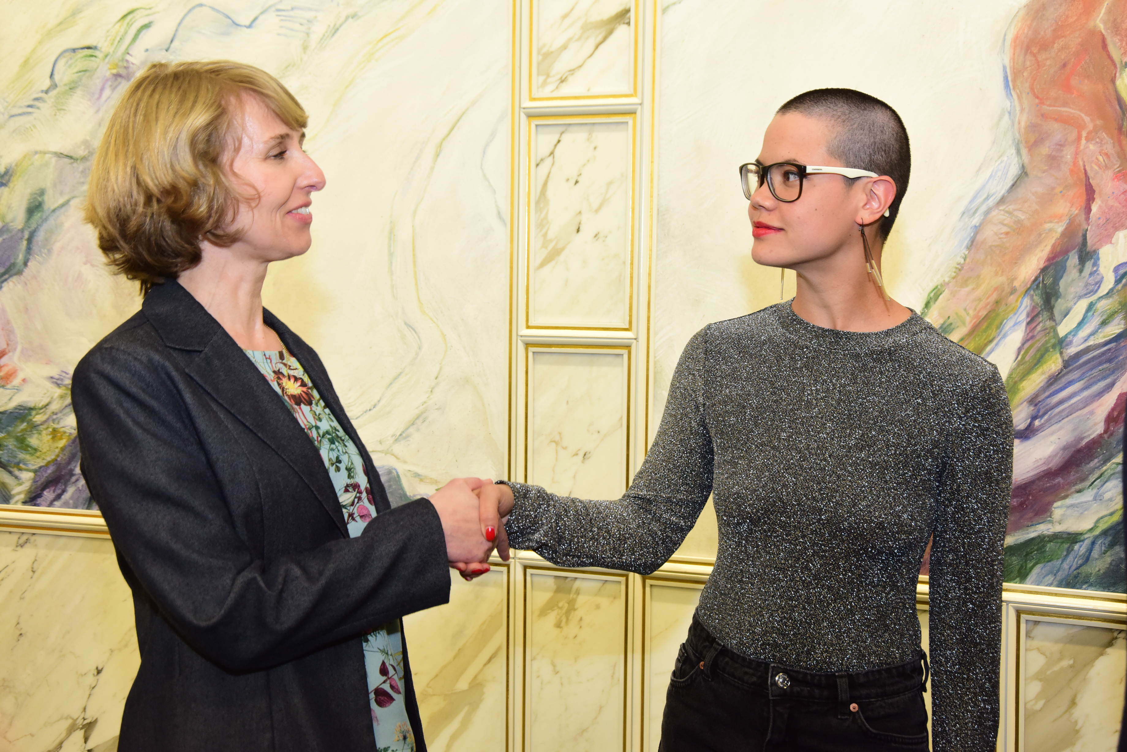 Medieninformation Montag, 23.04.2018, 19:30 LR Bernhard überreichte Christina Walker den Literaturpreis 2018 Carolyn Amann erhielt ein Arbeitsstipendium in Höhe von 1.500 Euro
