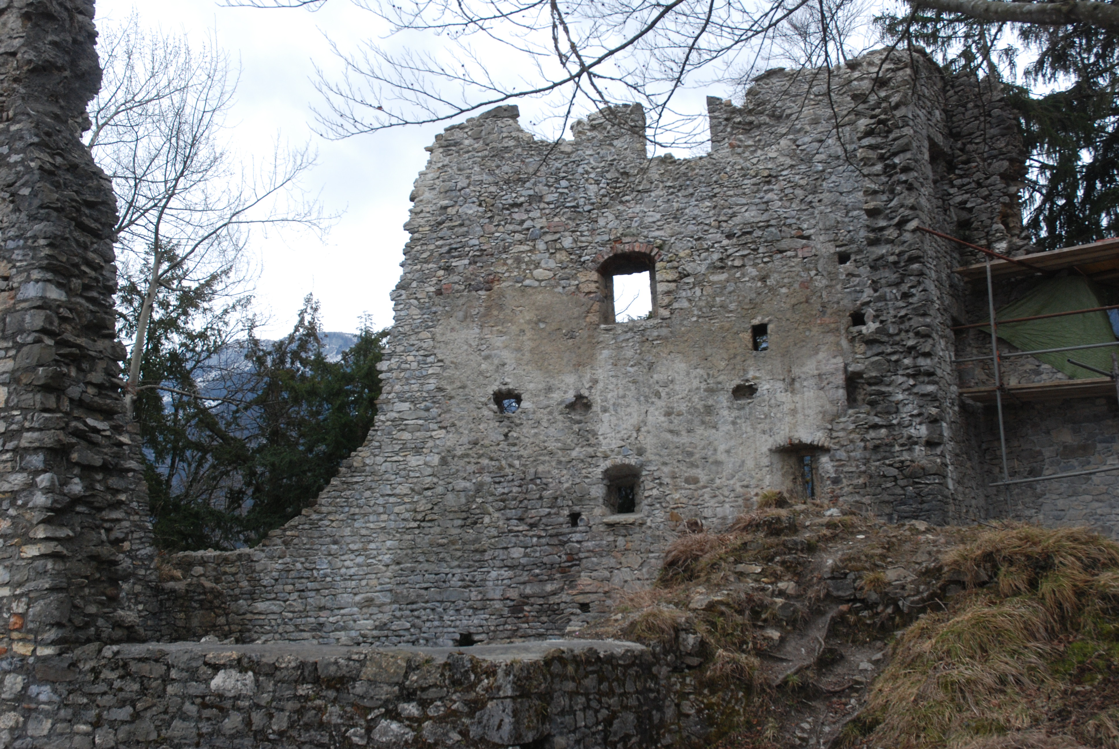 Ruine-Tosters-Feldkirch.jpg: Bei der Burgruine Tosters konnten dank der Burgenaktion die Mauern des Bergfriedes befestigt werden.