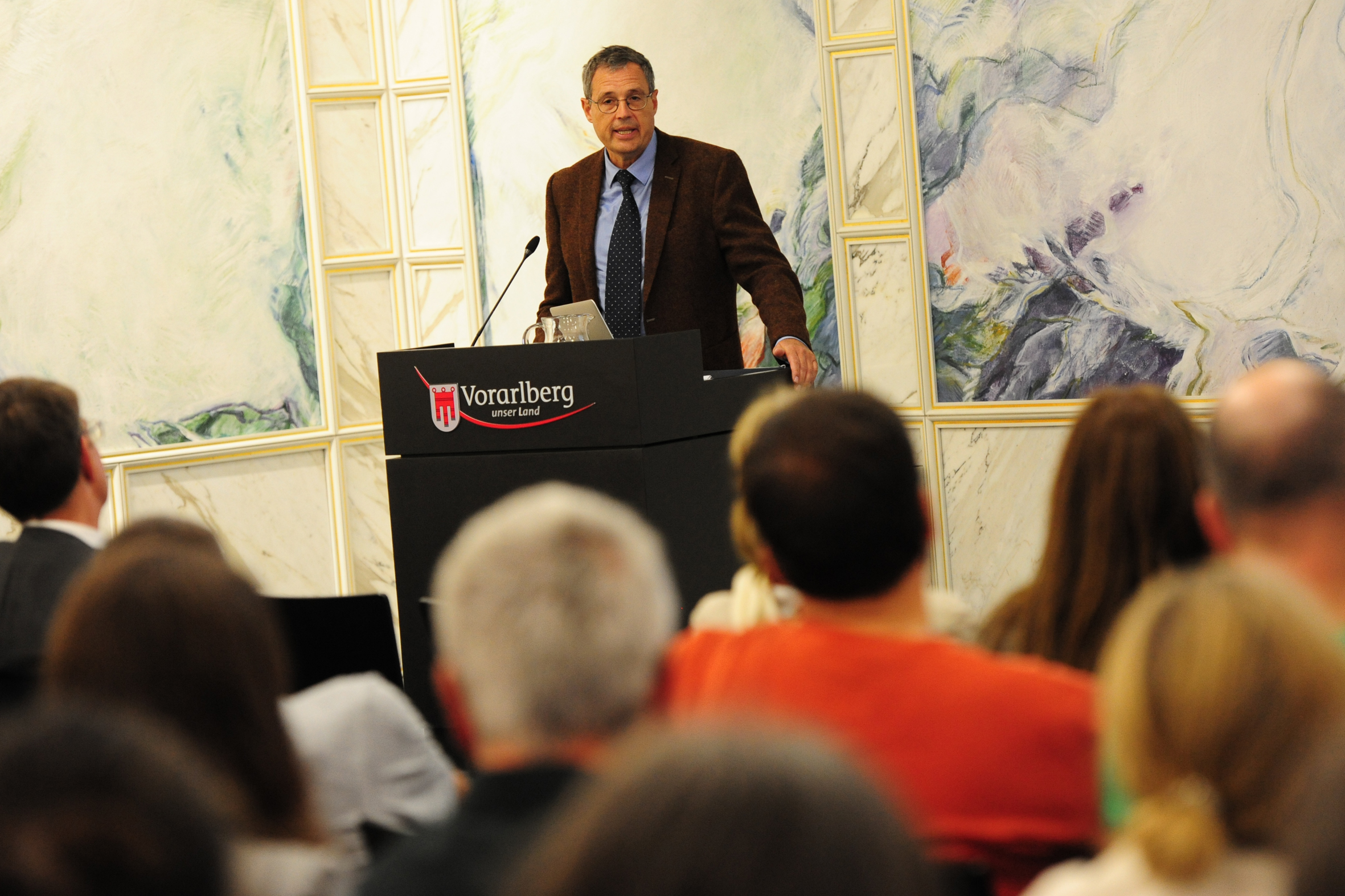 Die Digitalisierung, ein fast alle Lebensbereiche erfassender Trend unserer Zeit, stand im Zentrum einer Enquete der ARGE Erwachsenenbildung am Montag, 8. Oktober, im Landhaus. Der Zukunftsforscher Florian Kondert lieferte mit seinem Vortrag zum Thema "Die Rache des Analogen – Risiken und Chancen der Digitalisierung" den Stoff für eine angeregte Diskussion. Bildungslandesrätin Barbara Schöbi-Fink dankte der ARGE Erwachsenenbildung und ihrem Vorsitzenden Hans Rapp für deren Engagement im Sinne des lebensbegleitenden Lernens und die Gestaltung des hochwertigen Fort- und Weiterbildungsprogrammes in Vorarlberg.
