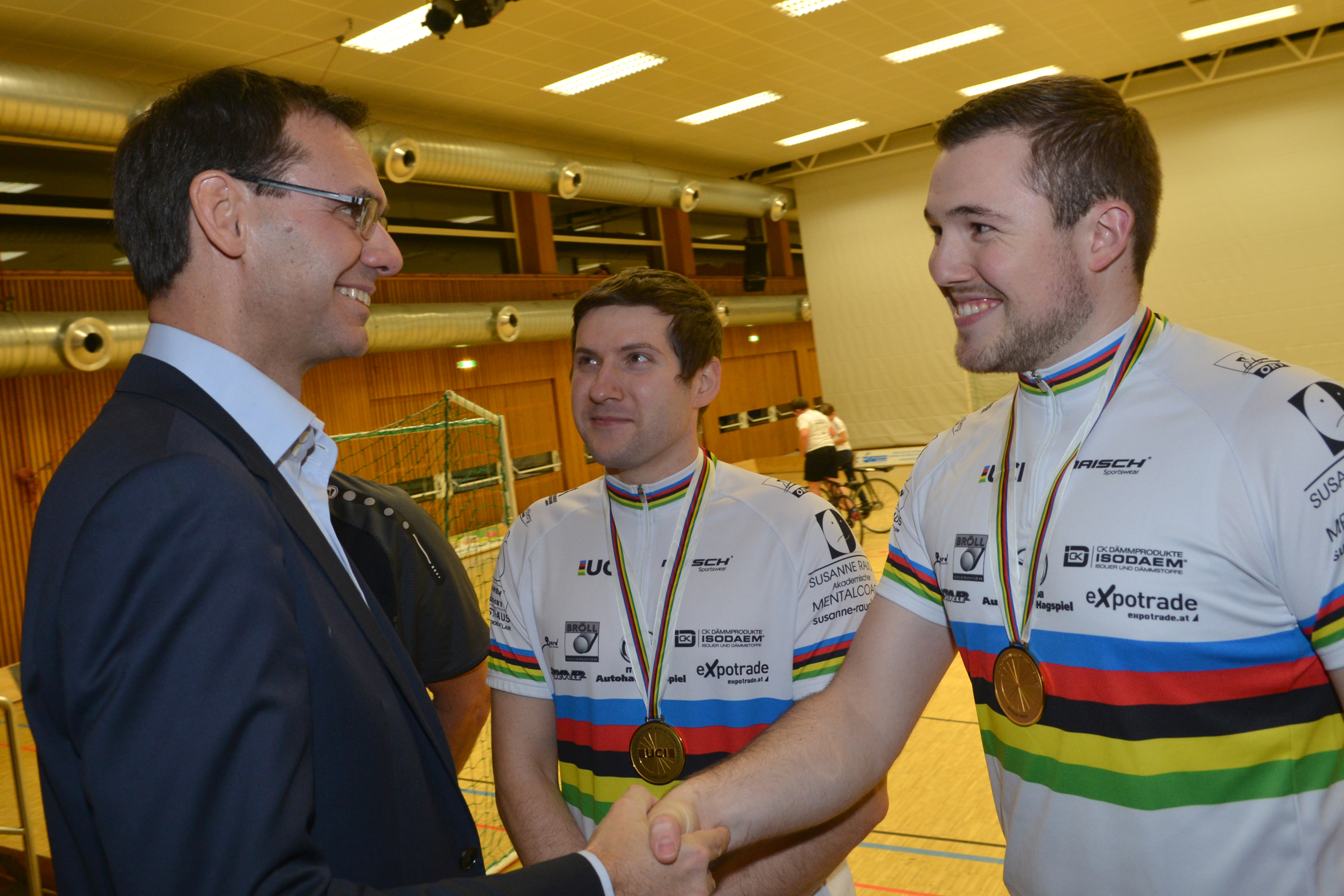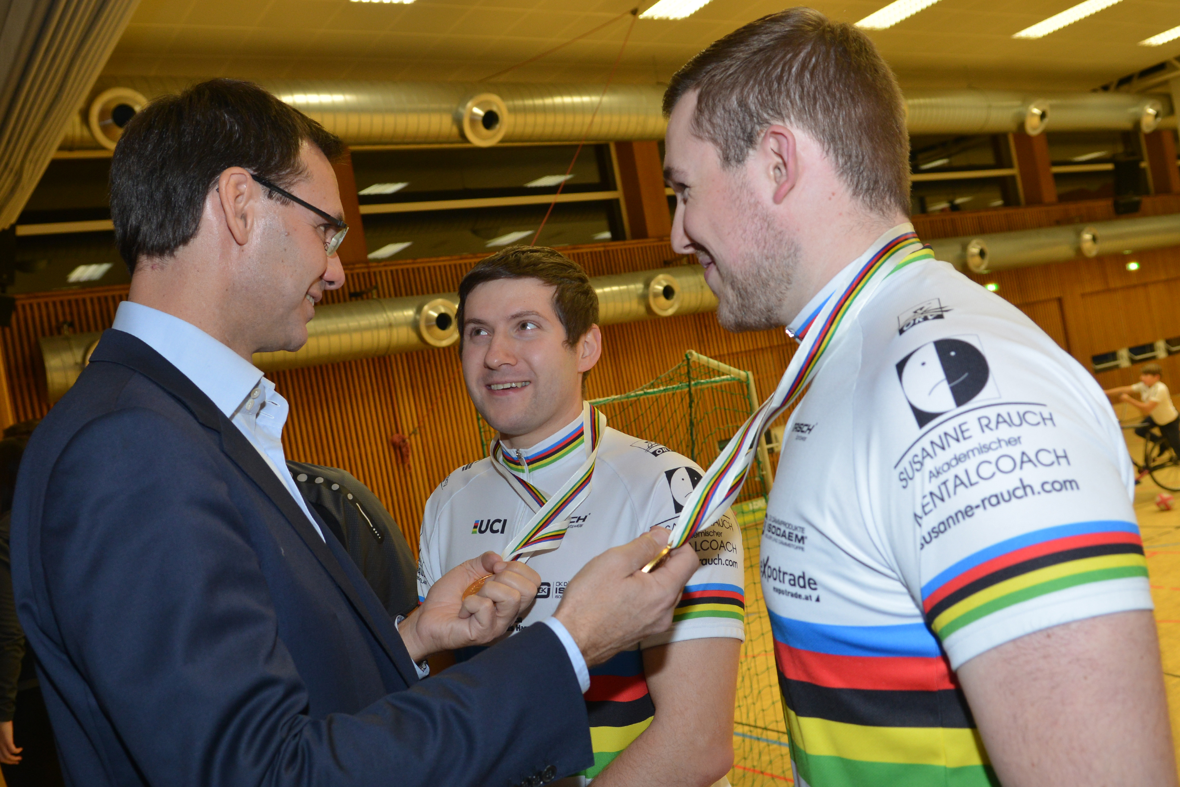"Wichtige Vorbilder für junge Generation" Die Athletinnen und Athleten wären "wichtige Vorbilder für die sportbegeisterte junge Generation in Vorarlberg", unterstrich der Landeshauptmann: "Herausragende Topleistungen bestärken unseren motivierten Sportnachwuchs, an ihren eigenen Zielen konsequent und engagiert festzuhalten". Zudem würden Erfolge wie der erneute WM-Titel von Schnetzer und Bröll und die übrigen Topresultate in der absoluten Weltspitze den ohnehin schon starken Radsport in Vorarlberg weiter beflügeln, so Wallner.