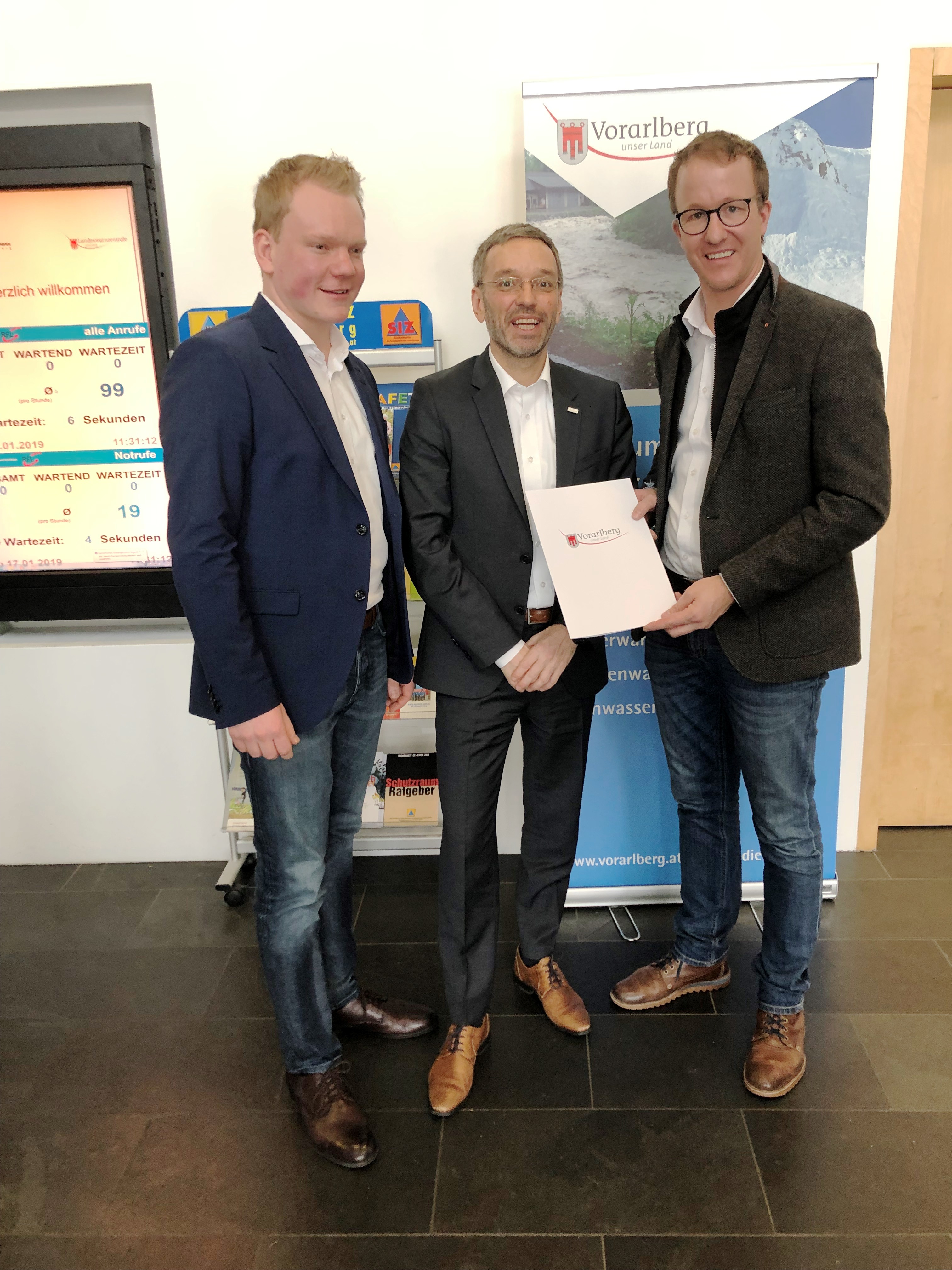 Medieninformation Donnerstag, 17.01.2019, 12:18 LR Gantner übergibt Innenminister Forderungspapier zur Sicherheit Innenminister Herbert Kickl sagt Unterstützung zu