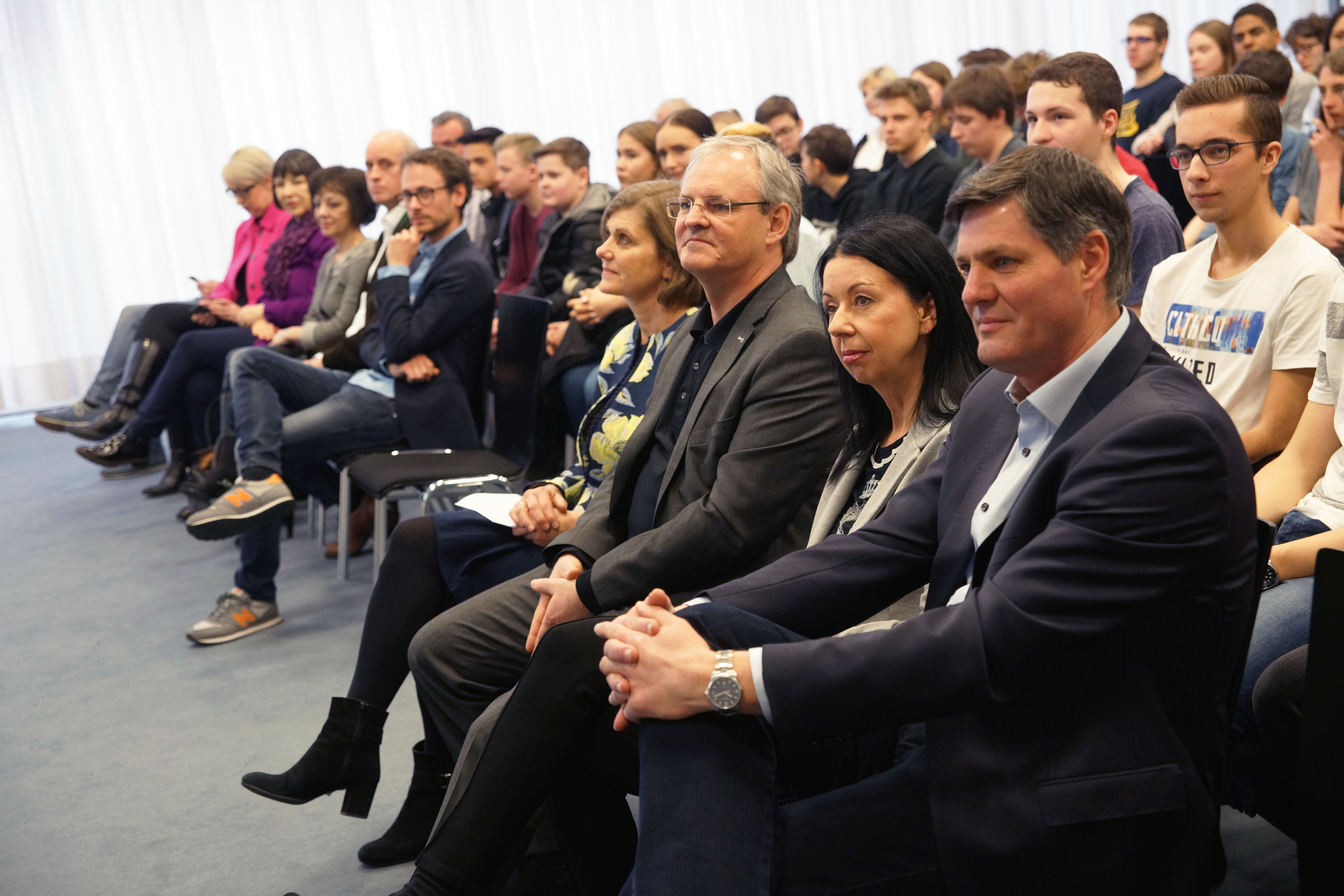 Landtagspräsident Sonderegger und Landesrätin Schöbi-Fink dankten den teilnehmenden Schülerinnen und Schülern für ihren Einsatz und gratulierten den Ausgezeichneten zum großen Erfolg. Für die Vorbereitungen und die Ausrichtung des Wettbewerbes bedankten sie sich bei den engagierten Lehrpersonen und all jenen, die unter der Koordination von Florian Bassa (BG Lustenau) mitgewirkt haben.