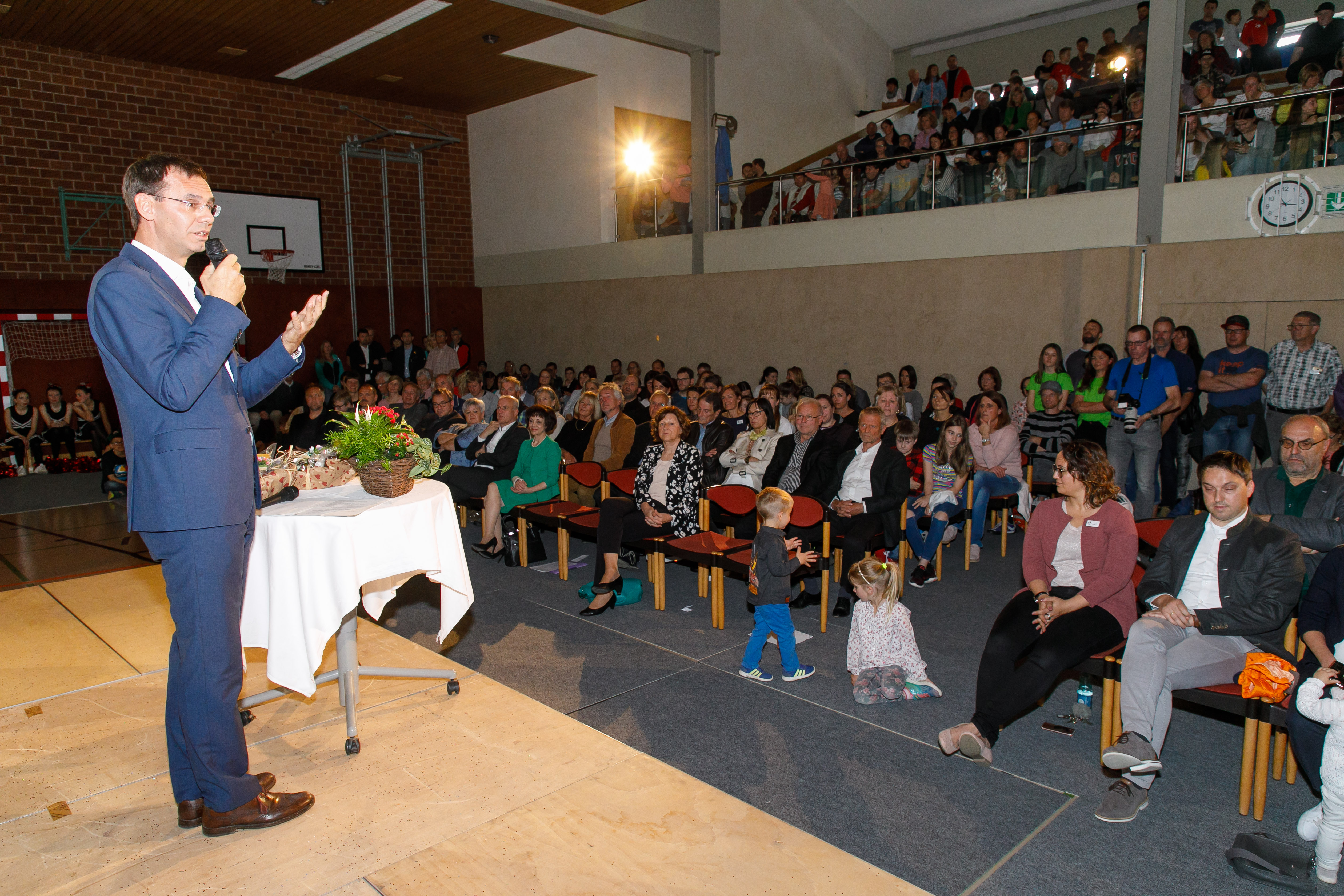 Bürgermeister Andi Haid sprach beim Festakt von einer "wichtige Bildungsinvestition". Im Zuge der Modernisierung sei ein Raumkonzept umgesetzt worden, das an neuesten pädagogischen Erkenntnissen angelehnt ist, erläuterte der Bürgermeister. So wären die Stammklassen räumlich um sogenannte Lernwerkstätten ergänzt worden. Durch die so entstandenen Lernlandschaften wird es den Schülerinnen und Schüler möglich, Arbeitsaufträge individuell mit Hilfe der bereitstehenden Unterrichtsmittel zu bearbeiten. "Neben den Schülerinnen und Schülern profitieren auch die Lehrkräfte von der qualitativ hochwertigen Infrastruktur", sagte Haid.