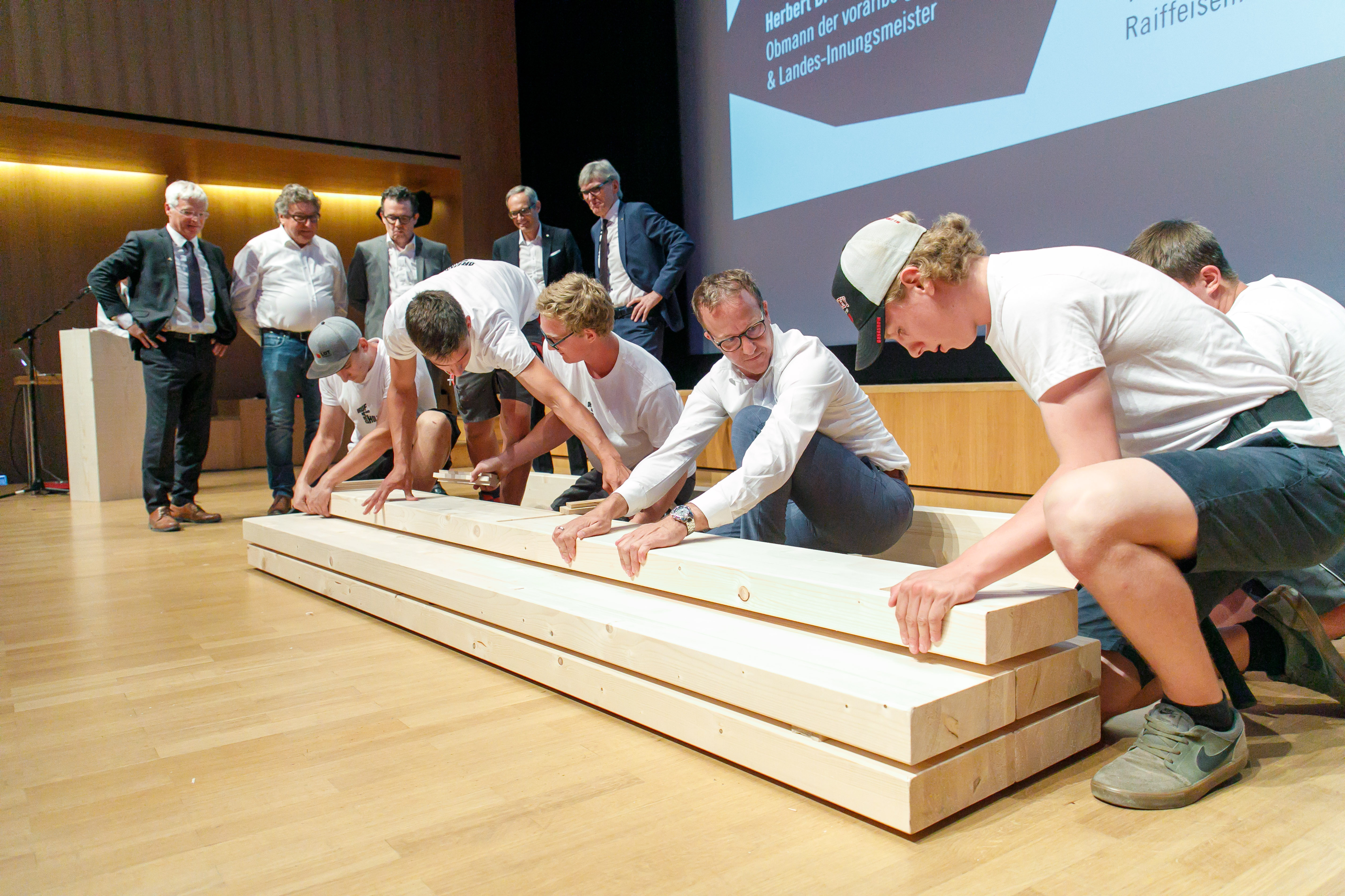 Dem Netzwerk vorarlberger holzbau_kunst mit Geschäftsführer Matthias Ammann an der Spitze gratulierte Gantner zur mehr als 20-jährigen Erfolgsgeschichte. „Dieser Preis ist eine innovative Aktion, die immer wieder wichtige Impulse setzt, hielt Gantner fest.