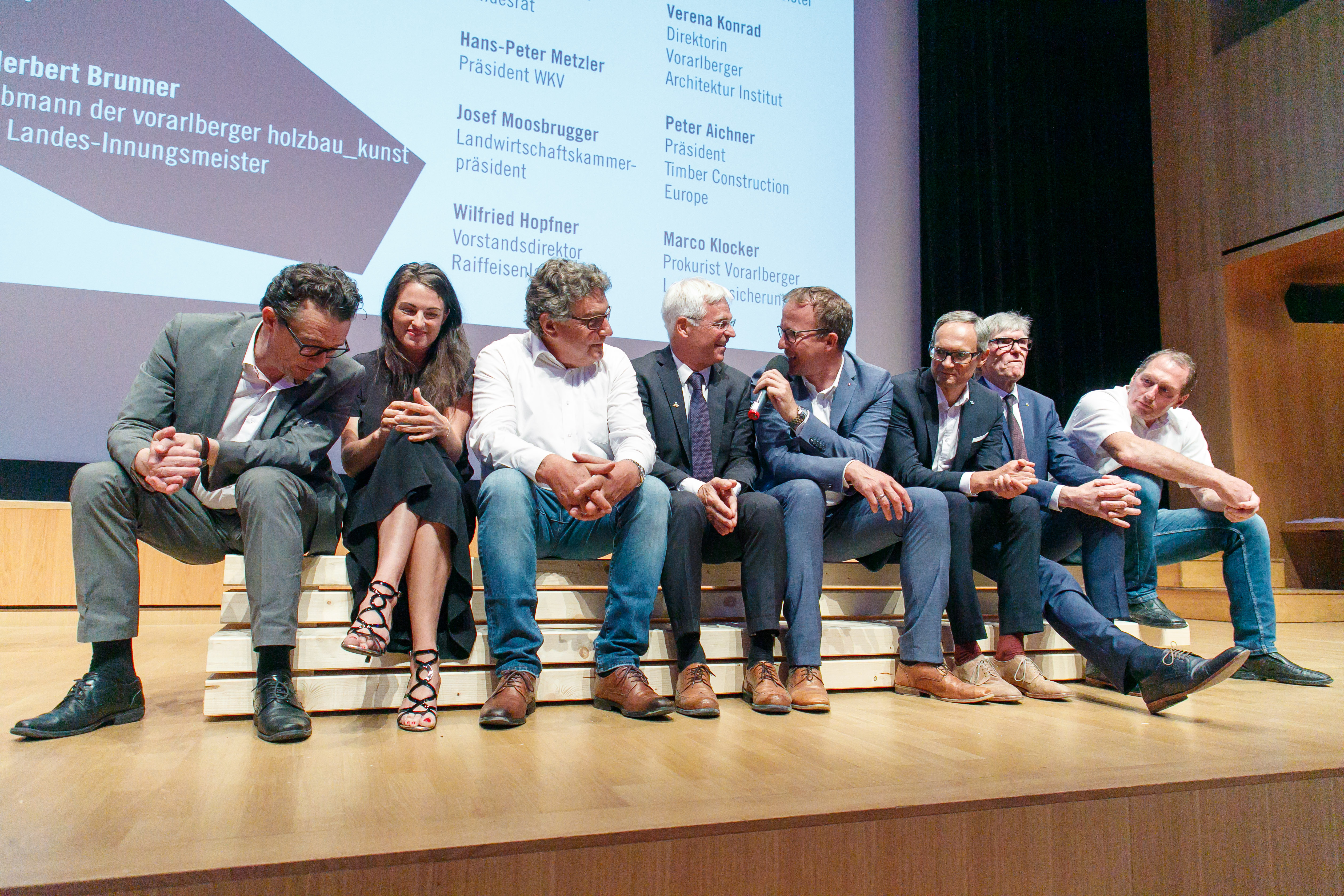 Das diesjährige Motto des Preises „Druf und Dra mit Holz“ soll das Bauen im Bestand thematisieren und auf die Vorteile des Werkstoffs Holz bei Anbau, Aufstockung oder Sanierung aufmerksam machen. „Nachhaltigkeit und Umweltfreundlichkeit sind entscheidende Gründe dafür, dass die Bedeutung von Holz als Baustoff in der heimischen Architektur am steigen ist“, unterstrich Landesrat Gantner in seinen Grußworten. Zudem würde durch Holzbau die regionale Wertschöpfung gesteigert und dadurch Arbeitsplätze gesichert