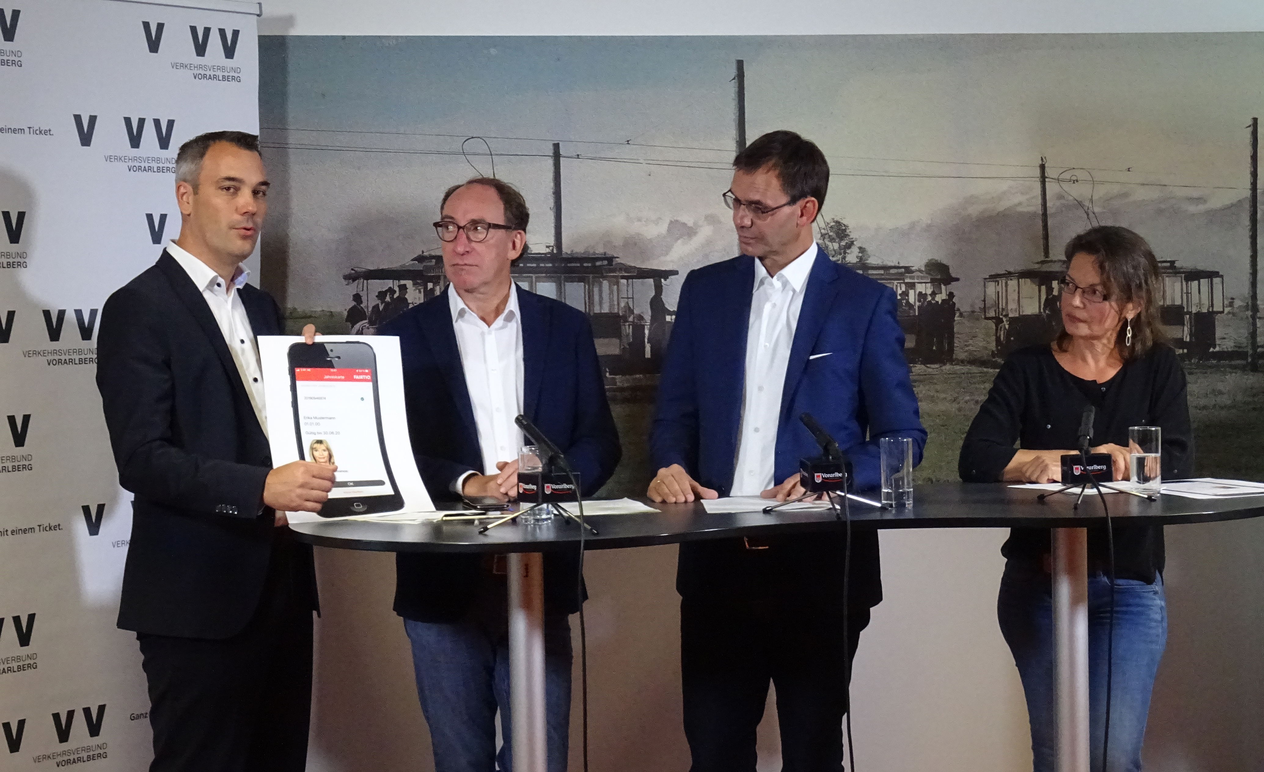 Dornbirn (VLK) – Das Smartphone ist heute nicht nur für junge Menschen ein unverzichtbarer Begleiter auf allen Wegen, in allen Altersstufen werden Apps genutzt, die Dinge des Alltags vereinfachen. Der Vorarlberger Verkehrsverbund (VVV) trägt dieser Entwicklung mit diversen technischen und digitale Neuerungen Rechnung. Was diese Verbesserungen im Öffentlichen Verkehr für das Mobilitäsverhalten bringen, erläuterten Landeshauptmann Markus Wallner und Landesrat Johannes Rauch gemeinsam mit VVV-Geschäftsführer Christian Hillbrand und aha-Geschäftsführerin Monika Paterno im Pressefoyer am Dienstag, 10. September.