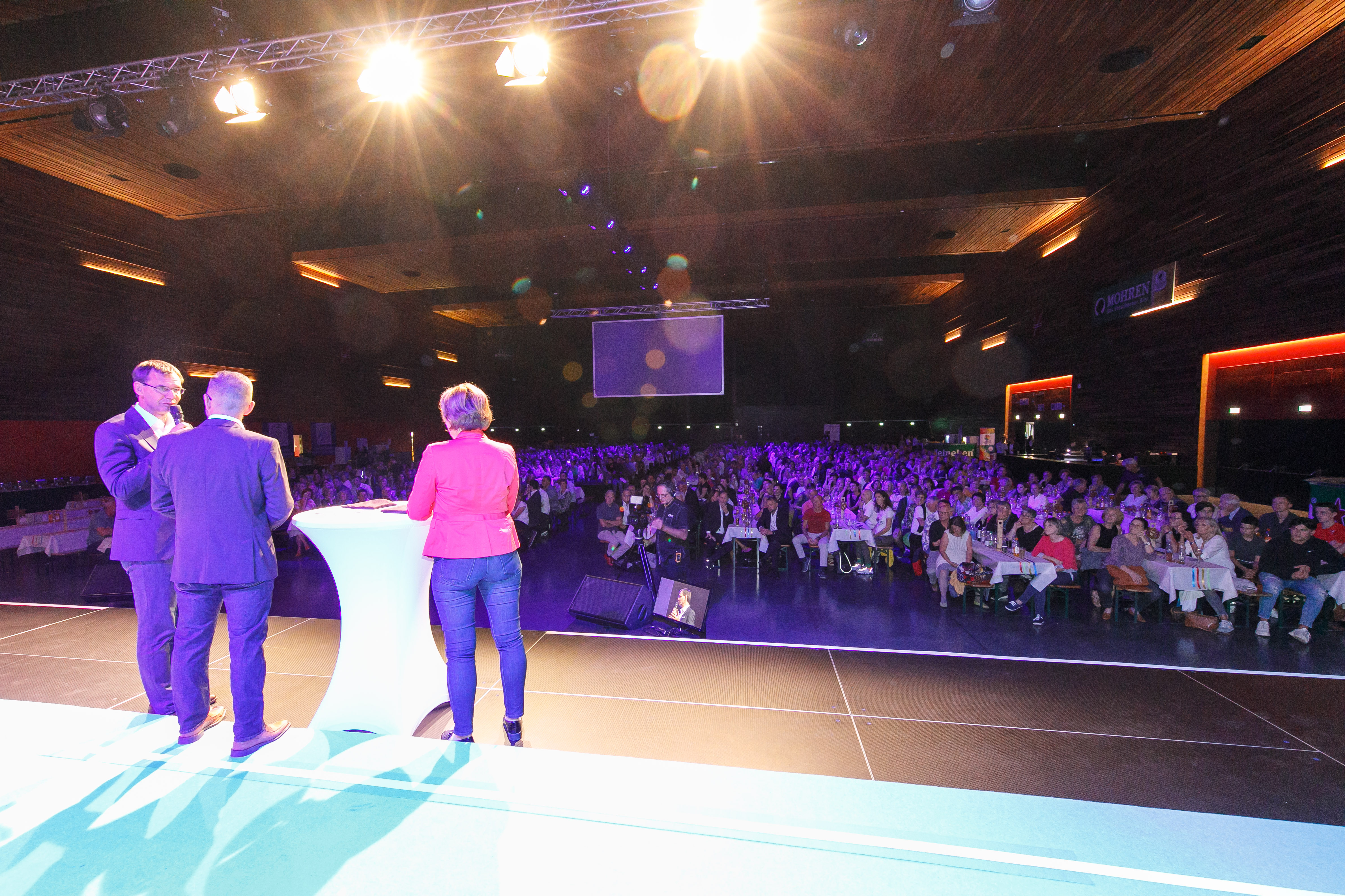 Dornbirn (VLK) – Die Landesregierung und das Organisationskomitee der 16. Weltgymnaestrada bedankten sich gestern, Freitag (13. September) in der Messe in Dornbirn mit einem Danke-Fest bei den vielen freiwilligen Helferinnen und Helfern, die zum großen Erfolg der Weltgymnaestrada beigetragen haben. Im Rahmen des Festes wurden OK-Präsidentin Marie-Louise Hinterauer und Gymnaestrada-Geschäftsführer Erwin Reis mit dem „Silbernen Ehrenzeichen für Verdienste um die Republik Österreich“ ausgezeichnet. „Dieser Abend soll ein Zeichen der Wertschätzung und Anerkennung für die geleistete Arbeit aller Beteiligten sein“, betonte Landeshauptmann Markus Wallner.