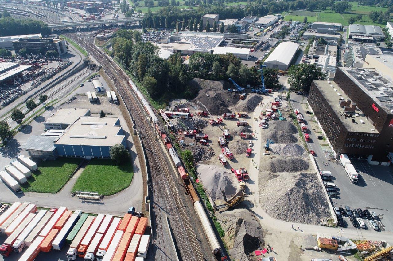 Lauterach (VLK) – Über 500 Übungsteilnehmende mit ca. 80 Einsatzfahrzeugen absolvierten heute, Samstag, den 14. September, in Lauterach eine der größten Übungen in der Geschichte Vorarlbergs. Annahme war die Frontalkollision eines Personenzugs mit einem Güterzug, der Gefahrengut geladen hatte. Ziel der Übung war es, Erfahrungen im Krisenmanagement der verschiedenen Einsatzorganisationen sowie in der organisationsübergreifenden Zusammenarbeit zu sammeln. Ein Bild vor Ort verschafften sich auch Landeshauptmann Markus Wallner und Sicherheitslandesrat Christian Gantner. „Übungen dieser Art sind wichtig, um im Ernstfall gerüstet zu sein. Es war beeindruckend zu sehen, wie die Einsatzkräfte mit der schwierigen Situation umgegangen sind“, zogen sie ein erstes positives Fazit nach Übungsende.
