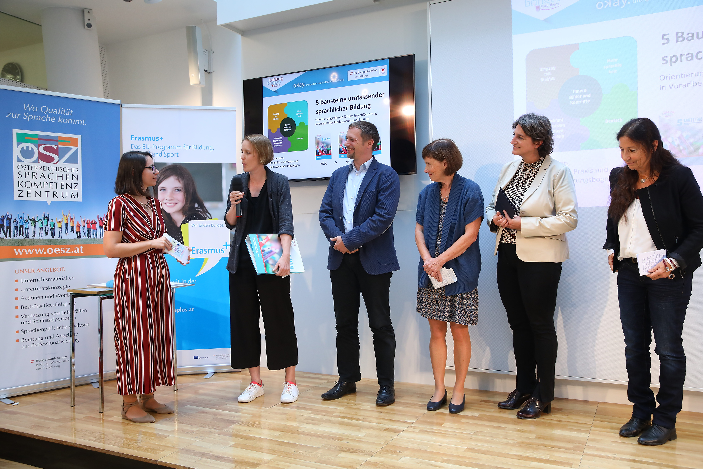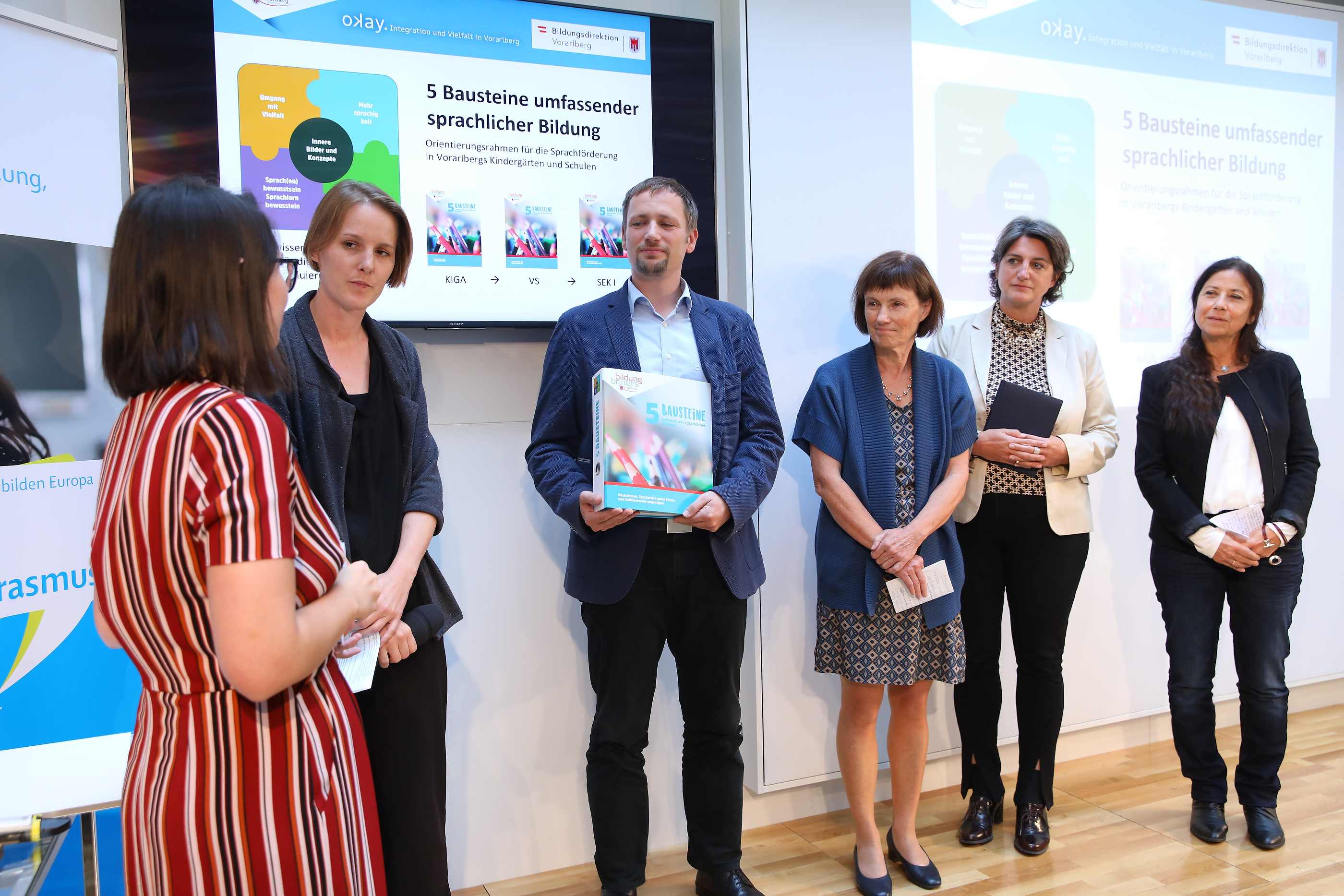 Bregenz (VLK) – Das übergreifende Modell für die Begleitung der sprachlichen Entwicklung von Kindern und Jugendlichen in Vorarlbergs Kindergärten und Schulen – die „5 Bausteine umfassender sprachlicher Bildung“ – wurde mit dem Europäischen Sprachensiegel ausgezeichnet. Damit werden dieses Jahr Projekte rund um das Thema „sprachliche und kulturelle Vielfalt wahrnehmen und wertschätzen“ prämiert. Die Auszeichnung fand am Donnerstag, 26. September 2019, bei einer feierlichen Veranstaltung in Wien statt.