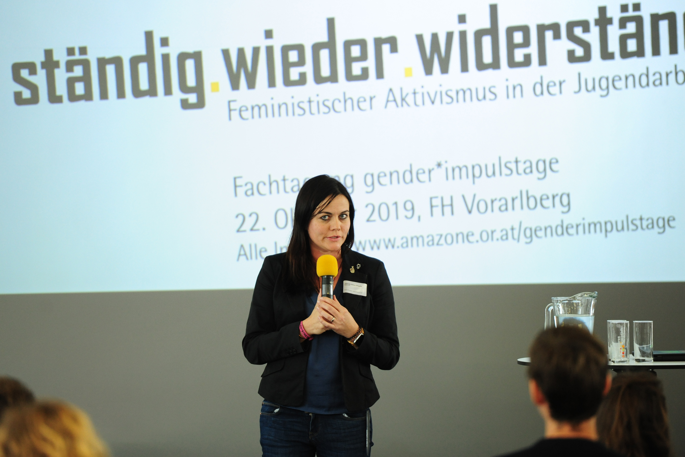 Die Vortragenden Jolanda Speiss-Heggelin, Christina Groß und Giovanni Schulze gingen in ihren Vorträgen den Herausforderungen und Hintergründen von Feminismus in der Jugendarbeit nach. Ziel sei es, Rollenklischees zu überwinden und Gleichberechtigung zu forcieren. Die gender:impulstage bieten den Teilnehmenden spannende theoretische und praxisbezogene Einblicke, um auf verschiedenen Ebenen in der Alltagsarbeit mit Jugendlichen geschlechtssensibel arbeiten zu können. Im Auftrag des Referats für Frauen und Gleichstellung im Amt der Vorarlberger Landesregierung führt der Verein Amazone diese Fachtagung heuer bereits zum elften Mal durch