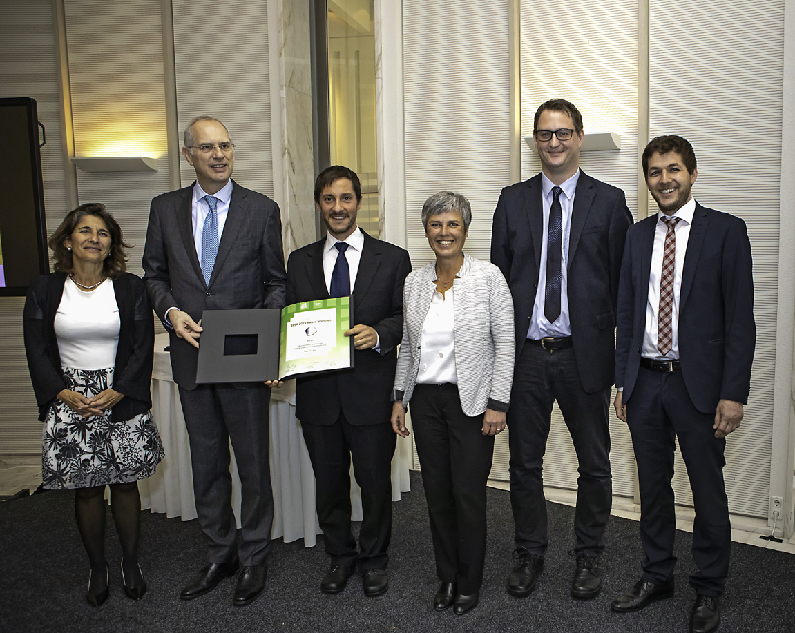 Jugendprojekt „aha plus“ international ausgezeichnet (im Bild v.l.: Gracia Vara Arribas und Marco Ongaro (EPSA), Christoph Kutzer (Büro für Zukunftsfragen/Land Vorarlberg), Barbara Österle, Elmar Huber und Dietmar Übelher (aha Jugendinformationszentrum Vorarlberg)