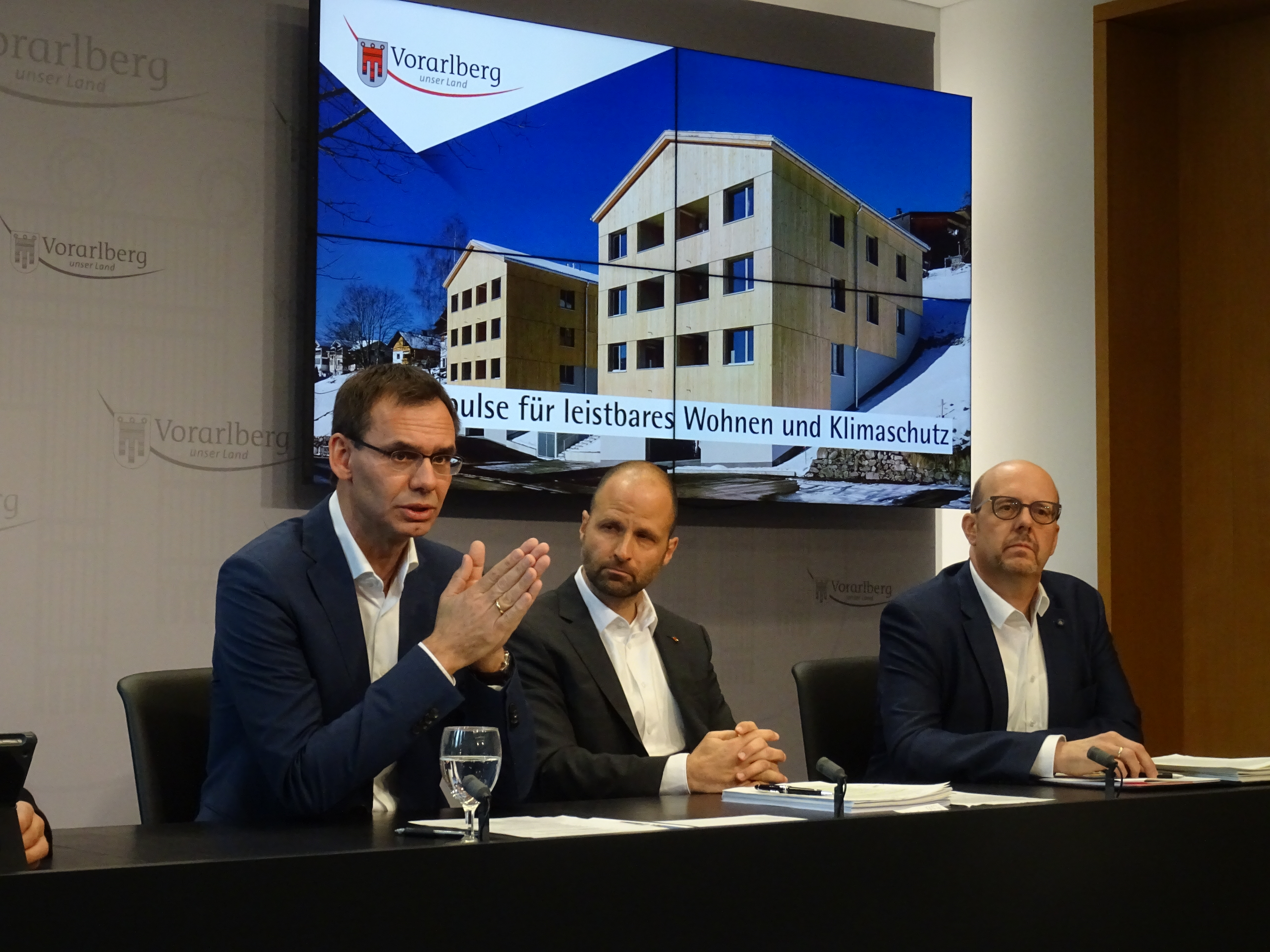 Landeshauptmann Markus Wallner, Landesrat Marco Tittler und Wohnbauförderungs-Vorstand Lothar Hinteregger