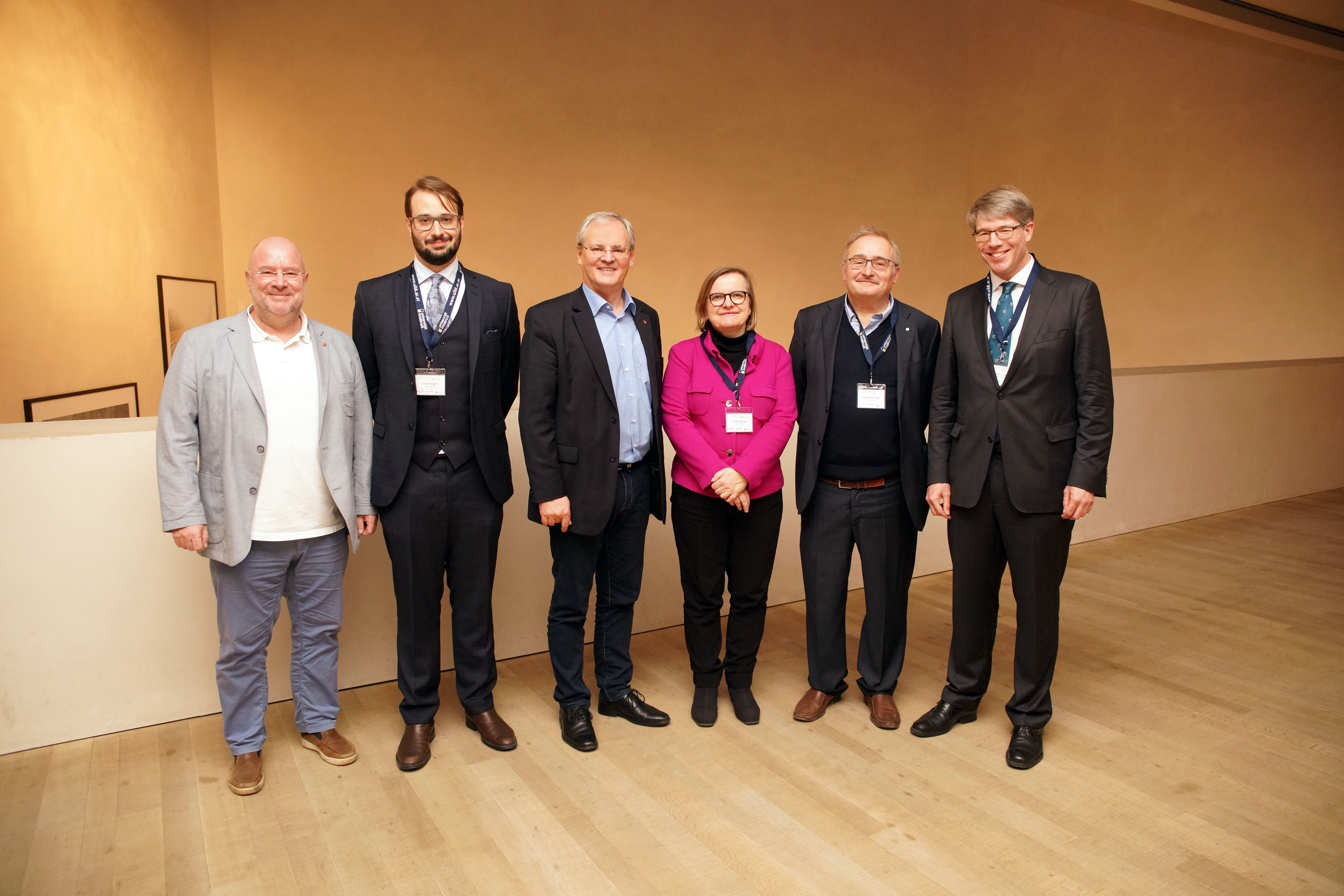 Museumsdirektor Andreas Rudigier, Organisator Julian Degen, Landtagspräsident Harald Sonderegger, Ulrike Tanzer (Vizerektorin für Forschung, Universität Innsbruck), Organisator Robert Rollinger und Oliver Jens (Klassenpräsident Österr. Akademie d. Wissenschaften).