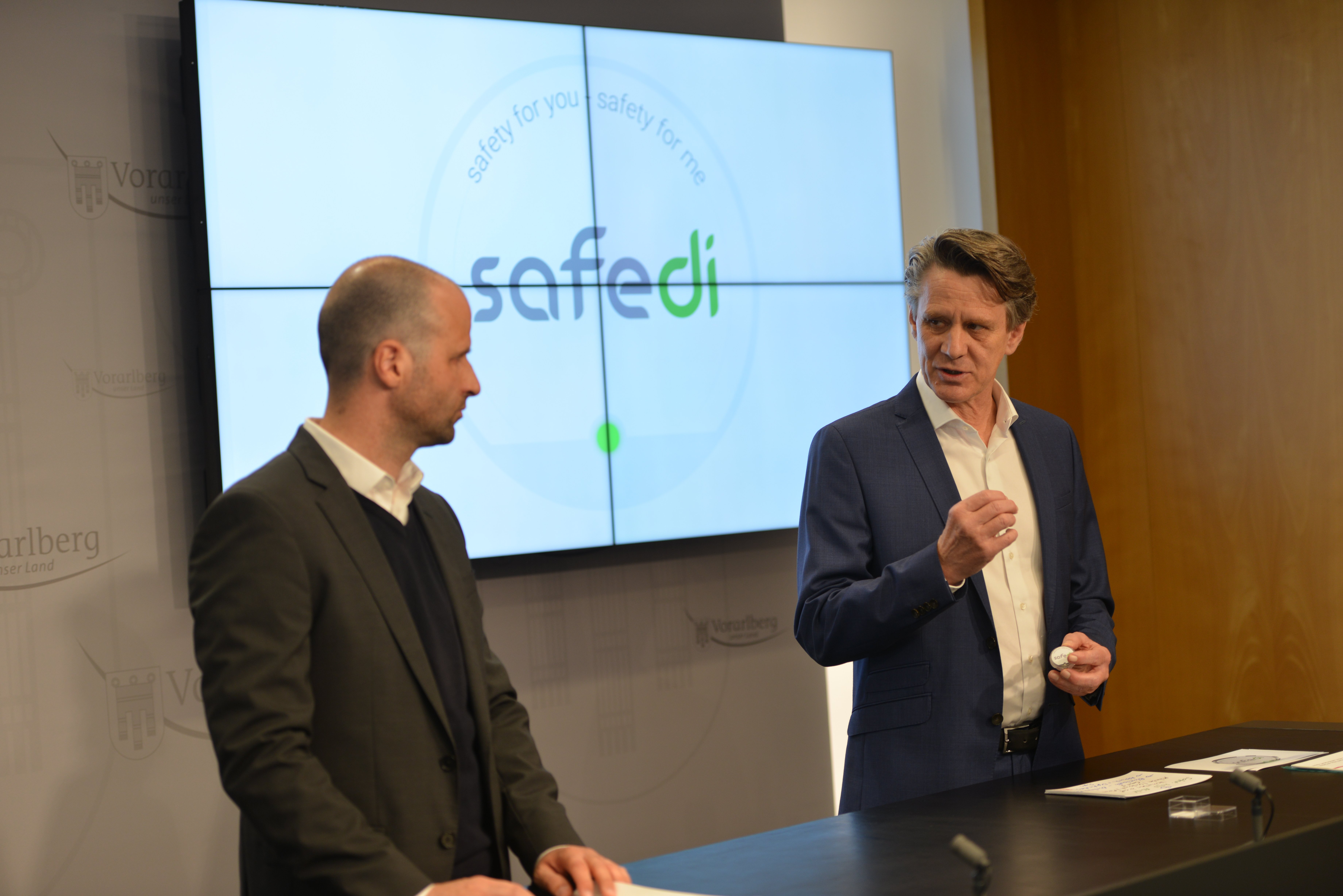 Das Potenzial dieser Erfindung ist sehr groß, betonte Landesrat Tittler, „und zwar aus ökonomischen, sozialen, ökologischen und gesundheitlichen Gründen.“ Mit „Safedi“ kann ein Beitrag dazu geleistet werden, dass Menschen sich sicherer fühlen, dass diverse Branchen weiterführend ihre Geschäftstätigkeit ausführen können (z.B. Industrie) und dadurch viele Menschen auch in Krisenzeiten einer geregelten Arbeit nahegehen können. „Damit leistet das Produkt einen wichtigen Beitrag zum Erhalt der Beschäftigung am Standort und zur Sicherheit am Arbeitsplatz“, betonte Tittler. Neben der Wertschöpfung direkt am Standort sind positive Beschäftigungseffekte zu erwarten, da das Produktmanagement, die Softwareentwicklung sowie Wartung, Second Level Support und Verkauf von Vorarlberg aus erfolgt.