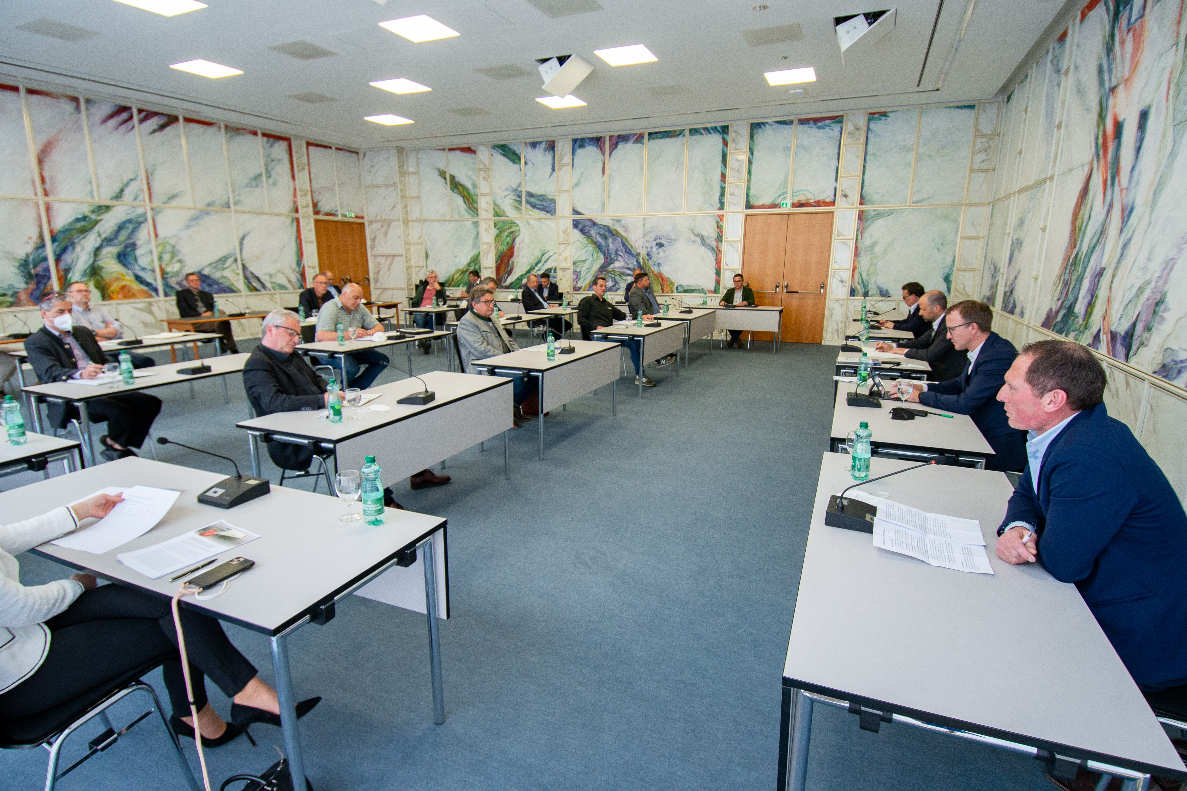Bedingt durch Corona-Effekte und internationale Entwicklungen, kämpft die heimische Holzwirtschaft mit Preissteigerungen und Lieferproblemen. Wirtschaftslandesrat Marco Tittler und Forstwirtschaftslandesrat Christian Gantner haben deshalb heute (Mittwoch) die Vertreter des Holzsektors (Produzenten und verarbeitende Betriebe) zu einem Holzgipfel ins Landhaus eingeladen. Die gemeinsame Suche nach Lösungen stand im Mittelpunkt der Gespräche.