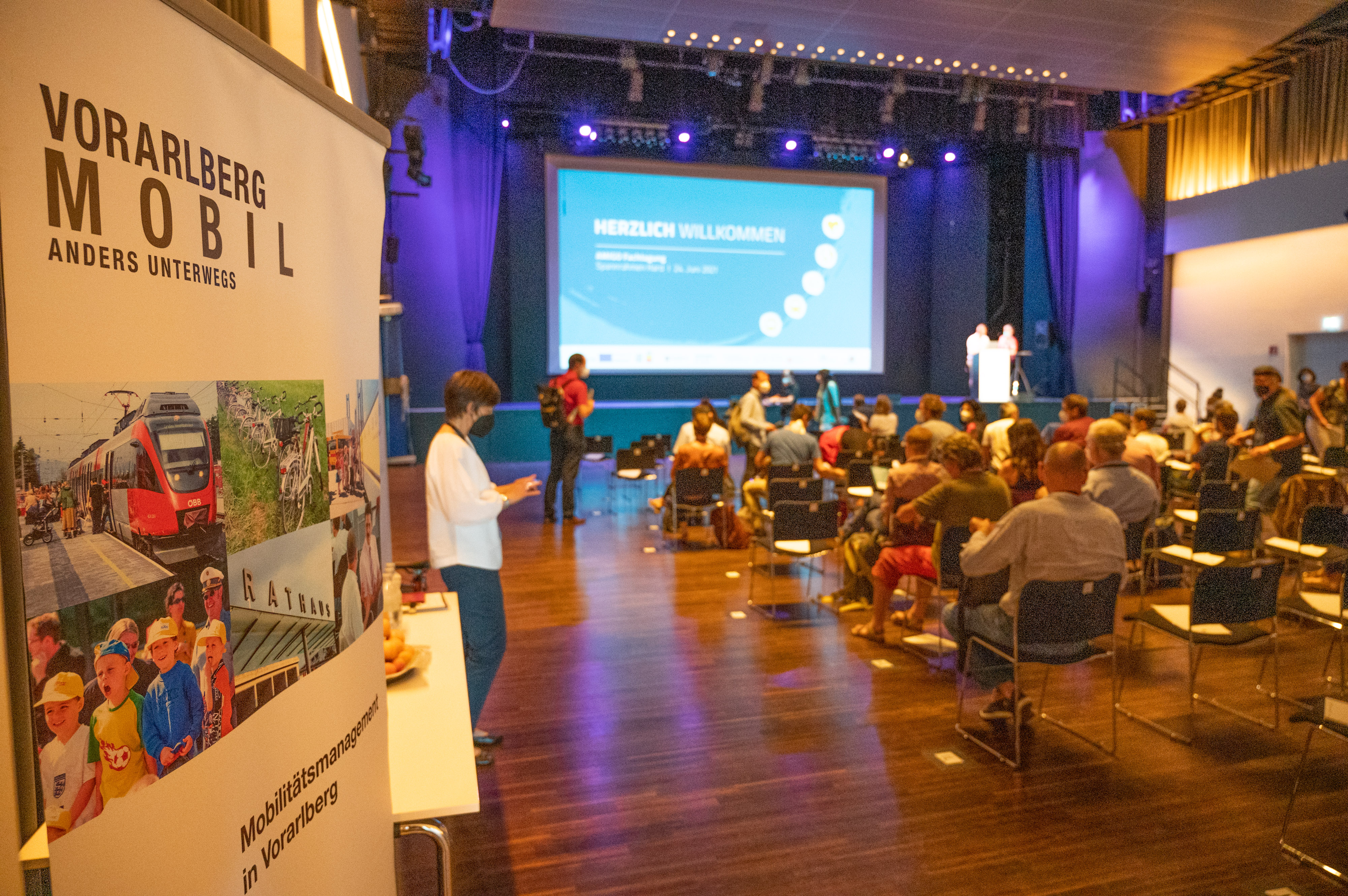 Fachtagung mit rund 120 Teilnehmer:innen aus dem Mobilitäts- und Gesundheitsbereich im Spannrahmen in Hard.