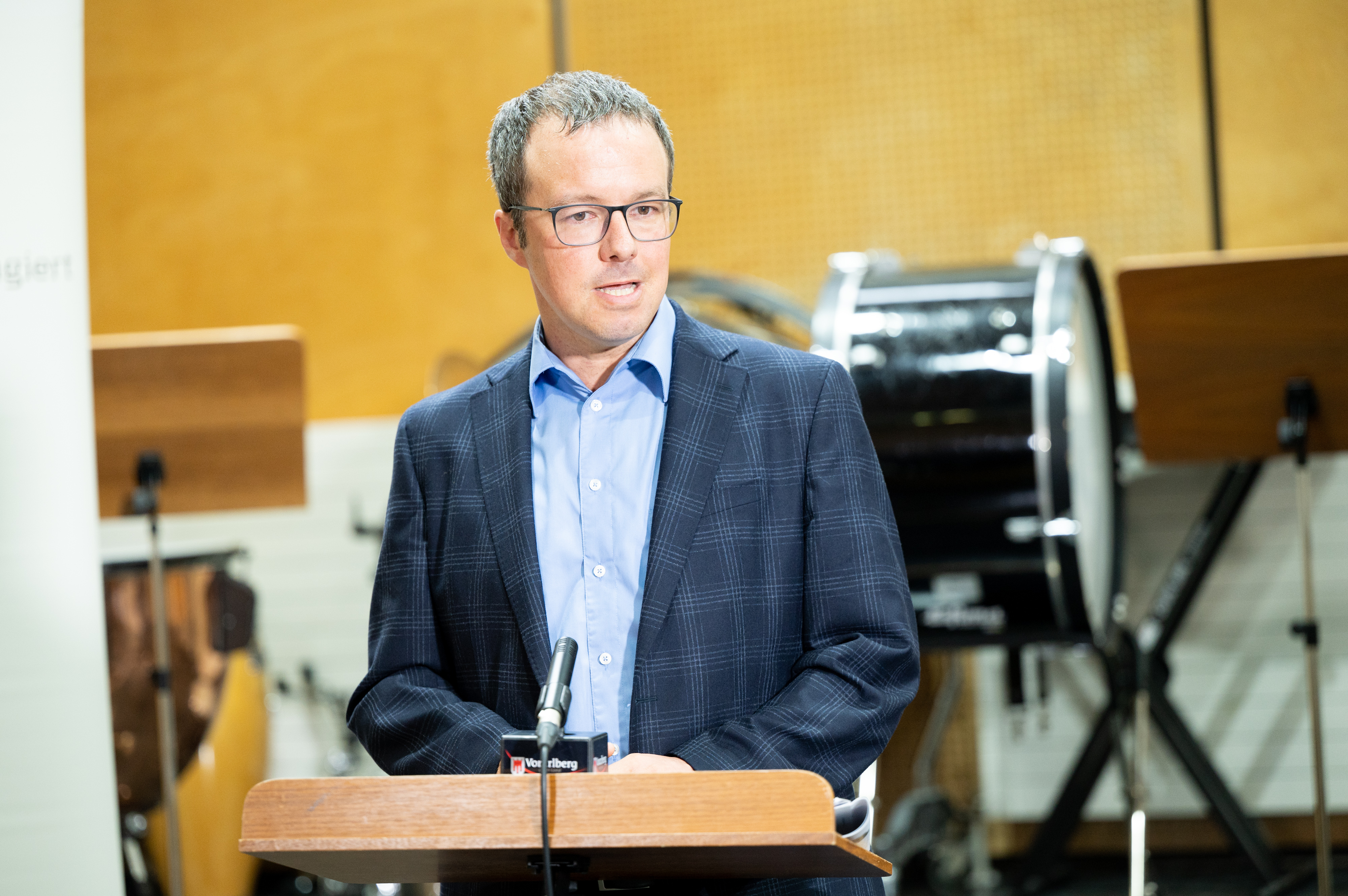 Der Obmann der Stadtmusik Bregenz, Thomas Winzek, freut sich, dass es für die Vereine wieder losgeht.