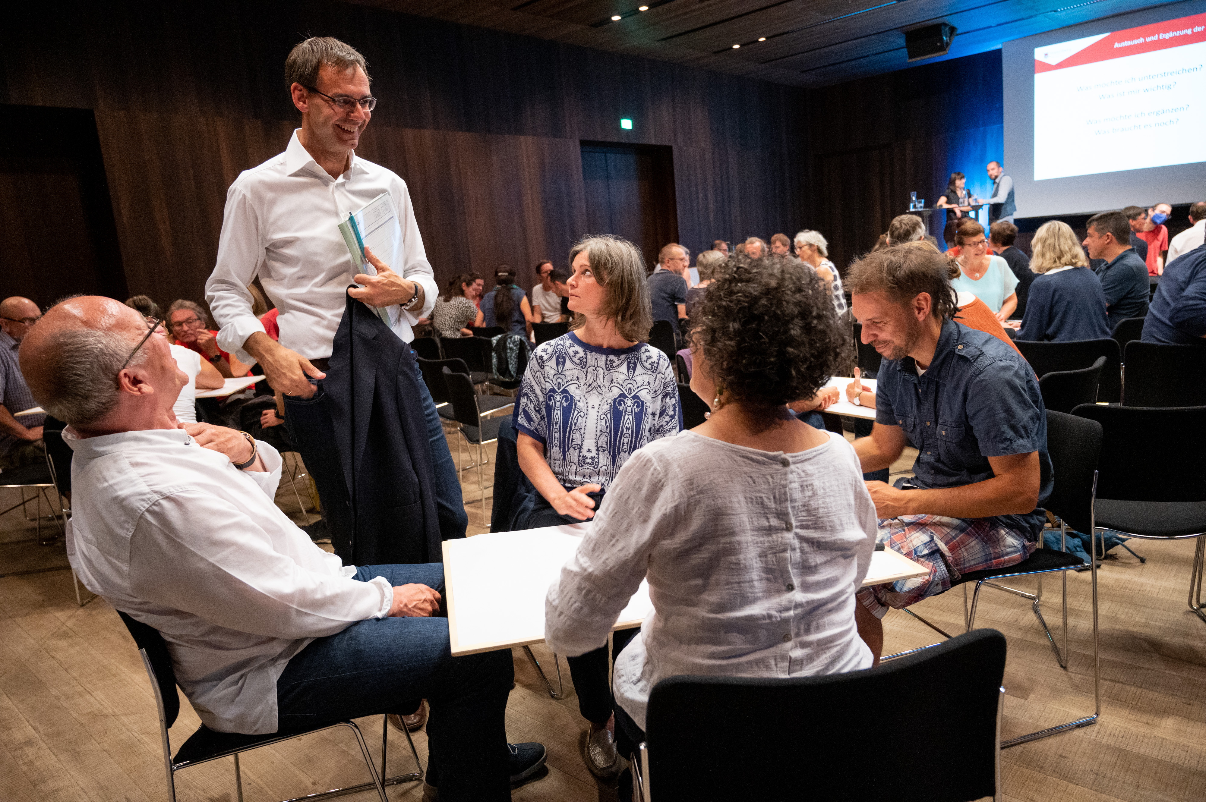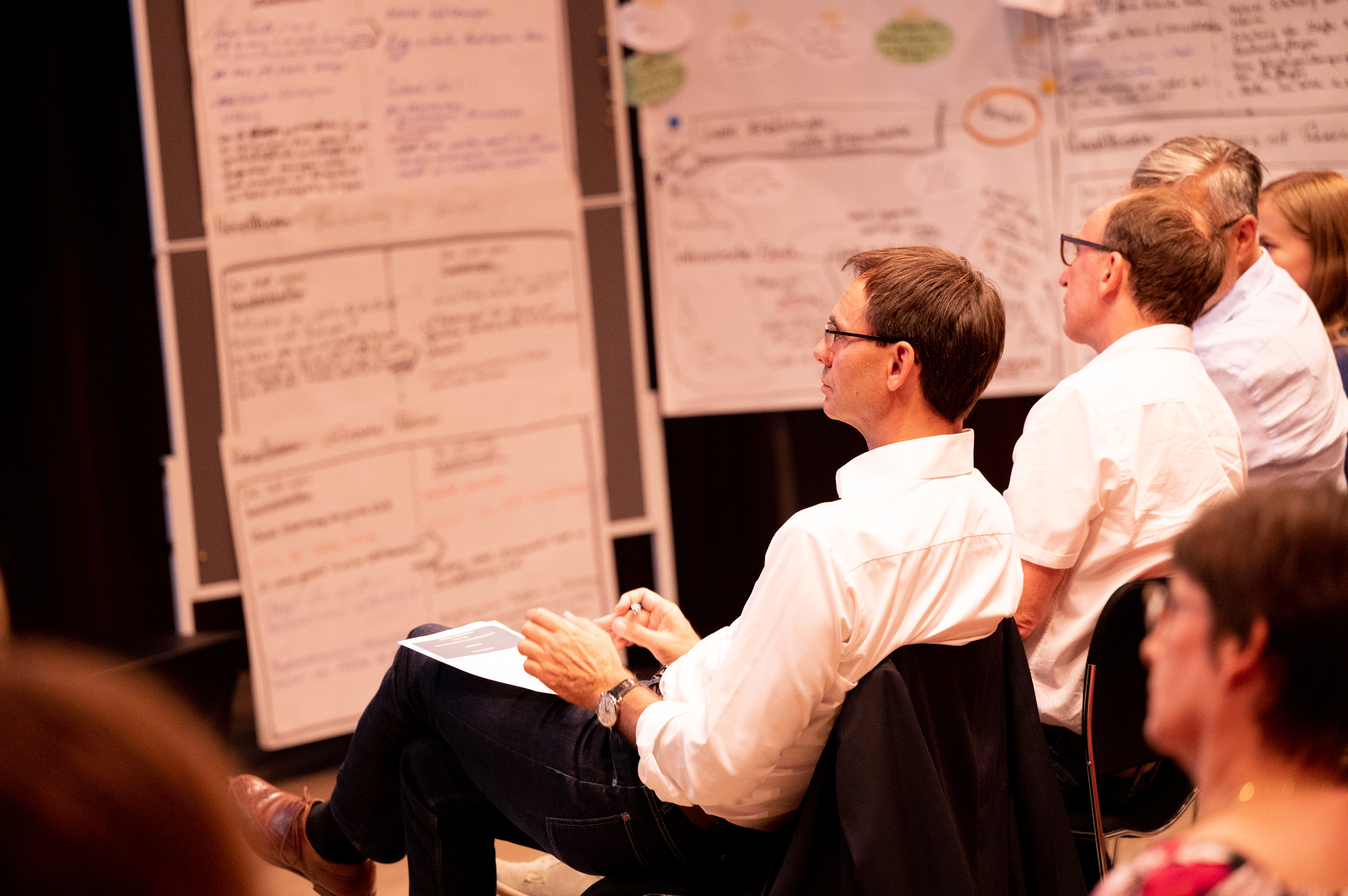 Eine Teilnehmerin des Bürger:innenrats schrieb im Nachgang per Mail: „Die Kennenlernrunde schaffte gleich eine gute Basis. Alle Teilnehmer erzählten, wie sie auf die Einladung reagierten und wie sie Ihre Entscheidung trafen, daran teilzunehmen. Die wertschätzende Atmosphäre, in der alles galt und nichts ‚richtig‘ oder ‚falsch‘ war, war sehr förderlich für die Zusammenarbeit. Dadurch waren wir sehr produktiv und haben viel Material gesammelt. Es stand nicht der eigene Beitrag, sondern das Gemeinsame, im Mittelpunkt.“