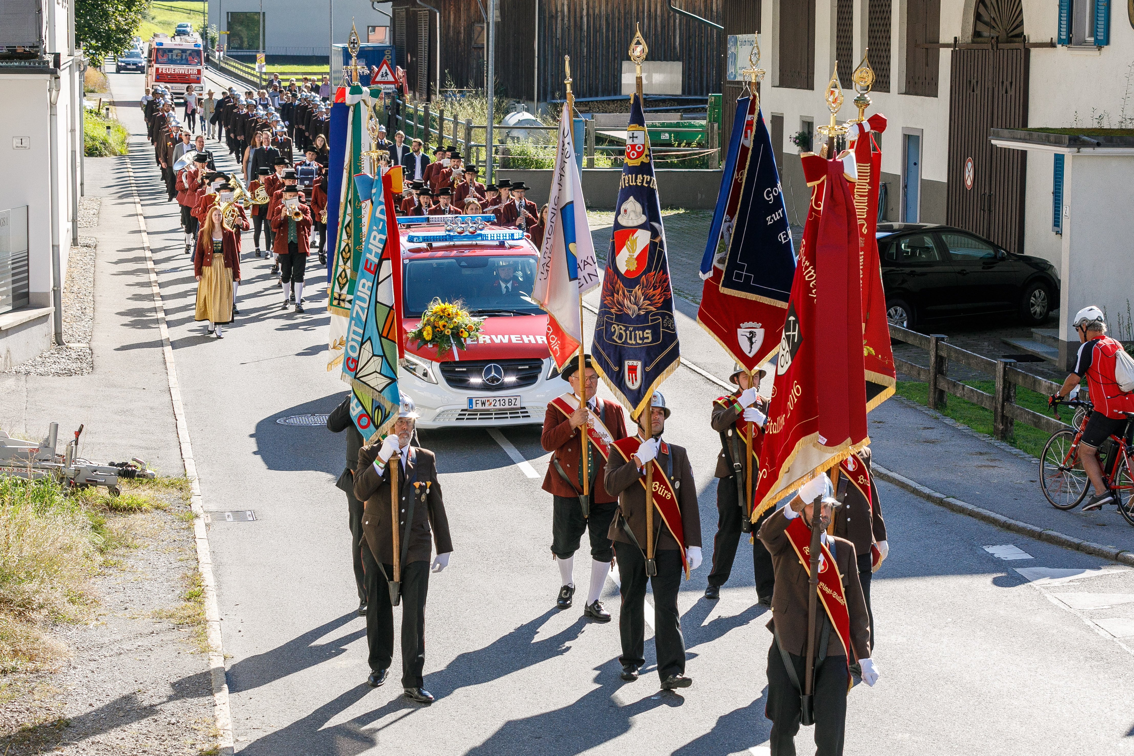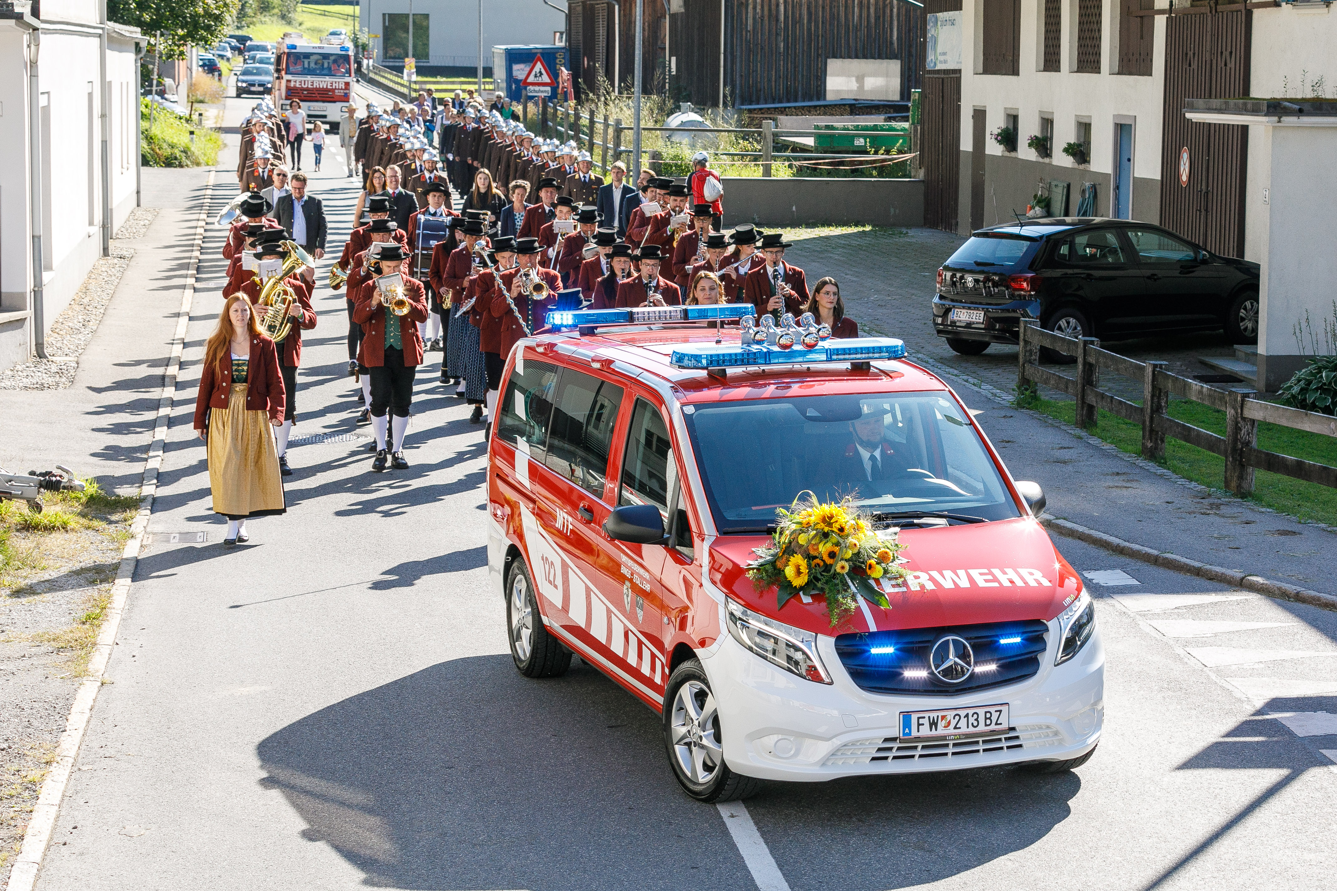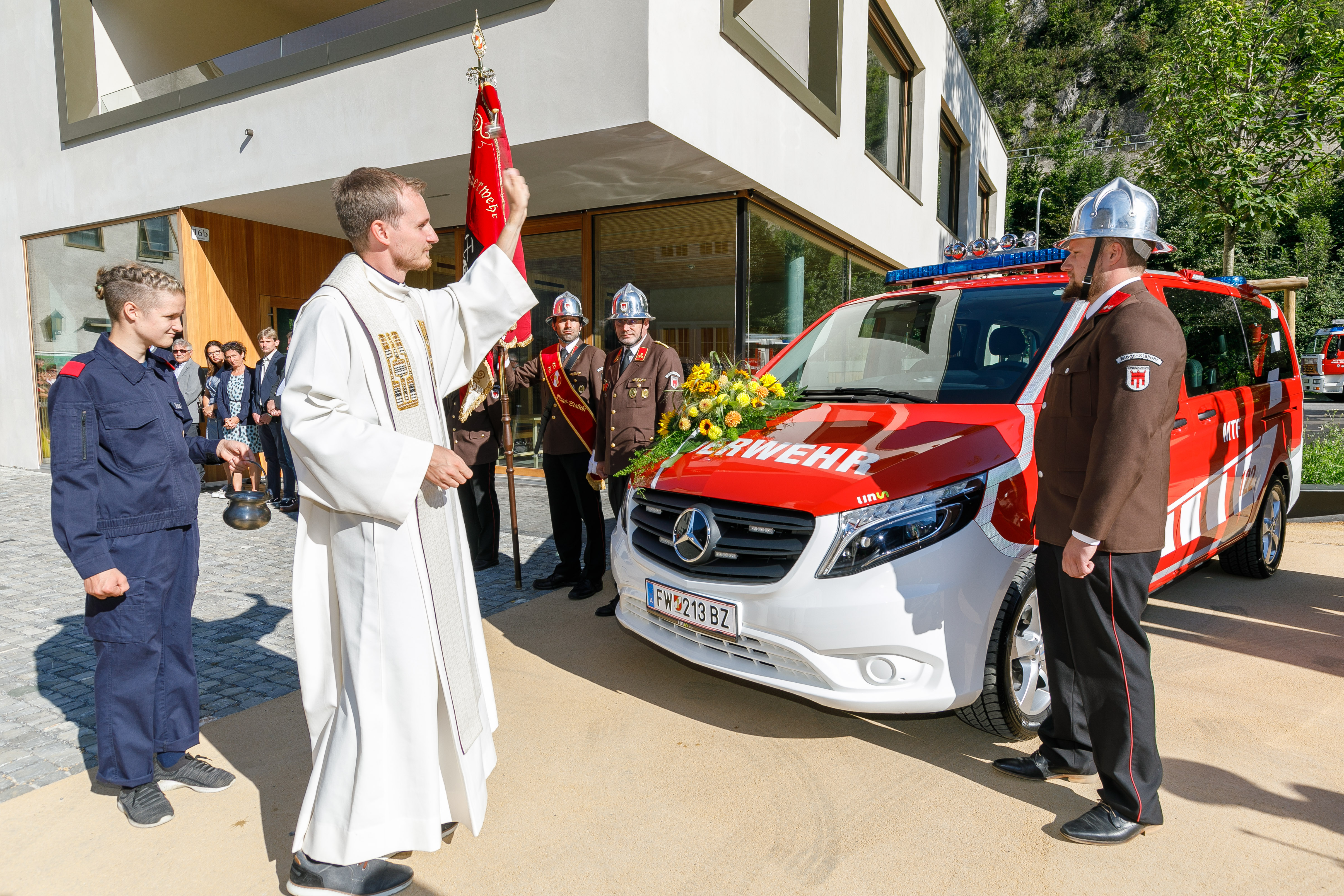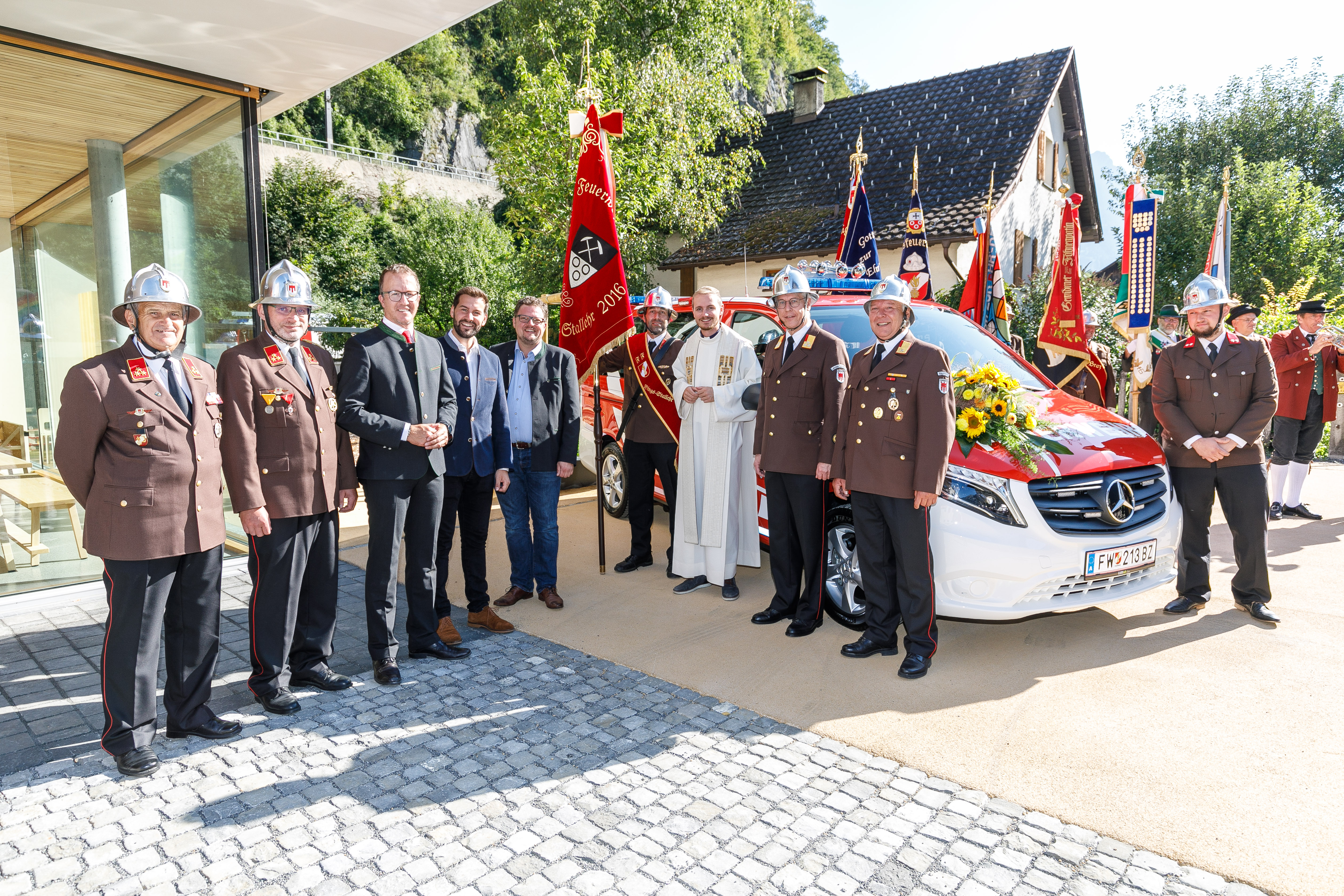Stallehr/Bludenz (VLK) – „Laufende Investitionen sind nötig, um in Vorarlberg auch weiterhin ein hohes Sicherheitsniveau gewährleisten zu können“. Das sagte der zuständige Landesrat Christian Gantner am Sonntag (5. September) bei der Segnung und offiziellen Indienstnahme eines neuen Einsatzfahrzeugs der Ortsfeuerwehr Bings-Stallehr. Gantner nahm die Gelegenheit zum Anlass, um den engagierten Mitgliedern der Wehr mit Kommandant Rainer Batlogg an der Spitze für die hohe Einsatz-und Leistungsbereitschaft zu danken: „Das großartige Engagement der Frauen und Männer in unseren Feuerwehren ist keineswegs selbstverständlich.“
