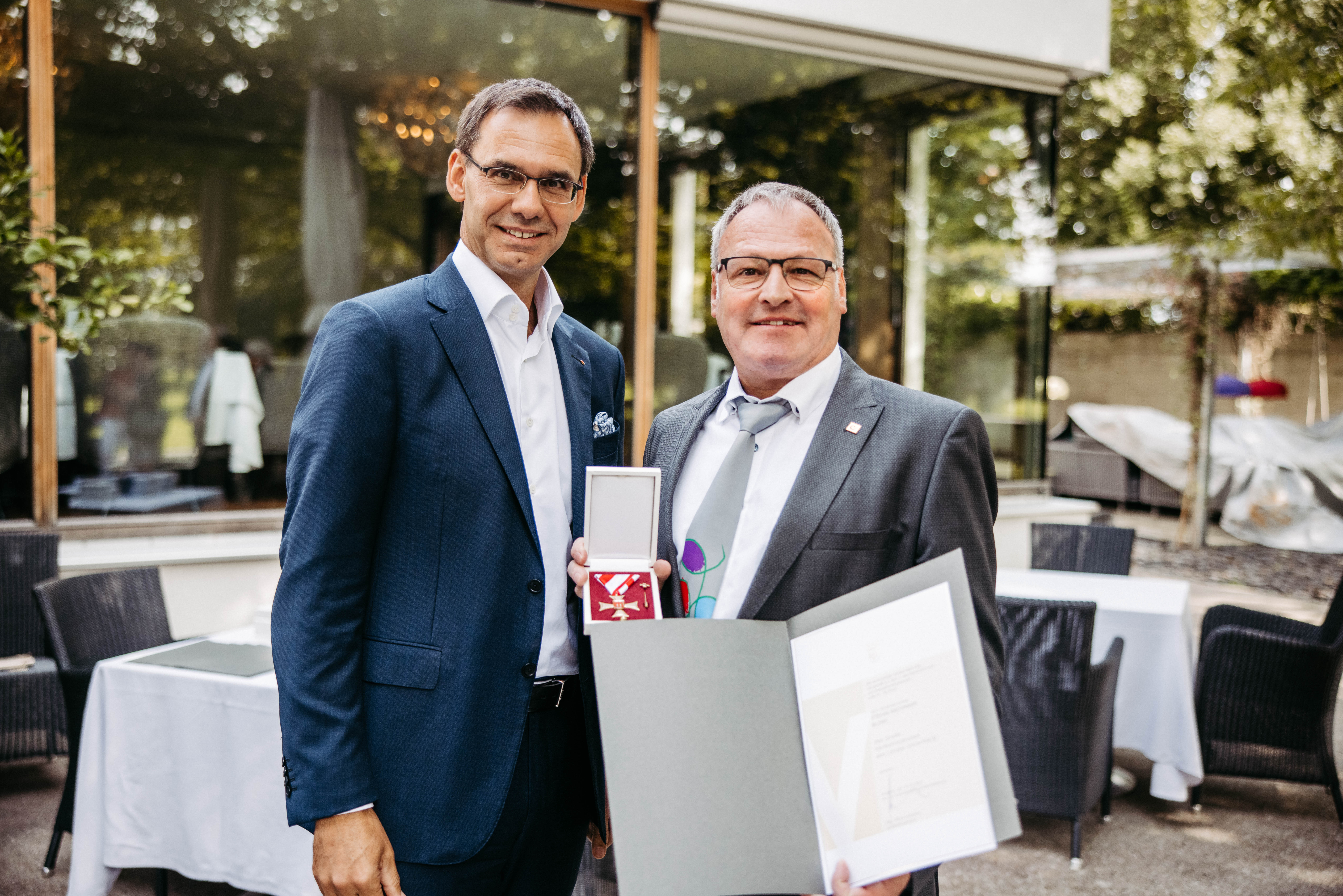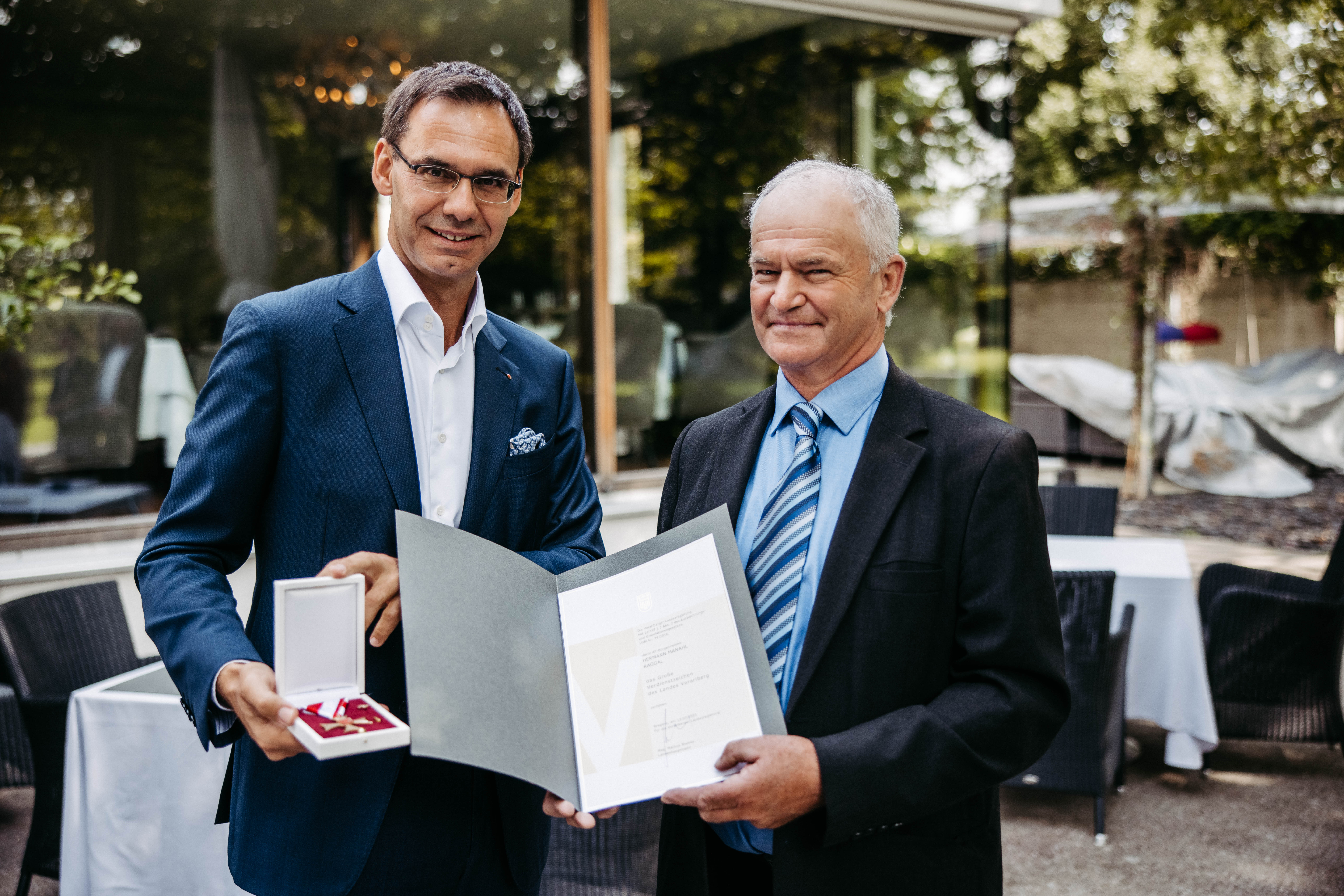 Lauterach (VLK) – Mehrere ehemalige Vorarlberger Bürgermeister wurden von Landeshauptmann Markus Wallner am Mittwoch (22. September) im Rahmen eines gemeinsamen Mittagessens mit dem Großen Verdienstzeichen des Landes Vorarlberg für ihre Leistungen ausgezeichnet. Dabei würdigte Wallner den außergewöhnlichen Einsatz, den die Geehrten über viele Jahre gezeigt haben und bedankte sich für die erfolgreiche Arbeit im Dienste der Bürgerinnen und Bürger.