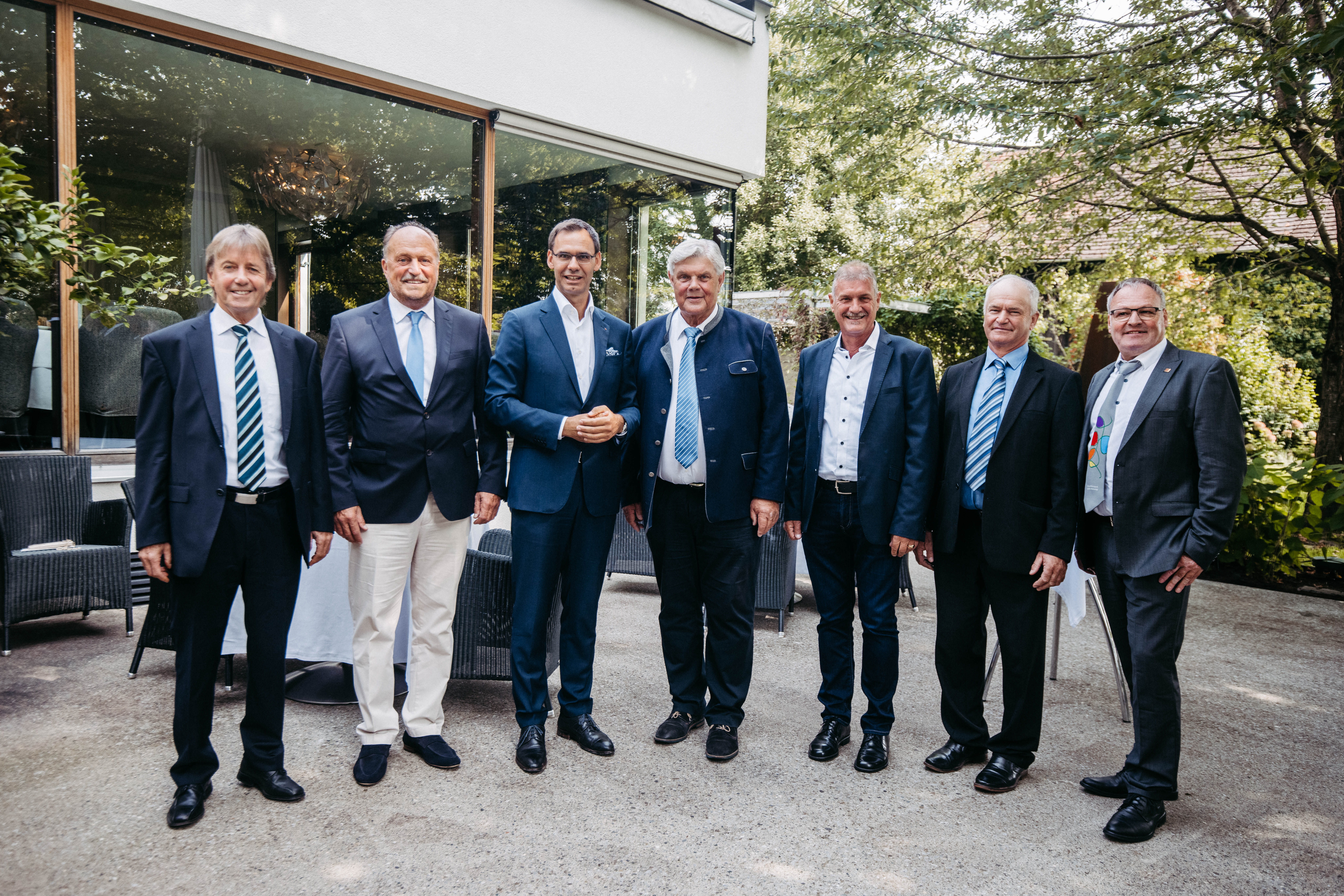 Die Alt-Bürgermeister v.l.: Fritz Maierhofer (Koblach), Karl Hehle (Hörbranz), Landeshauptmann Markus Wallner, Josef „Mandi“ Katzenmayer (Bludenz), Anton Metzler (Satteins), Hermann Manahl (Raggal), Stefan Bachmann (Blons).