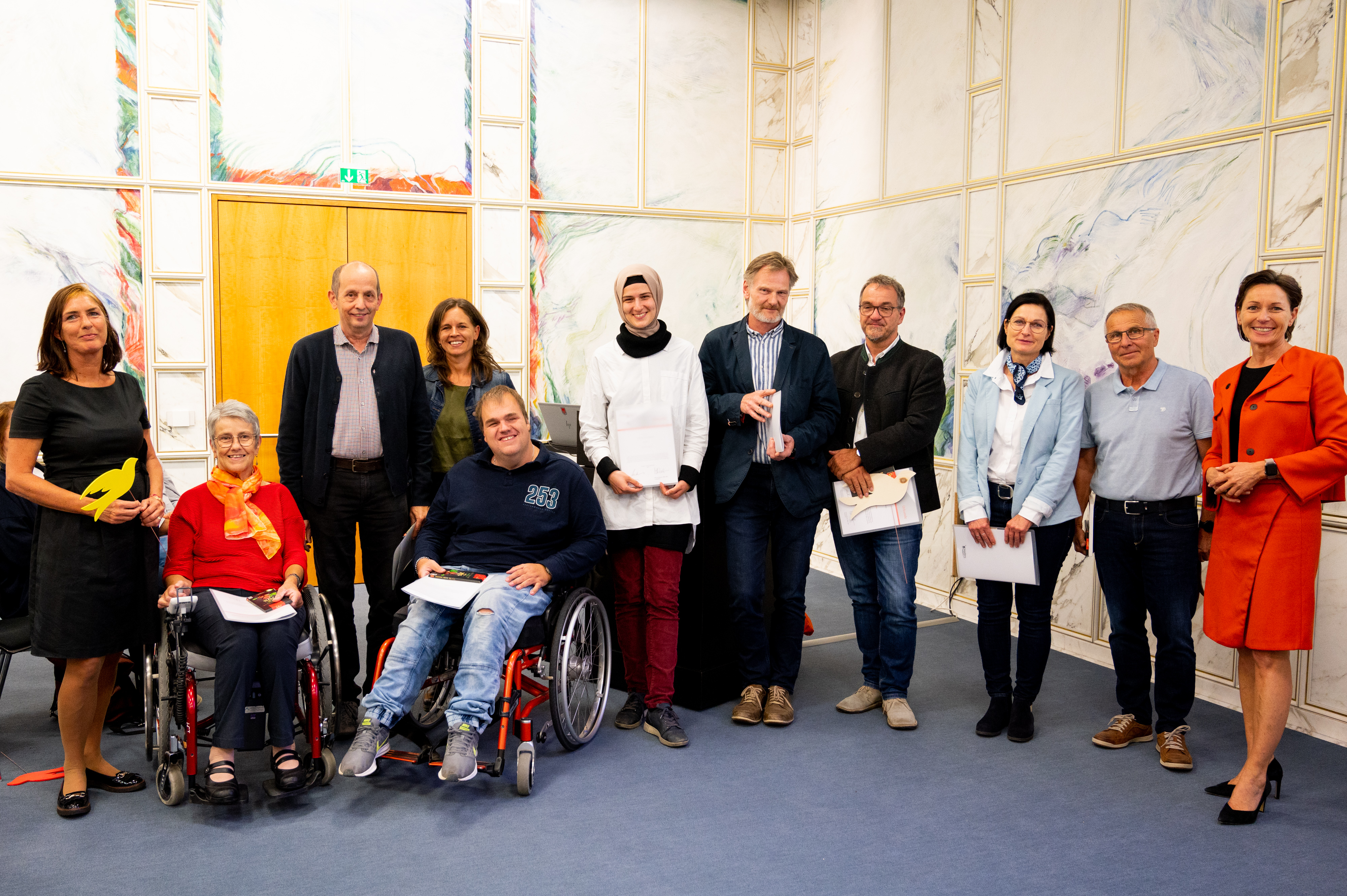 Medieninformation Mittwoch, 29.09.2021, 14:42 Wallner: „Starkes, bereichsübergreifendes Signal für inklusive Region Vorarlberg“ Neues Vorarlberger Leitbild zur Inklusion präsentiert – Landeshauptmann bedankte sich bei allen, die an der Erstellung mitgewirkt haben: „Jetzt geht es an die Umsetzung“
