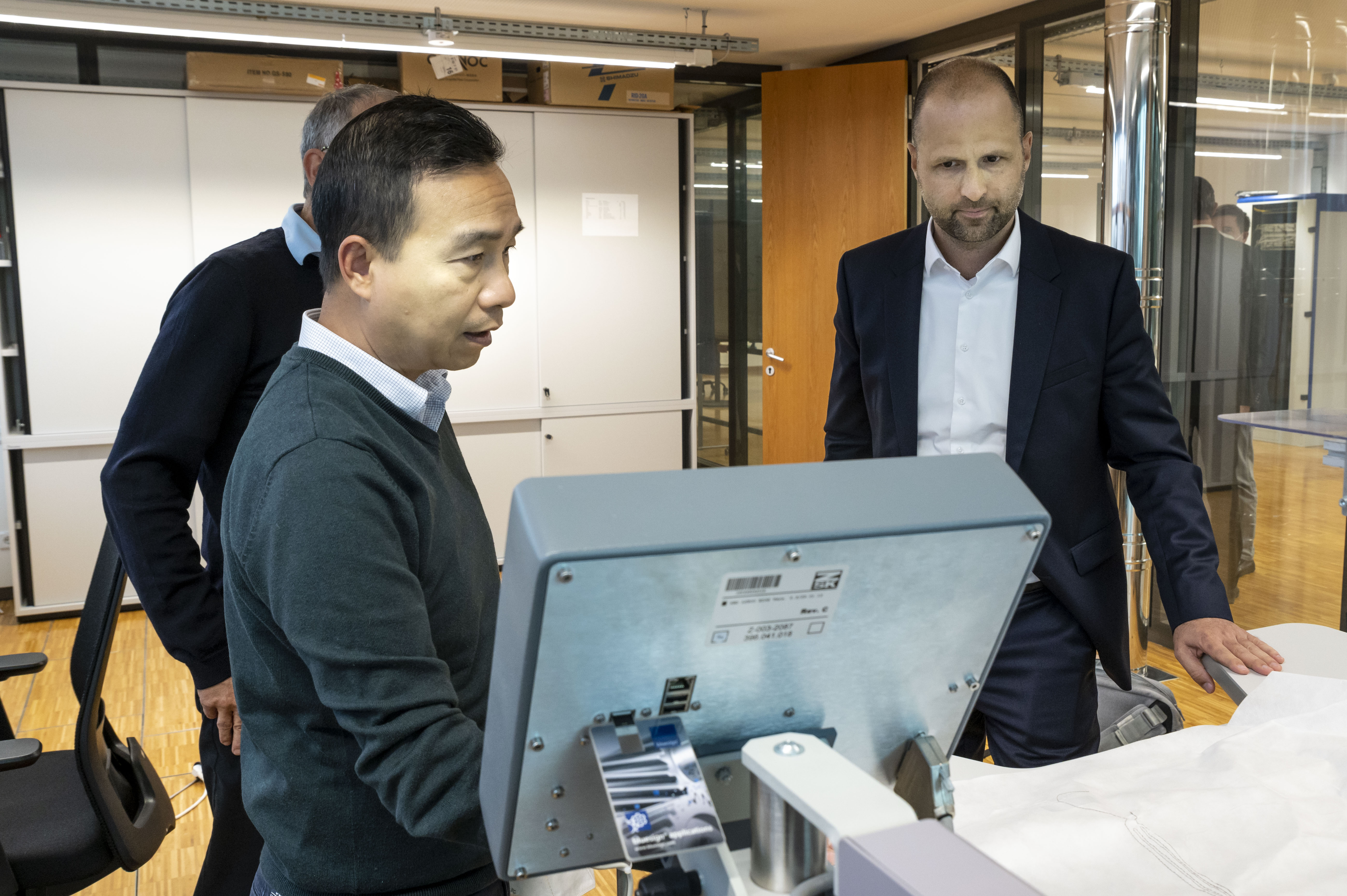 Dornbirn (VLK) – Das Forschungsinstitut für Textilchemie und Textilphysik der Universität Innsbruck mit Sitz in Dornbirn ist ein Kompetenzzentrum in Sachen Textilforschung. Seit April 2021 wird dort im Rahmen des „Textile Competence Centre Vorarlberg 2 – TCCV2“-Projekts geforscht. „Ziel ist es, Spitzenforschung auf dem Gebiet der intelligenten Textilien zu betreiben. Das Zentrum ist eine der wichtigsten Forschungseinrichtungen Europas in diesem speziellen Bereich und ein Vorreiter in der Textilforschung“, sagte Wirtschaftslandesrat Marco Tittler bei seinem heutigen (Dienstag) Besuch.